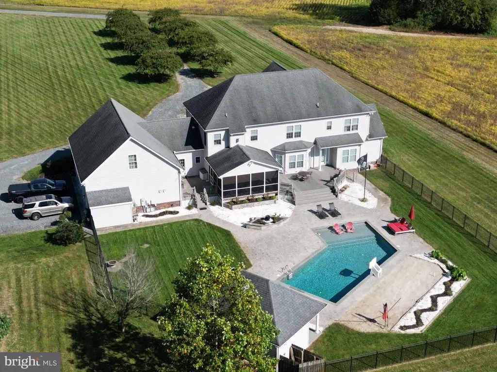 Experience luxurious country living on 42 beautiful acres with this 5-bedroom, 4-bath custom-built home offering 4,600 sq. ft. of refined living space. This stunning property features hardwood floors, a dining room, a spacious formal living room ideal for entertaining and a front room study to enjoy the views. The gourmet kitchen is a chef’s dream, boasting an oversized island, professional-grade Viking appliances, and a bright eat-in area that opens to a large family room with a gas fireplace. The first-floor owner’s suite offers a private retreat with double walk-in closets, a spa-inspired luxury bathroom featuring dual sinks, an extra-large custom walk-in shower and whirlpool tub. Private door exits the suite to offer relaxing by the pool or enjoy the amazing patio. Four additional bedrooms are equally spacious, each with large walk-in closets and access to full Jack and Jill bathrooms for privacy and convenience. One of the larger bedrooms offers a "sitting room/study". Upstairs offers an extra-wide hallway overlooking the downstairs foyer. Mudroom conveniently located with full bath offering access from the garage, secondary deck and pool. Above the garage offers 600 sq. feet of additional space (not included in sq. footage) to convert into a mancave, extra living space, theater room, gym, art studio, home office or extra guest quarter. (rough plumbing, HVAC lines make it easy to install additional bathroom). The home also features a large third floor bonus room with walk-up stairs (can be converted to additional living space with minor modifications). The three-car garage is drywalled and insulated with 15-foot ceilings and 9-foot-tall garage doors with high track lift openers. Outdoor amenities include a sparkling inground pool, expansive pool deck, secondary vinyl deck, pool house and an over-sized screened porch perfect for relaxing or entertaining. The property provides a unique oasis with privacy, scenic views, and ample space for recreation, horses, or future expansion. Many upgrades such as a four zone Geothermal heating and cooling, tankless water heater, custom built touches and much more. This extraordinary home combines luxury, comfort, and tranquility — a rare find on 42 acres with private pond. This estate perfectly located minutes from Salisbury University, Tidal Health, shopping, dining and 40 minutes from the amazing Ocean City beaches. This estate is a "one of a kind" and the potential is endless. MUST SEE to appreciate.