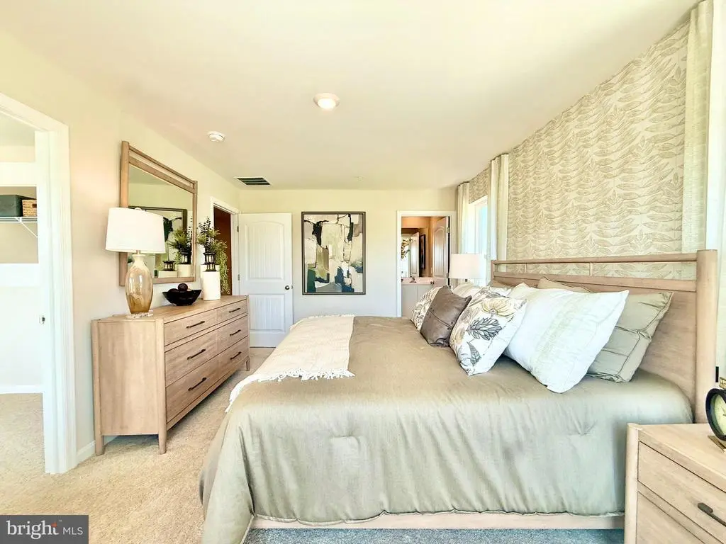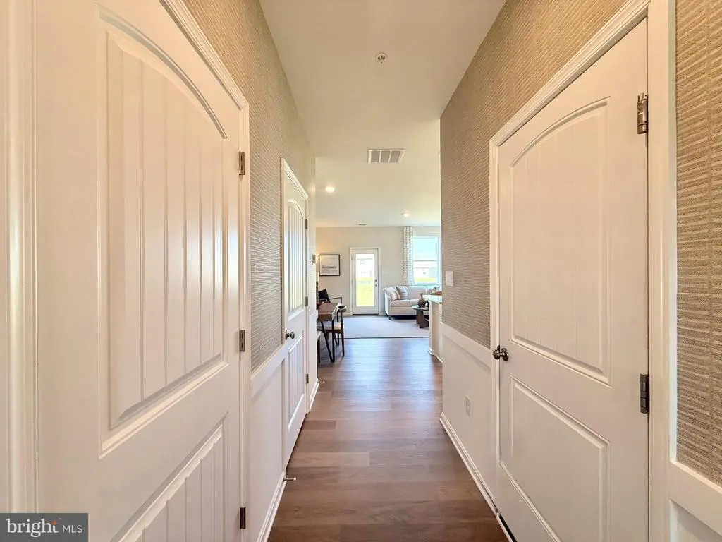Explore 1311 Sugarplum Lane in Salisbury, MD, located in the charming Heritage Trace community. The Delmar, a 1500 square foot open-concept two story end-of-unit townhome, offers three bedrooms, two and a half bathrooms, and a one-car garage. As you enter from the front porch, the inviting foyer leads you to the conveniently located power room and the one-car garage. The home’s functional eat-in kitchen features beautiful white cabinet space, granite countertops, a spacious peninsula island with room for seating, stainless steel appliances and a pantry closet. The kitchen is open to the ample living room and dining area making family gatherings effortless. Upstairs, the spacious main bedroom comes complete with an oversized walk-in closet and a modern bathroom with a double bowl vanity, and generously sized walk-in shower. A linen closet is conveniently located in the hallway. Additionally, there are two sizeable guest bedrooms, each with plenty of closet space, and a guest bathroom with a vanity and tub shower located down the hallway. A functional upstairs laundry closet comes complete with a full-size washer and dryer. The home includes white window treatments and the innovative America’s Smart-Home® package that will give you complete peace of mind. Pictures, artist renderings, photographs, colors, features, and sizes are for illustration purposes only and will vary from the homes as built. Image representative of plan only and may vary as built. Images are of model home and include custom design features that may not be available in other homes. Furnishings and decorative items not included with home purchase.