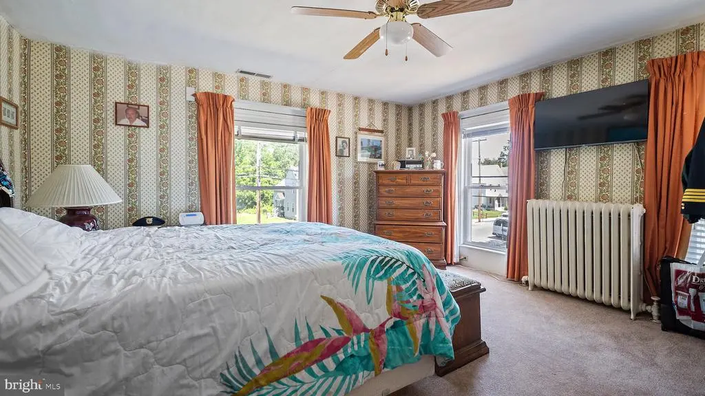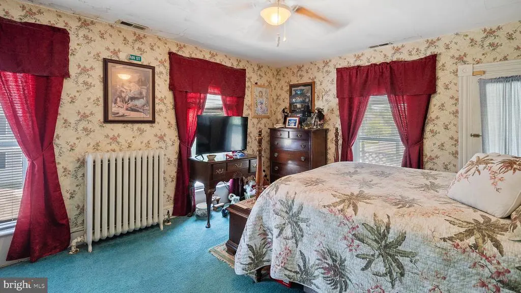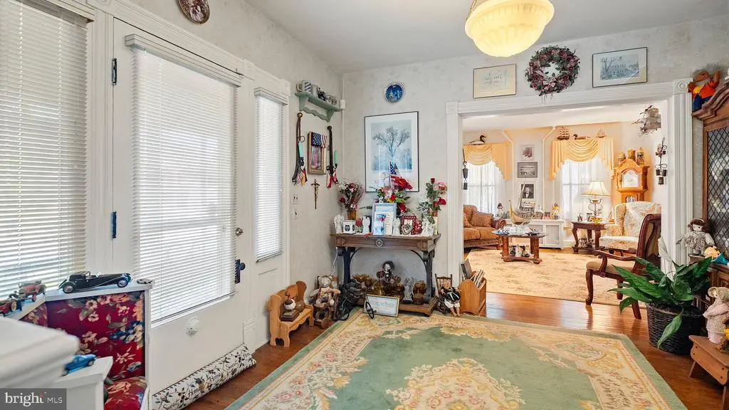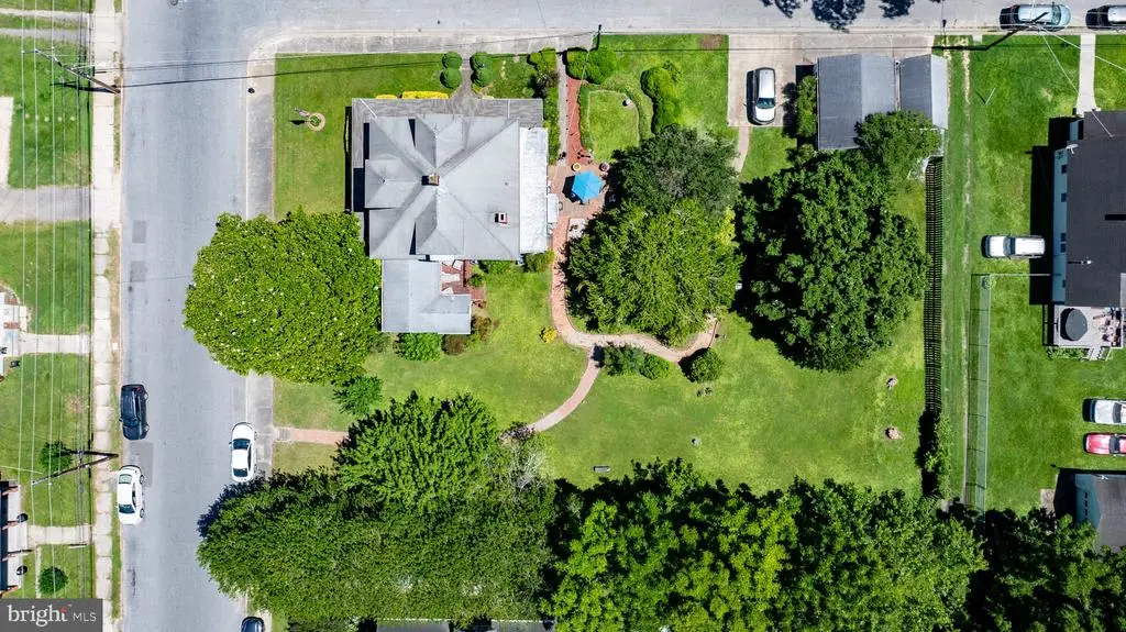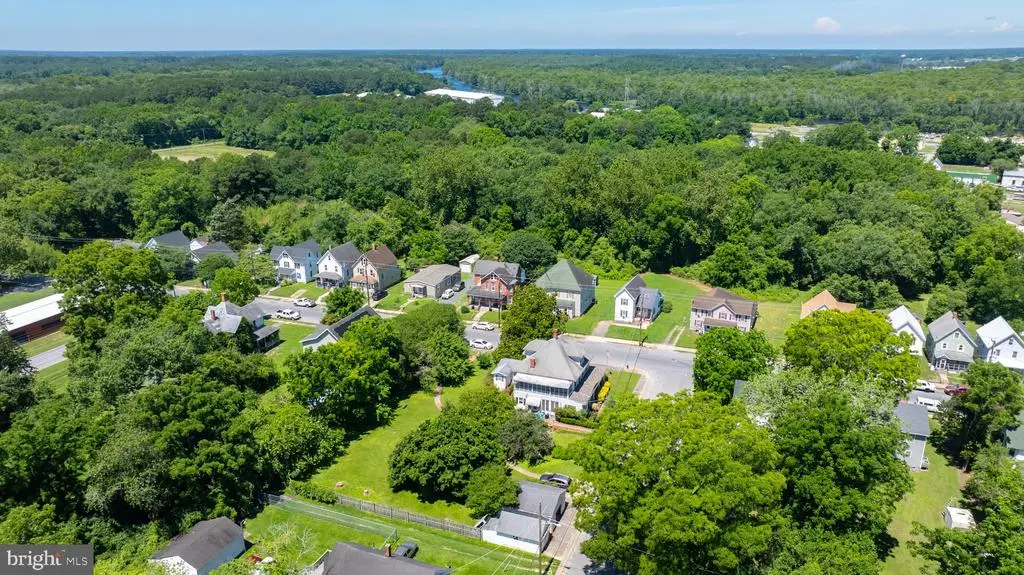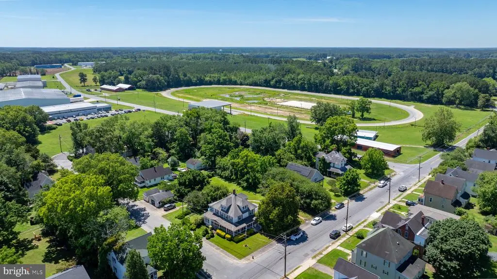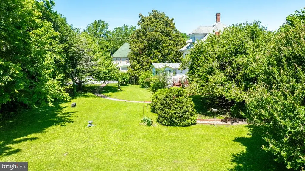 This 3-story Edwardian-style gem offers timeless charm and modern comfort. Nestled on a beautifully landscaped corner lot with two detached garages, this home features a wrap-around porch with ceiling fans and anchored lighting, original hardwood floors, high ceilings, and stained-glass accents. Enjoy 4 spacious bedrooms, a full in-law suite, and a flexible third-floor bonus area with cedar closet. The primary suite opens to a screened sleeping porch—perfect for quiet mornings. A brick walkway winds through the included adjacent lot to a serene seating area and goldfish pond. Extras include 2 HVAC units (1 & 5 years old), new 50-gallon water heater (2025), public water/sewer, a finished basement, and more. Located just steps from the Pocomoke Fairgrounds. A true historic treasure—welcome home!