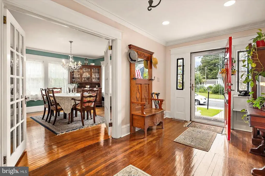 Step into the timeless charm of this 1920's residence in Pocomoke City’s historic district, proudly listed on the National Registry of Historic Places. Featuring 3 bedrooms, 2.5 baths, and 2,522 sq. ft. of living space, this home blends historic elegance with thoughtful updates. The spacious center hall and grand staircase are flanked by French doors leading to a formal dining room with built-in china cupboard and a living room with fireplace and window seat. Additional living spaces include a sunroom, screened porch, and a bright kitchen with center island, breakfast nook, bar seating, wall oven, gas range, convection microwave, and newer appliances—perfect for entertaining. Upstairs offers three large bedrooms, a convenient laundry room, and a primary suite with Jacuzzi tub. A finished attic with hardwood floors, recessed lighting, and HVAC provides excellent potential for storage or additional living space. Hardwood floors, Pella windows, and a dry basement add to the home’s appeal. Recent upgrades ensure comfort and efficiency, including a 3 year old architectural roof with a 47 year warranty, dual high-efficiency heat pumps with smart thermostats, rebuilt front brick steps, attic insulation, and a whole-house water filtration system. A fenced backyard with shed, screened porch, and detached garage with remote opener provide outdoor enjoyment and convenience. Located just 1½ blocks from the Pocomoke River, this home is within walking distance to shops, dining, library, parks, and year-round festivals. With easy access to Wallops Island, Chincoteague, Assateague, and Ocean City, this property offers the best of small-town living with nearby beaches and nature.