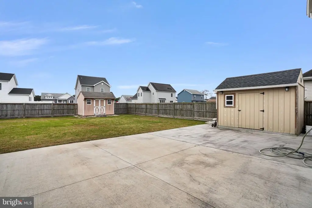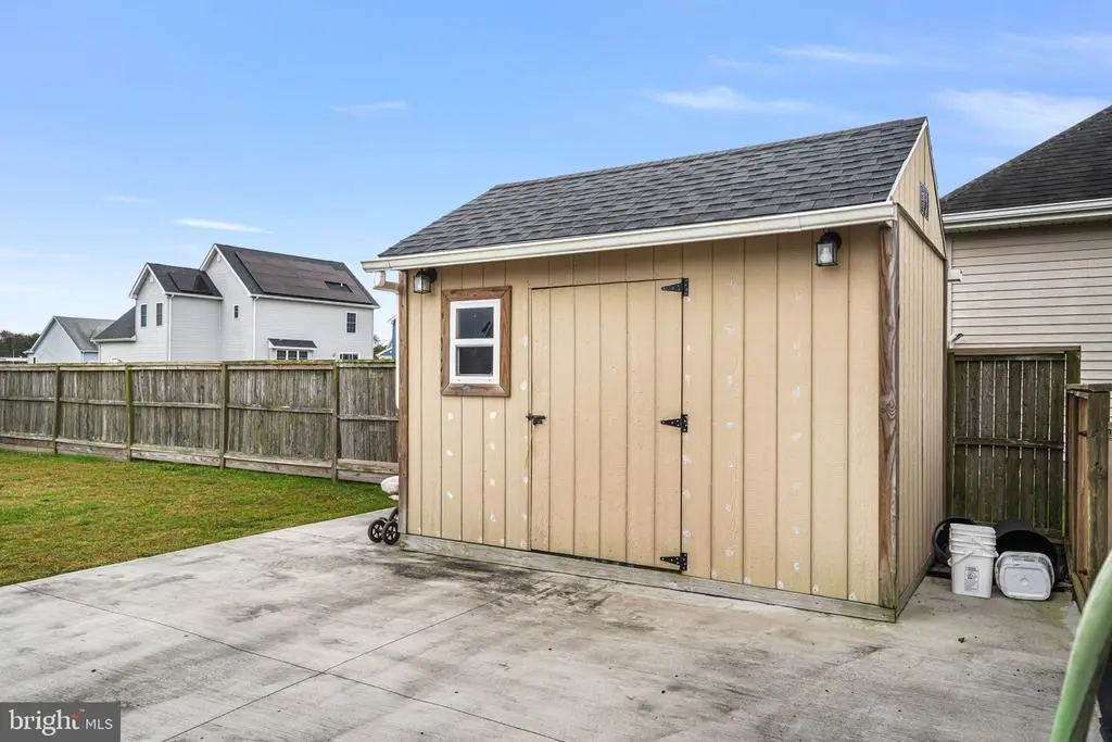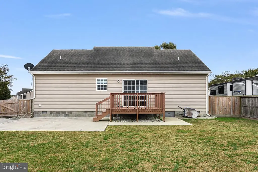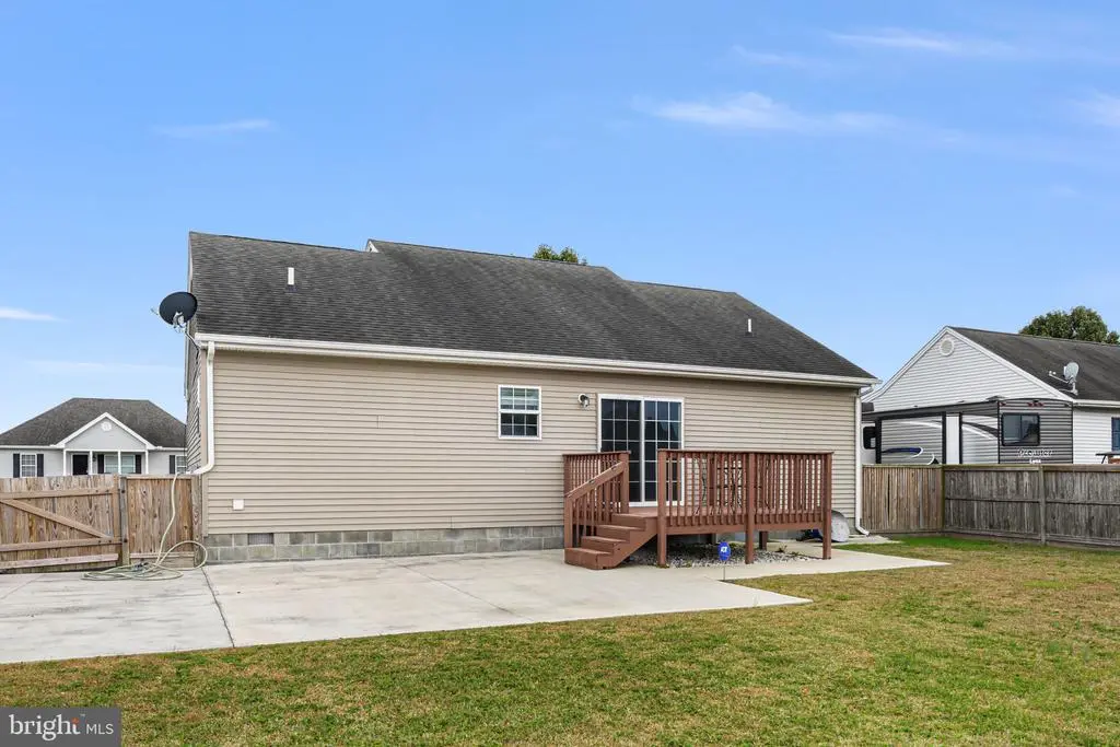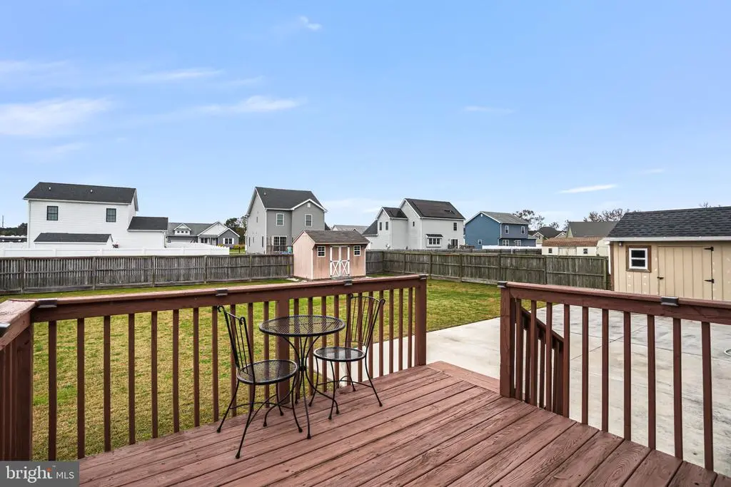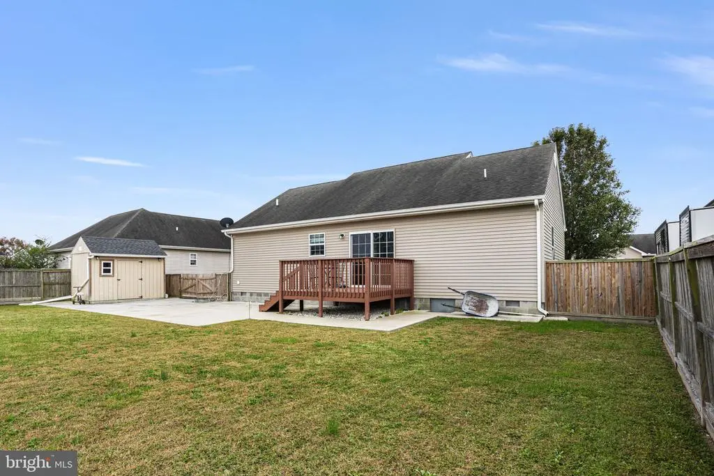 Step onto the inviting front porch of this ranch-style home in the Woodland Manor community and enjoy peaceful sunset views in a quaint, walkable neighborhood. The large paved driveway leads you to the front entrance, setting the tone for this well-designed and welcoming home. Inside, you’ll find vaulted ceilings and luxury vinyl plank flooring throughout the spacious living room, creating a bright and open atmosphere. The living space flows effortlessly into the kitchen and dining area, where sliding glass doors lead directly to the back deck and patio, perfect for relaxing or entertaining. The primary suite is thoughtfully located on one side of the home, while the secondary bedrooms and guest bath occupy the opposite side, separated by the main living space for privacy and flexibility. A main-level laundry room adds practical convenience. Step outside to the backyard, where you’ll find two sheds and a fully fenced yard with a privacy fence, ideal for outdoor activities, pets, or simply enjoying quiet moments. The back deck and patio make it easy to entertain or unwind while enjoying the serene surroundings. Woodland Manor offers a charming setting close to downtown Pocomoke City. Enjoy riverside dining on the scenic Pocomoke River, explore local attractions, take a walk on nearby nature trails, play pickleball, fish from local docks, or launch your boat from one of three public ramps. The area also provides easy access to Chincoteague Island, Ocean City, and NASA Wallops Flight Facility, making day trips and adventures simple.