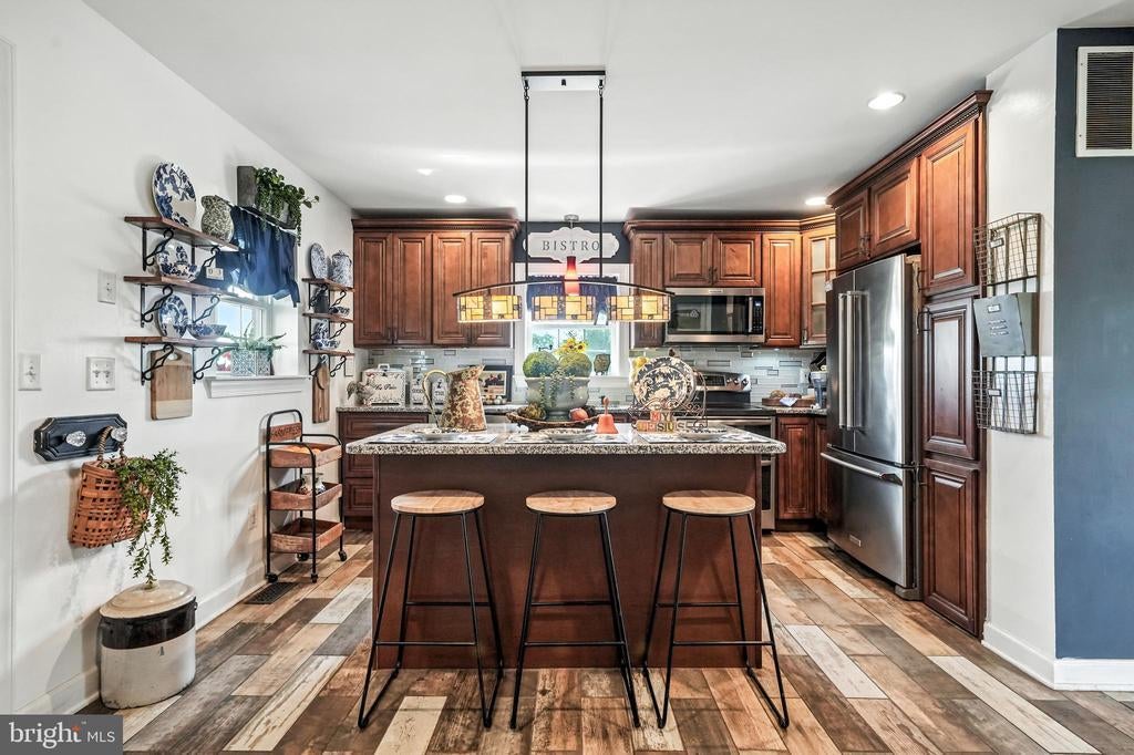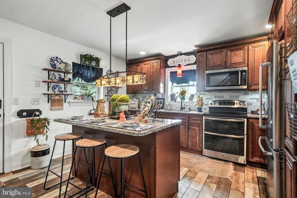 Welcome to this charming 3-bedroom, 2.5-bath farmhouse-style home offering timeless curb appeal and modern updates. Set on 1.69 acres, this property features a welcoming front porch perfect for relaxing evenings and a spacious 20x15 back porch ideal for entertaining. Inside, you’ll find wood flooring throughout the first floor, creating warmth and continuity across the large living room, dining room, and living spaces. The kitchen and bathrooms have been beautifully updated, blending style and function for today’s lifestyle. The upper level boasts a comfortable primary suite with ensuite bathroom, along with two additional bedrooms and another full bath. Additional highlights include: Detached 35x30 garage offering ample storage and workspace, Generac whole-house generator for peace of mind, Tankless hot water heater for efficiency and convenience, 3-year-old septic system, 5-year-old roof with a transferable 50-year warranty, Bilco doors and garage doors replaced 5 years ago. This property combines the charm of farmhouse living with modern updates and reliable improvements—ready for you to call it home.