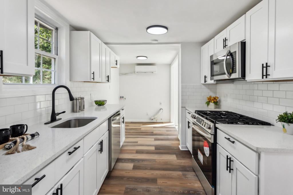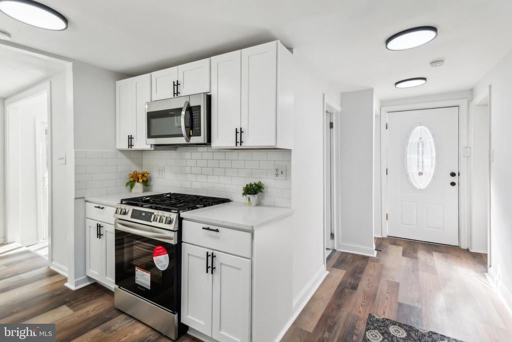 Perfect balance of seclusion and accessibility! Beautiful updated 3 bed, 2 full bath on 1.11 private acres! Lovely foyer entry with new waterproof vinyl plank flooring that flows throughout the main level. Newly remodeled kitchen with white shaker cabinetry with soft close drawers, quartz countertops, subway tile backsplash, under mount sink with black goose neck faucet and new stainless appliances. Convenient laundry area off the kitchen as well as a bright and sunny dining area with vaulted ceiling and sliding glass door to the side yard. Living room with large closet and ceiling fan leads to a spacious main floor bedroom with large double door closet. A lovely full bath with tub/shower completes the main level. Upstairs find 2 additional bedrooms, both with new carpet, ceiling fans and vaulted ceilings. The larger bedroom presents as a primary suite with walk-in closet and remodeled bath with stall shower. Additional features per seller include a newer roof, newer hot water heater, all new lighting, six panel doors, mini split systems providing both heat and air, 6 panel doors and a freshly painted interior. Seller also to provide well and septic certs! Great location offers a country setting yet is so close to downtown Egg Harbor City as well as the Rail Station. The best of both worlds!