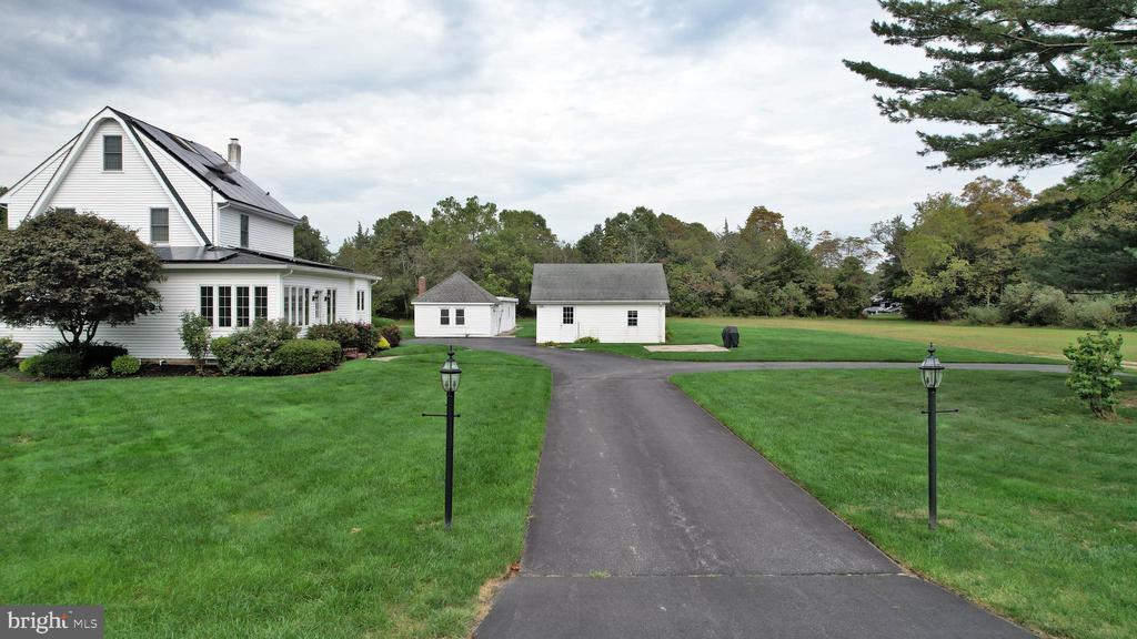 Beautiful Family Home Nestled on 7.2 acres in the Cologne section of Galloway Twp. Well Maintained and on a Beautiful Irrigated landscapedcorner lot. The lot size is 350X900. Plus a 2 car detached Garage with a walk up 2nd floor for storage and a separate 16.6X64 detached buildingwith a full summer kitchen and a full bath. A perfect heated Man Cave or She Shed (This is not a legal In Law Apt or legal rental unit) with the remaining 16.6X47 ft of storage for cars, tractors, toys or many other possibilities. Plenty of parking on the asphalt circular driveway, Separate patio for barbecue, The Home Features: High Ceilings, Spacious Formal Dining Room, Front porch leads into a Large Living Room with pocketdoors into a separate Study/Office. Beautiful Custom Kitchen with granite countertops, tile backsplash, under cabinet lighting, Island with built in Microwave drawer, Stainless Steel Appliances and a Bay window for the kitchen table, Also a pantry and the Washer/Dryer are in a closet onthe first floor. Western Red Cedar covers the walls of the rear Family room with views of the yard. All Anderson Windows, Natural Wood trimthru out, 3 Large Bedrooms, Bedroom on 3rd floor has cathedral ceilings and a skylight, Water proofed basement with interior and exterioraccess, New Gas Boiler in 2018 and New Gas H/W Heater in 2024, Culligan water filter, Low Electric Bills with Solar Panels. (Solar Panel leases paid off in September 2025). 2 Central Air units (upstairs unit replaced in 2023) Detached Building being Sold In AS IS Condition. SeeVirtual Tour attached