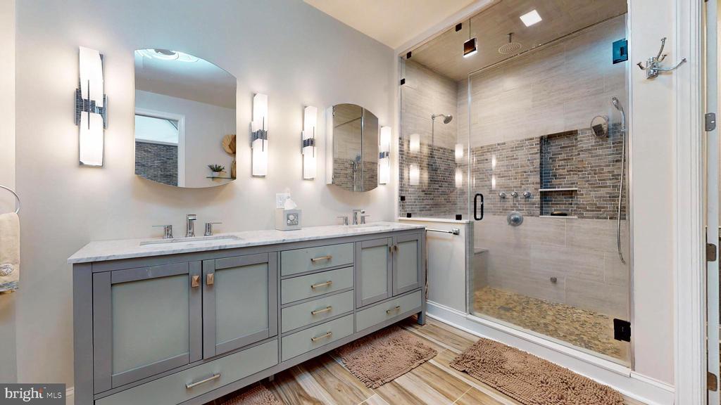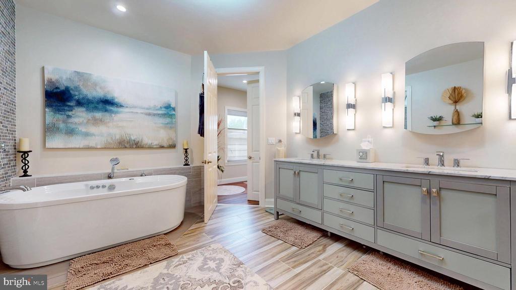Bar, Stall Shower, Tub Shower, Bathroom - Walk-In Shower, Soaking Tub, Built-Ins, Carpet, CeilngFan(s), Chair Railing, Crown Molding, Entry Lvl BR, Formal/Separate Dining Room, Master Bath(s), Upgraded Countertops, Walk-in Closet(s), Wet Bar/Bar, Shades/Blinds, Wood Floors