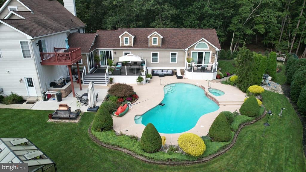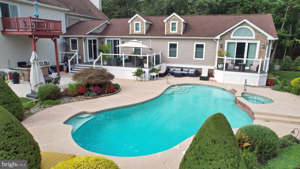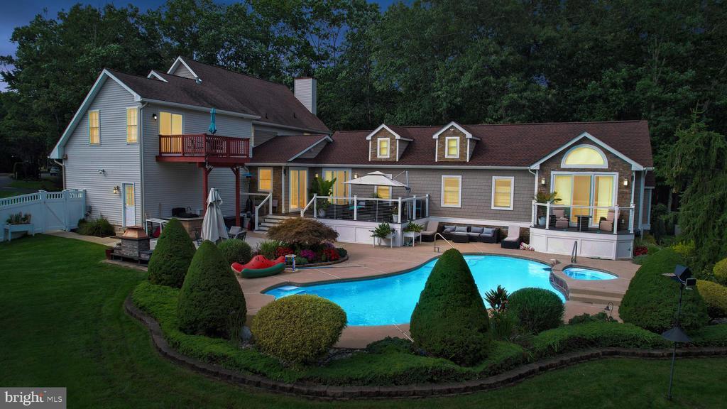 Looking for a palatial sanctuary for your extended family? Or you just want a fantastic home where you can live your best life? Come see this beautifully appointed upgraded residence with spectacular pool and private backyard oasis. This estate consists of over an acre of meticulously landscaped grounds at the end of a cul-de-sac or only 7 executive homes built by Norman Risley. Recently, this home has been expanded to a spacious 4600 sq feet. The custom open, chef's kitchen has a granite countertops and all new stainless steel appliances with many distinctive touches. The 1st floor features include crown moldings, formal dining room, office, family room with gas fireplace, wet bar & wine cooler, conversation room, and a spectacular primary bedroom suite with a fireplace a closet/dressing area/bath of your dreams. The floor plan flows with multiple entries to the very private, amazing backyard with a heater, gunite in-ground heated pool with spa and waterfall, and fully appointed outdoor kitchen, The second floor has 4 bedrooms including a second primary suite with sliders to a private deck overlooking the pool area. A huge 5th bedroom, workout/all-purpose room with large walk in closet is situated on the 3rd floor. There's also an extra large 2 car garage. Two top of the line HVAC Systems, and more makes this a turnkey, move right in dwelling that's convenient to Atlantic City Expressway and minutes to shore points North and South. This isn't just a house. It's an estate that provides a wonderful space with the utmost in comfortable, joyous living. If you enjoy entertaining or just want a quiet retreat, this is the place for you.