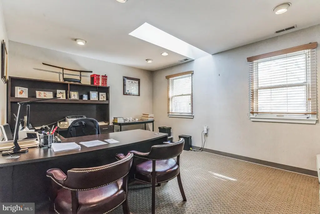 Beautiful bi level office, light and bright ,this space has been used as attorney's office. The unit is completely furnished , all furniture including front reception area and conference room can remain. Lower level has additional offices . There is a lounge and or lunch area as as well. Backs to the court yard . Maintenance fee includes water and common grounds. This space can easily be changes to any other office space needed including medical or professional.