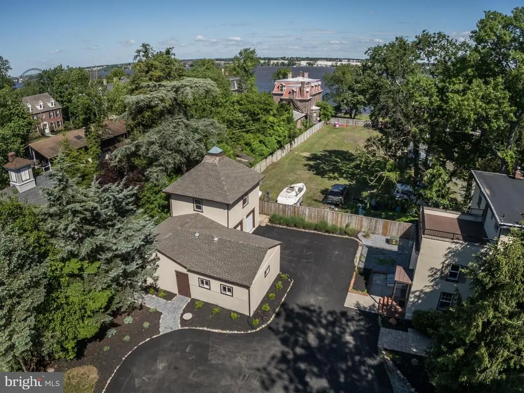 *** Master Bedroom Has Just Been Re-Done to provide plenty of room for a king sized bed and to include a new walk-in his/hers closet***(See Photos) One of the finest homes Burlington County has to offer! One of a kind beautiful historic Riverton home with river views! Built in the mid 1800’s, this all original carriage house still houses two original horse stalls which are assumed to be the last in Riverton! A complete remodel of the home and garage/loft just finished. Step into the main house you will find a tastefully remodeled kitchen. White cabinetry with glass doors. Stunning black granite counter tops. Large island with room for seating. Custom tiled back splash with decorative insert. Under the cabinet lighting. Recessed lighting. All new appliance package including an upgraded Bespoke gas range. Custom tiled wall with wooden floating shelves. Off of the kitchen is a half bath with new vanity and stylish black tiling. Moving through to the formal dining room is a step back in time. Original ornate closet. Charming built in corner cabinet with leaded glass door. Full wall of built in cabinets for storage and entertaining. Next step into the formal living area. This room also boasts a built in corner cabinet with leaded glass door, a fireplace and built in bookshelves. Oversized windows provide lots of natural light. These three rooms have refinished original hardwood flooring. The final room on the first floor is one to behold. Unique in every way. An expansive family/bonus room with heated slate flooring and natural wood beamed ceiling. Includes an ornate tiled fireplace with a bench seat. On one side of the room are two floor to ceiling closets with a built in window seat in between. On the opposite side of the room is a full wall of custom cabinets topped with granite with a bar sink and mini fridge. Original exposed brick wall completes the beauty of this room. This room is light and bright with two sets of french doors leading to a quiet and serene patio with mature landscaping. The second floor consists of three spacious bedrooms, a newly remodeled full bath with custom tiling, a storage closet, and a full size laundry while still maintaining many original characteristics of the original home. The second floor has all refinished original hardwood flooring. On the third floor you will find an exquisite master suite which includes a rooftop deck with river views to enjoy your morning coffee. All refinished hardwork flooring, and recessed lighting. The sleeping area is open with two closets and window seat. An adjoining room with ample closet space can be used as a dressing room, office, nursery, etc. The possibilities are endless. The master bath has a custom tiled shower with glass doors, an over sized double vanity, quartz counter top, tiled floor, free standing soaking tub, and private water closet. The home also has a clean, bright full unfinished basement with new hot water heater. Freshly painted throughout. New lighting fixtures and recessed lighting throughout. New windows New two panel interior doors with vintage look door knobs to keep with the home’s character. Across the freshly paved driveway is another carriage house that includes a roomy two car garage on one side, carport and original horse stalls. The second floor “loft” is refinished with new carpeting, fresh paint and mini split for heating and AC. Use your imagination for this living pace...a gym, office, playroom...New HVAC system, new asphalt circular driveway, newly landscaped areas. Located in a desirable, family friendly area close to shopping and major highways. Don’t miss out on this opportunity! Seller is a licensed NJ real estate agent. This home is included in the Riverton Historic District. This very early house was originally a part of the Joseph Lippincott Farm, and is sometimes referred to as "the old Thomas House". Seller is a licensed NJ real estate agent.