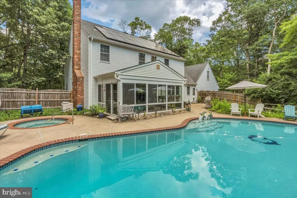 Welcome home to 14 Glen Lake Drive in the exclusive private lake community of Forest Lakes in Medford, NJ. This 4 bedroom, 2.5 bath Colonial is situated on 1.36 acres and offers over 2800 sq ft of living space and combines classic charm with contemporary updates, all while providing an ideal setting for comfortable living. Exceptional curb appeal, featuring a 2-car side entry garage, lovely landscaping and a 50-year dimensional shingle roof. Step inside to your spacious formal living, dining room and family room with gas fireplace, hardwood flooring and exposed beams. The large eat in kitchen has been recently updated to include beautiful cabinetry, granite counters, tile backsplash, a pantry closet and a center island with overhang for counter seating. A perfect space to entertain family and friends. This home also features a beautiful 3-seasons room with ceramic tile flooring, beautiful wood plank wall and ceiling and overlooking your spectacular back yard, complete with gunite heated pool and hot tub. The inground pool is perfect for cooling off during warm summer days, relax and entertain in your own backyard oasis! Back inside and completing the main level is a half bath and large laundry area. On the second level you will find 4 bedrooms, including a primary suite with attached bathroom, walk-in closet and dressing area. Each bedroom is generously sized, providing ample space for family and guests. Enjoy the convenience of 2 well-appointed bathrooms on this level as well. If this all weren’t enough this home also features a finished basement complete with cedar closet and offering a flexible space that can be customized to fit your family's needs—whether it's a cozy den, a home office, or an entertainment hub. Other upgrades include; solar panels...reduce your carbon footprint and energy bills with the home's efficient solar panel system! New furnace (1yr), roof (4yrs), water heater (4yrs), AC (7yrs), pool filter and pump (less than 5yrs). Pool has been resurfaced and coping redone (3yrs). 14 Glen Lake Drive is more than just a place to live—it's a lifestyle. With its spacious interior, modern amenities, and beautiful surroundings, it offers everything you need for comfortable and luxurious living. Whether you're hosting gatherings by the pool or enjoying quiet moments by the lake, this property is sure to become a cherished retreat for you and your family. Schedule your tour today, you won’t want to miss this one!