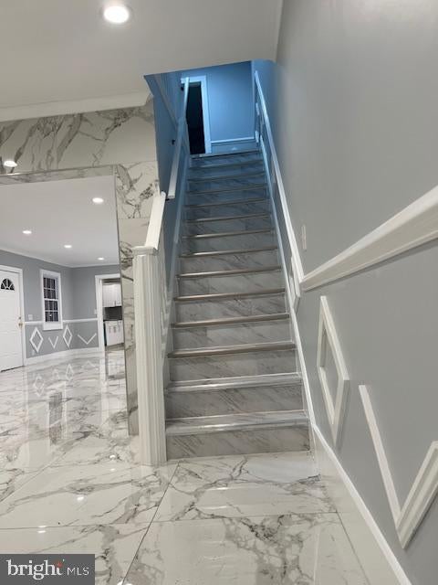 This home is just beautiful inside! The very open floor plan is eye captivating upon entry with the white and gray ceramic tiling that flows continuously on the flooring and walls and unites one room to the next for a bright and clean appearance. The recessed lighting enhances the effect and makes for a very cheery environment. Th kitchen offers a stylish modern look with updated counters and stainless steel appliances. The massive island space provides the added working and eating areas to blend this design with all first floor living areas. There is an electric built- in wall fireplace that adds such appeal to your eat in area and your family room space. A half bath is located on the first floor along with a pantry ,storage closet, and laundry area. The upper floor offers a 19' x 11' primary bedroom with a walk-in closet a storage closet. There are two additional bedrooms and a full bath to complete the upper floor plan. The finished 15' x 41' basement adds additional square footage to your home and provides a great recreation rom. This home is not a drive by. The pictures alone do not do it justice, you need to view the interior to believe it! This is one to move right in.