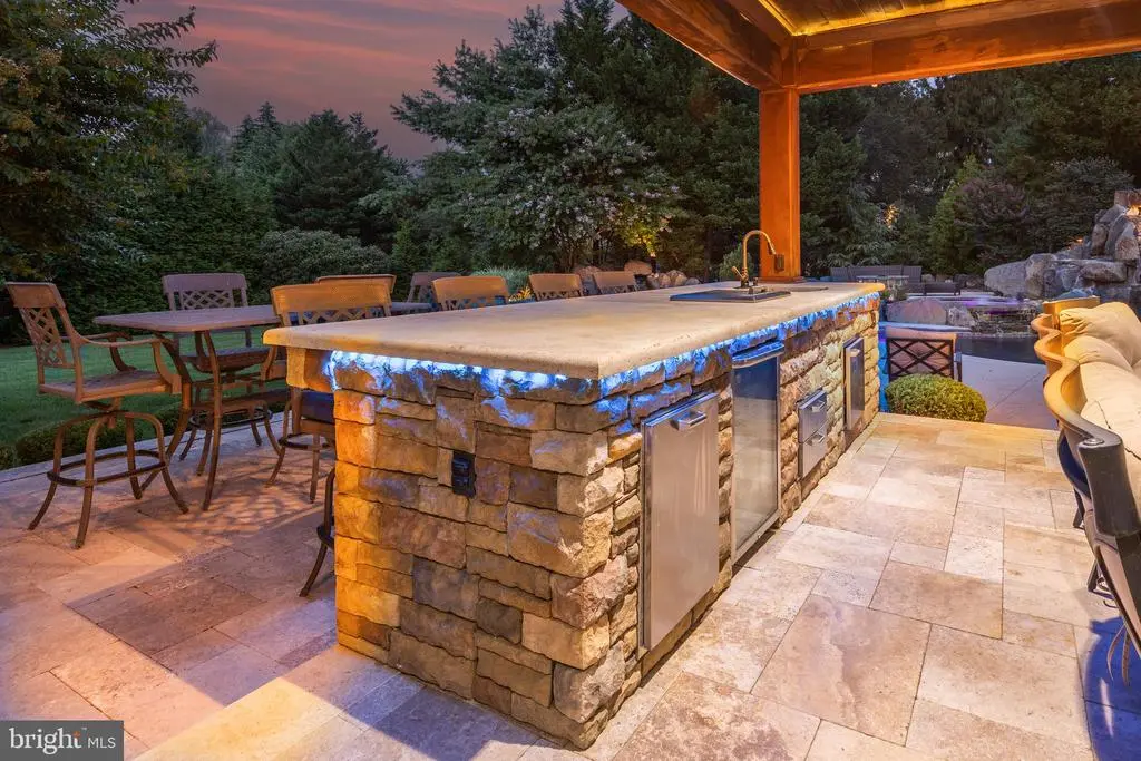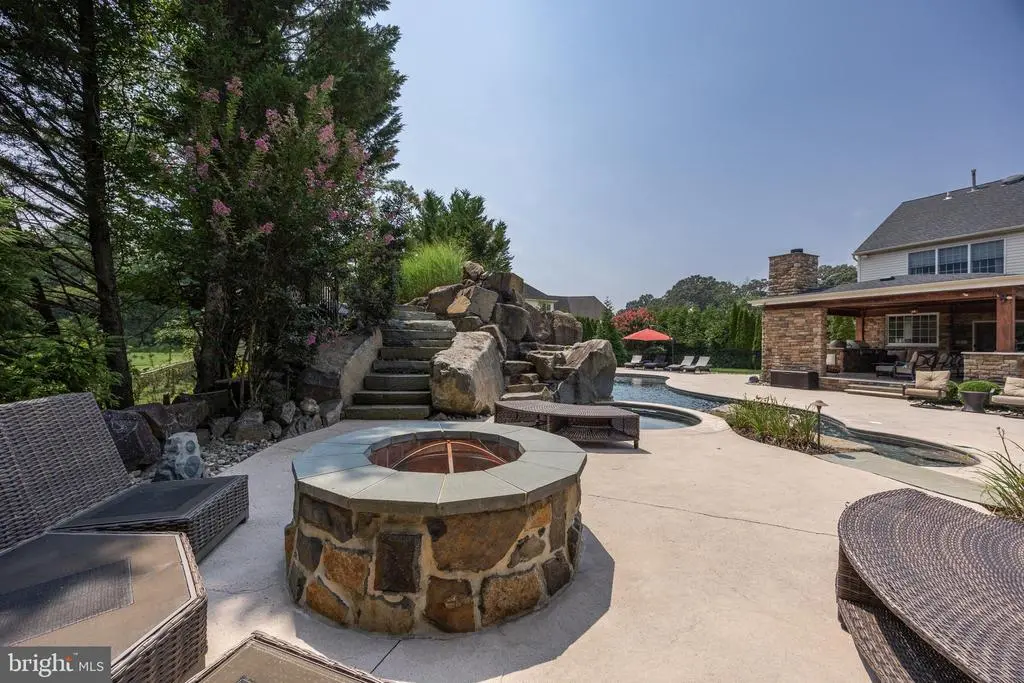 Extensive Hardscape,Exterior Lighting,Water Falls,Stone Retaining Walls,Other,Lawn Sprinkler,Deck(s),Patio(s),Fully,Gunite,In Ground,Heated,Pool/Spa Combo