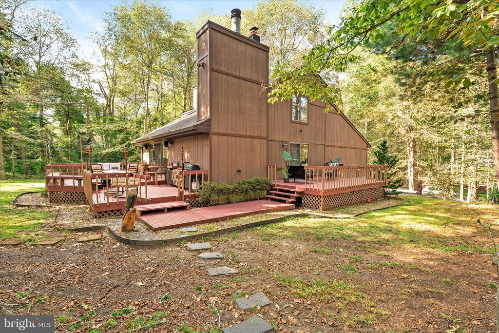 Rare Find in Hanover Hills! This beautifully maintained contemporary style home is located in the highly sought-after Hanover Hills community of North Hanover Township. As you enter the home, you’re welcomed by a spacious foyer that flows into the living room, featuring vaulted ceilings, skylights, and an inviting sunken fireplace with cozy seating. Oversized sliding glass doors fill the space with natural light and open to a spacious two-tiered deck perfect for entertaining or relaxing outdoors. The formal dining room also offers sliding doors to a second deck for seamless indoor-outdoor living. The updated kitchen features natural cherry soft-close cabinetry with custom crown molding, granite countertops, a breakfast bar, under-cabinet lighting, stainless steel counter-depth refrigerator, an energy-efficient two-drawer dishwasher, and ceramic tile flooring. The main level includes two bedrooms, one currently used as an office, and a full bath. A spiral staircase leads to the second floor, where the oversized primary suite boasts vaulted ceilings, skylights, walk-in closet, and an adjoining primary bath offers a jacuzzi soaking tub. Additional features include a convenient second-floor laundry room, Andersen sliders and windows, along with a Pella full-view storm door, a reverse osmosis system which provides exceptional water quality, and a new water softener which is currently being added. This home has been thoughtfully updated with modern comforts including the roof and Vellux skylights were replaced in 2018, new flooring, basement oil tank was replaced in 2013, a new well pump was installed in 2014, and the septic system was updated in 2007. For peace of mind, the property includes a whole-house 20kW Generac generator and an ADT security system. A home warranty will also be included with the sale. Conveniently located just minutes from Hanover Golf Club, 195, Great Adventure, and Joint Base MDL. Don’t wait to schedule your appointment!