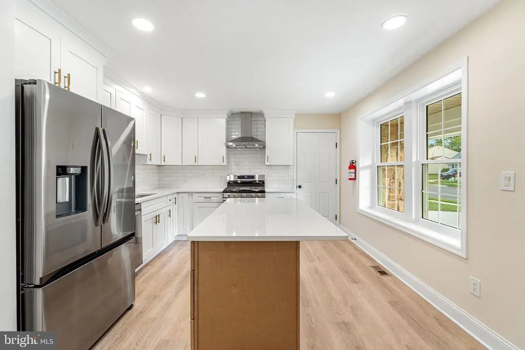 This stunning remodeled single-family home sits proudly on a corner lot, radiating curb appeal. Step inside and you’ll be welcomed by an airy, light-filled entryway that sets the tone for the entire home. To the right, a state-of-the-art kitchen features an island, illuminated cabinetry, sleek countertops, and top-tier finishes. To the left, a beautifully crafted wood staircase with a skylight leads you to the second floor. Just beyond the kitchen, the dining room opens to a spacious family room accented with custom details, recessed lighting, and skylights. Down the hall, you’ll find a contemporary powder room and a generously sized sunken master suite, complete with a 3D accent wall, walk-in closets, and French doors that open to a private deck with solar lighting. Step outside to enjoy your own in-ground swimming pool—perfect for entertaining or relaxing. The second floor offers a versatile loft overlooking the main level, along with two spacious bedrooms featuring accent walls, skylights, and a full bath. The finished lower level adds even more living space, with elegant pillars, upgraded flooring, and a stylish powder room. Best of all, enjoy peace of mind with brand-new HVAC, windows, and roof—making this luxurious home truly move-in ready.