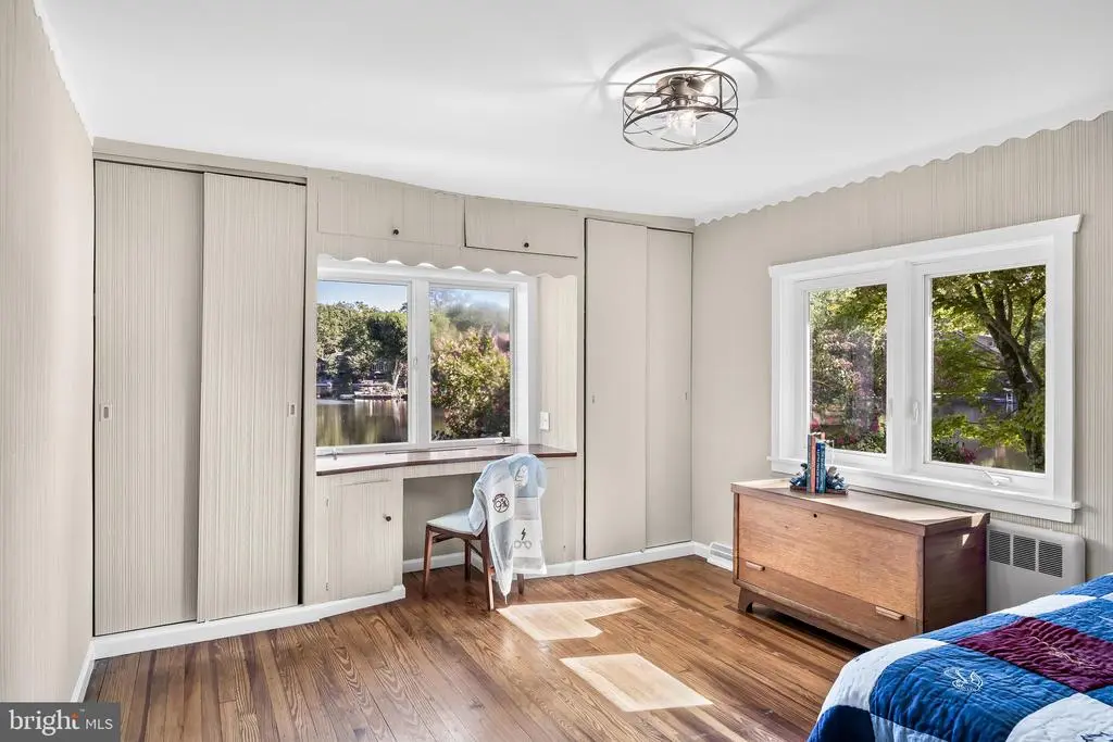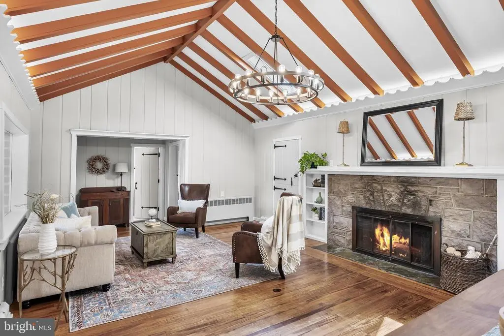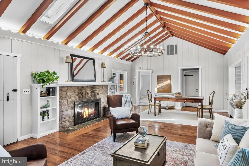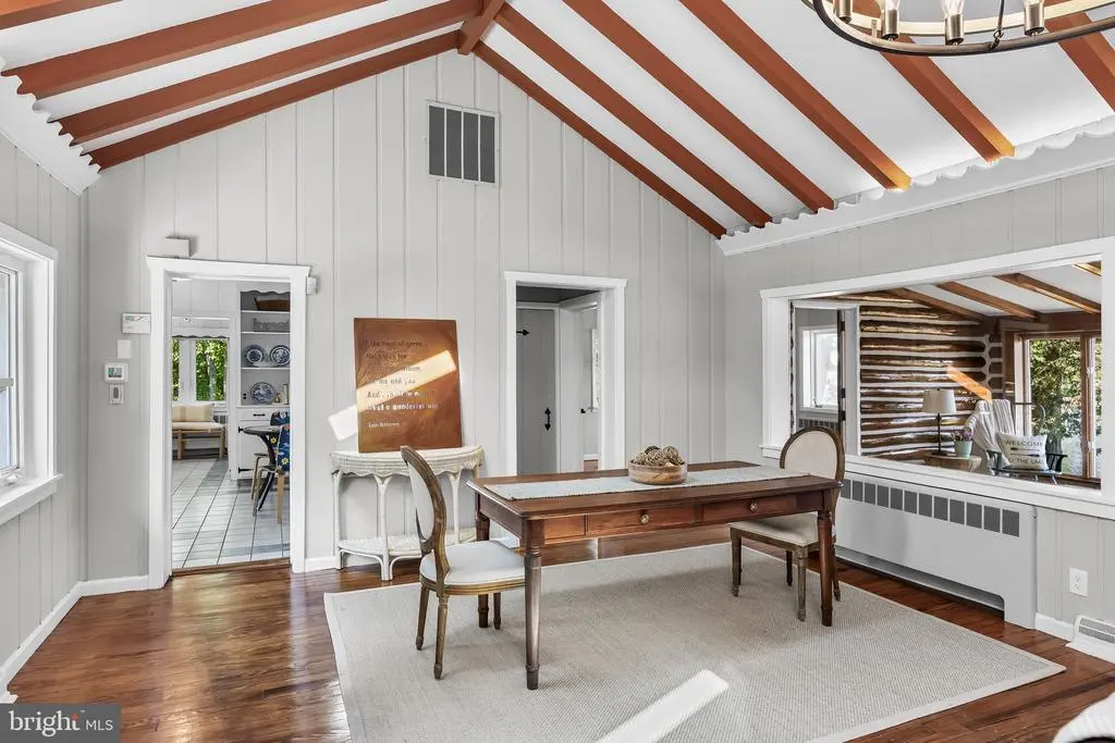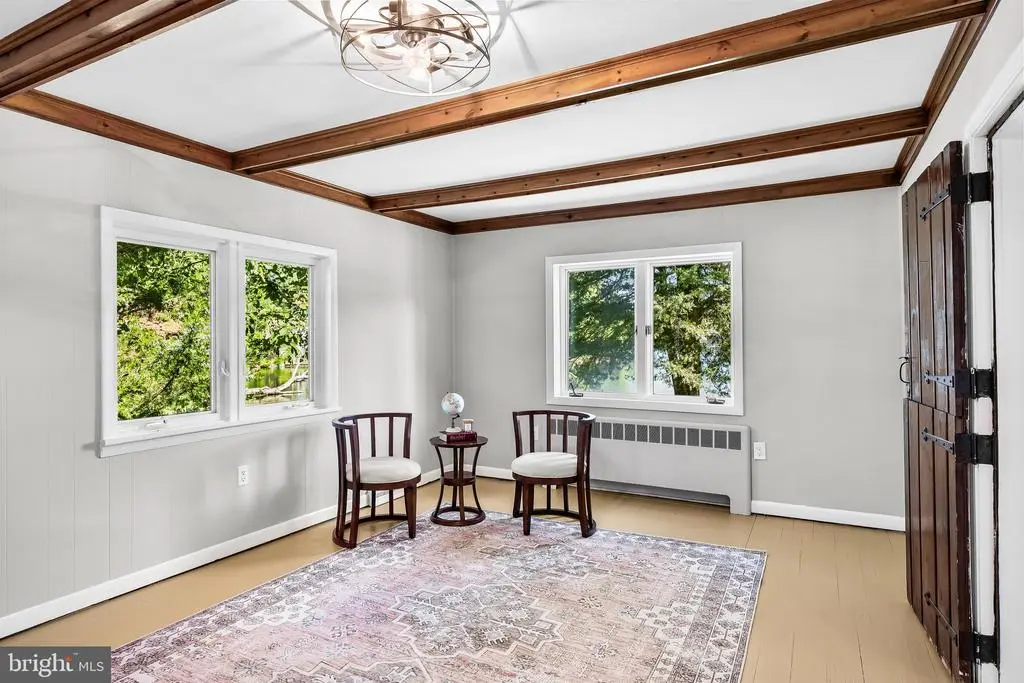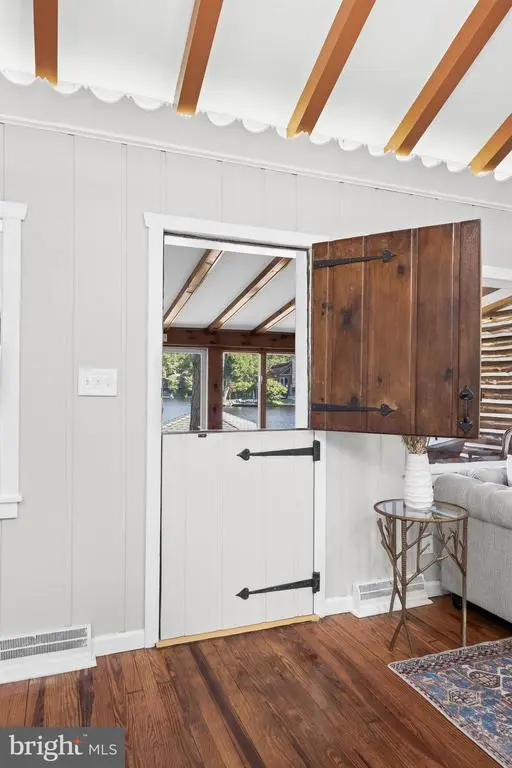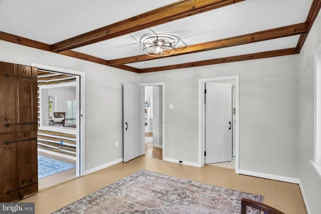 Bathroom - Tub Shower, Built-Ins, Entry Level Bedroom, Exposed Beams, Primary Bath(s), Skylight(s), Wood Floors