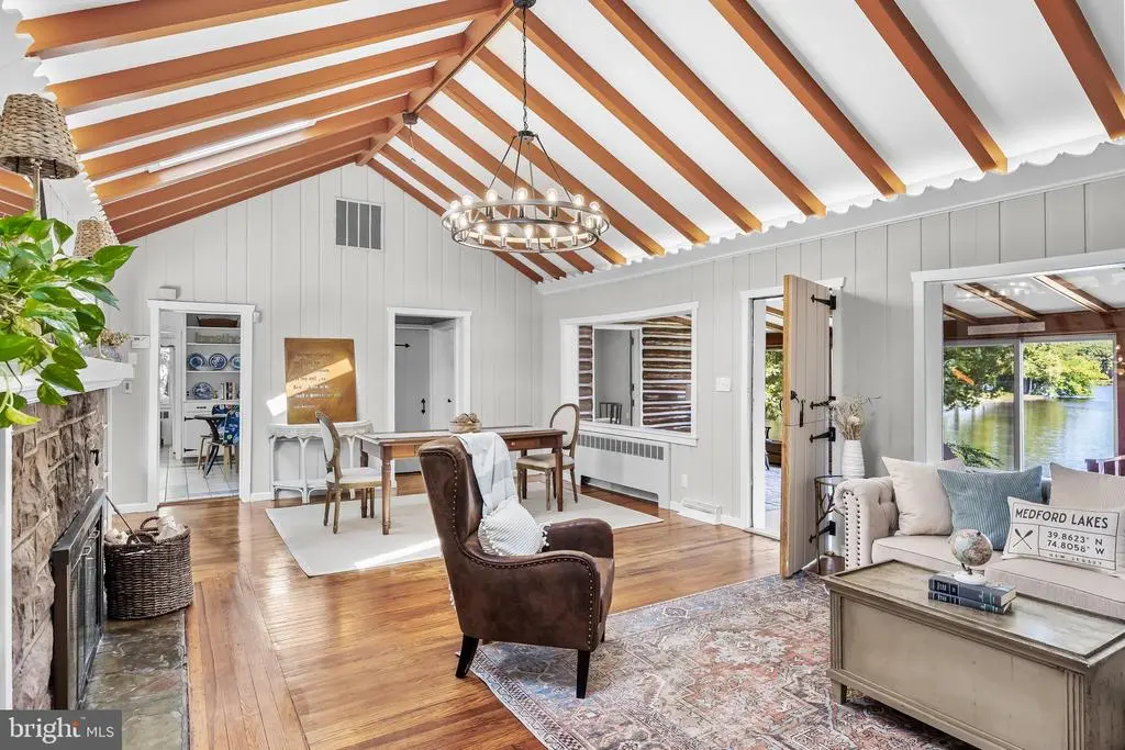 Welcome to 19 Cayuga Trail, a charming lakefront log home nestled in the serene setting of Medford Lakes, NJ. This delightful property offers a harmonious blend of rustic charm and modern comforts, perfect for those seeking a peaceful retreat. Spanning 1,708 square feet, this cozy abode features three inviting bedrooms and two full bathrooms. The spacious living area is adorned with a beautiful stone fireplace, providing a warm and inviting atmosphere for gatherings with family and friends. The property sits on a generous lot of approximately 12,589 square feet, offering ample outdoor space for relaxation and entertaining. Enjoy the tranquility of waterfront living with your very own private dock, ideal for kayaking or simply enjoying the scenic views. For those warm summer days, the home is equipped with air conditioning to keep you comfortable. Additionally, a basement provides extra storage space or potential for further customization to suit your needs. With its picturesque setting and thoughtful amenities, 19 Cayuga Trail offers a unique opportunity to embrace the Medford Lakes lifestyle. Whether you're sipping coffee by the fireplace or enjoying the lake's serenity, this home is a haven of comfort and charm. Don't miss the chance to make this exquisite property your own.
