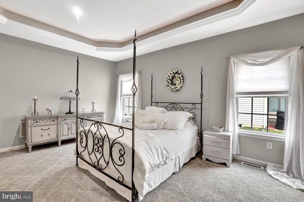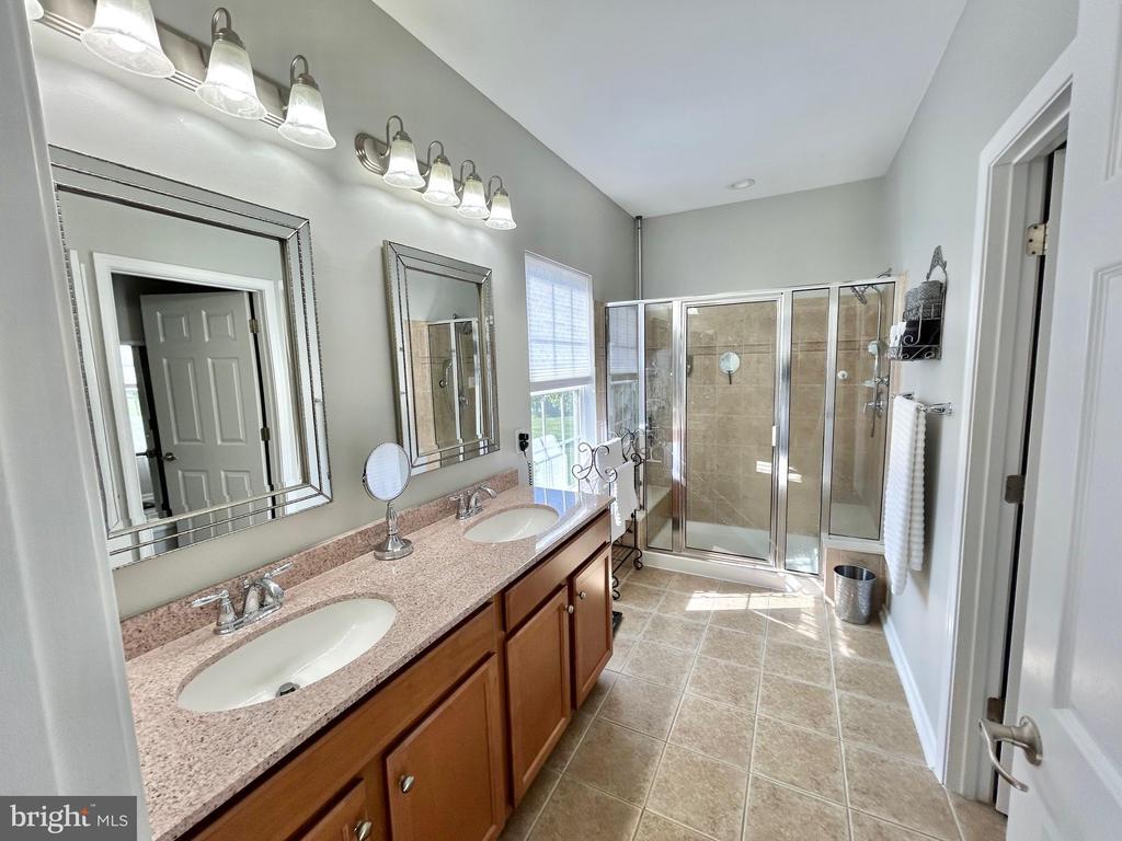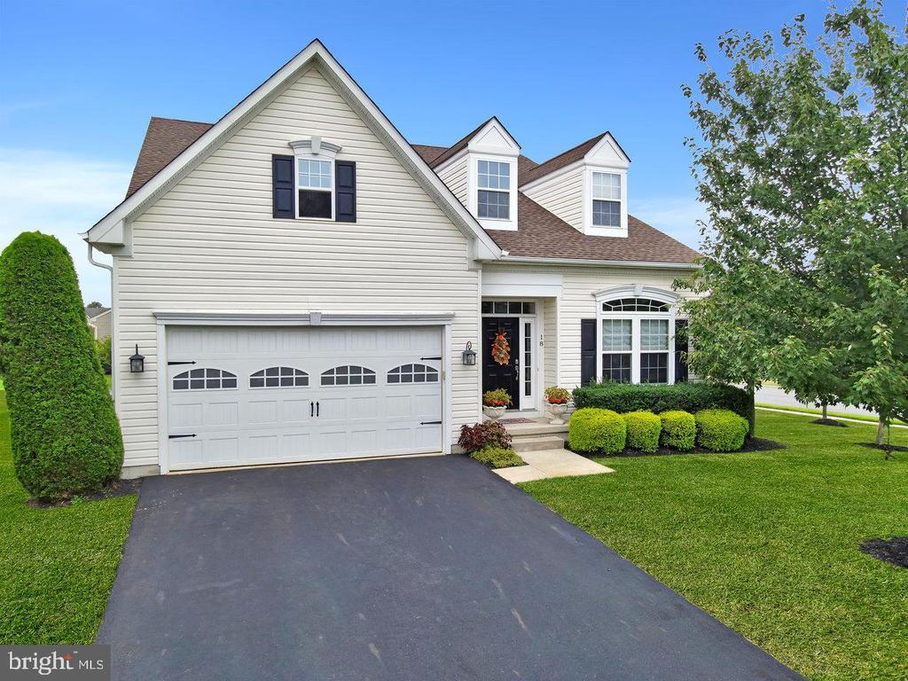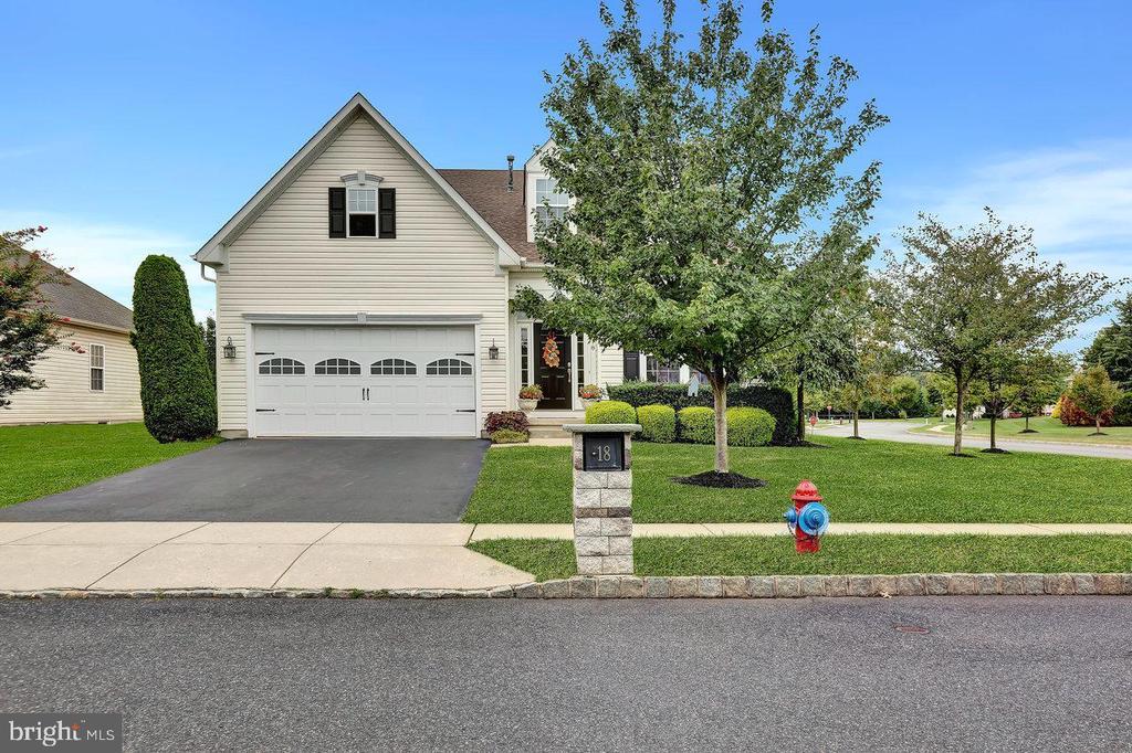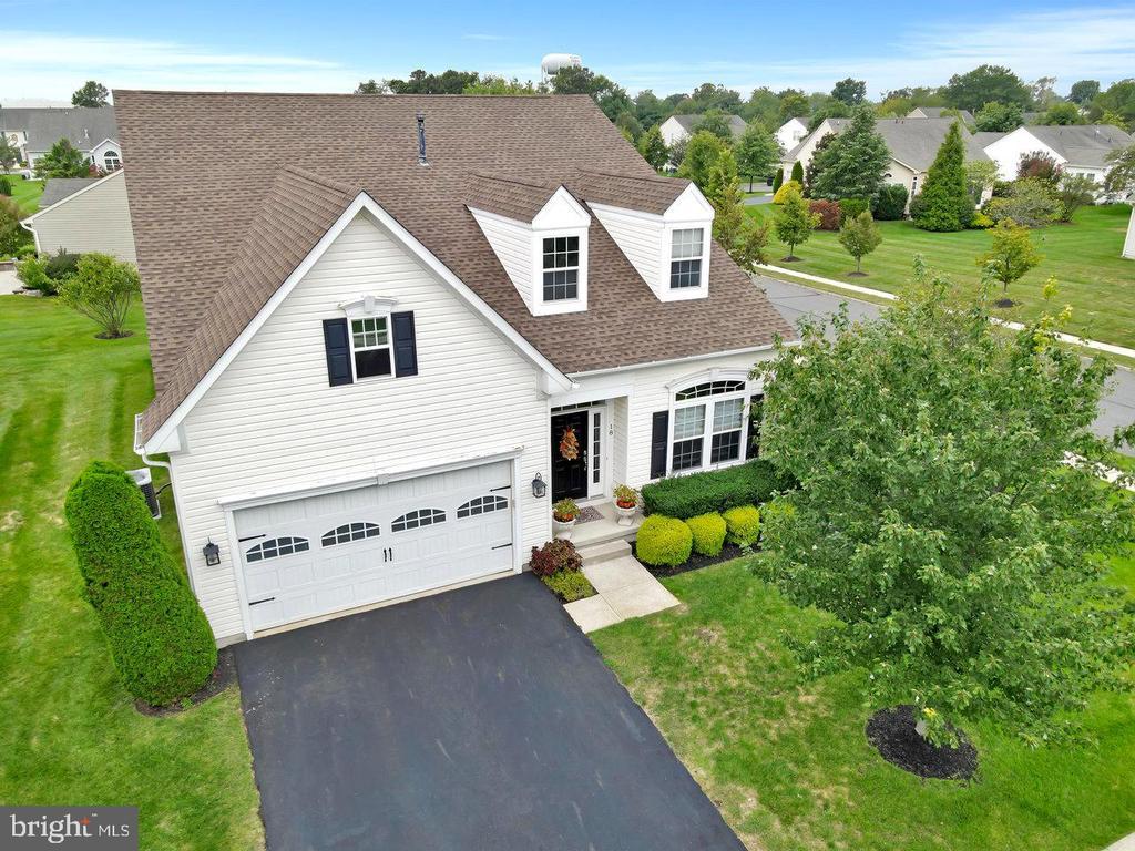 Welcome to the Legacy at Meadowcroft active adult community! This stunning Delray model is situated on almost a quarter acre corner lot and offers a total 3407 square feet of living space. The nice curb appeal provides tasteful landscaping and hardscaping and an inground sprinkler system. With efficient gas heat, central AC and less than a three year old roof, this home is sure to please. Each floor is perfectly laid out checking all of the boxes for the most discriminating buyer. The interconnected rooms and open floorplan on the first floor with the cathedral and vaulted ceilings present the home with elegance and functionality. As you enter the home you are greeted with a stunning living room and wide entry hallway with continuous gleaming hardwood flooring. The transition of this beautiful hardwood flooring continues into the connected formal dining room and creates the elegance and continuity that will make you proud to entertain. Transitioning these rooms to the gourmet kitchen is a butler pantry area to allow additional appliance and working space. Great for a coffee bar or storage for use to suit your needs. The gourmet kitchen is adjacent and open to the inviting family room with a unique corner gas fireplace and cathedral ceiling to complete the ambiance. The gourmet kitchen offers all appliances, including the gas cooktop, wall ovens, refrigerator, dishwasher, garbage disposal, microwave and instant hot water. There is full house water filtration installed in the basement to ensure clean, filtered water throughout. The attached enclosed sun room flows from the kitchen and breakfast area and is a bonus area to design how you please. This would be a wonderful sitting area as it leads to your beautiful hardscaped patio in the rear of your home. The clean appearance of the custom white shutters in these combined rooms allows for privacy while establishing the tone for a finished enticing appearance. The generously sized primary bedroom is located on the main floor and offers an extensive walk-in closet and your own private bathroom. Also on the main floor is a second bedroom that provides for office or bedroom space and an additional full bathroom for guests or second bedroom occupant. The last remaining main floor amenity is the well positioned laundry room that also offers access into your attached garage. The cathedral ceiling in the family room can be appreciated from your 2nd floor landing and sitting area, as it overlooks the room from above. The unique design on the second floor offers two bedrooms connected with private commode area and full bathroom with Jack-n-Jill access from both bedrooms. Storage areas can be found above the 2nd floor with a pull down access door and some additional storage also in the second floor eaves. The lower level of this amazing home offers two finished rooms and a large utility/storage area. There is a finished basement under the majority of the house while a concrete crawl space for additional storage completes the floor plan. Combined with the oversized two car garage with pull-down attic steps, storage will never be a problem in this home. Each floor offers the space you need to enjoy a very comfortable living arrangement and this home boasts the ample square footage to meet your needs. The Main Floor offers 1871 SF, Upper Floor offers 726 SF and the Lower Level offers 810 SF. The Legacy at Meadowcroft provides an outdoor pool, clubhouse, exercise room, aerobics and dance studio, game room, library, catering kitchen, billiards, card room, meeting room and a bocci ball court. You have a choice to get involved with the many activities available for all residents. The community is centrally located and provides easy access to all major roadways, and easy drives to the Jersey shore, Philadelphia or NYC. This beautiful home will make your active adult years so worth the wait - so tour this quickly to see all that 18 Applegate Dr has to offer!!