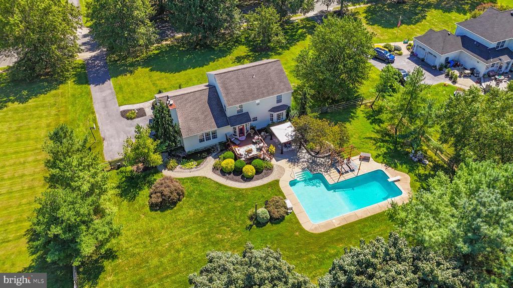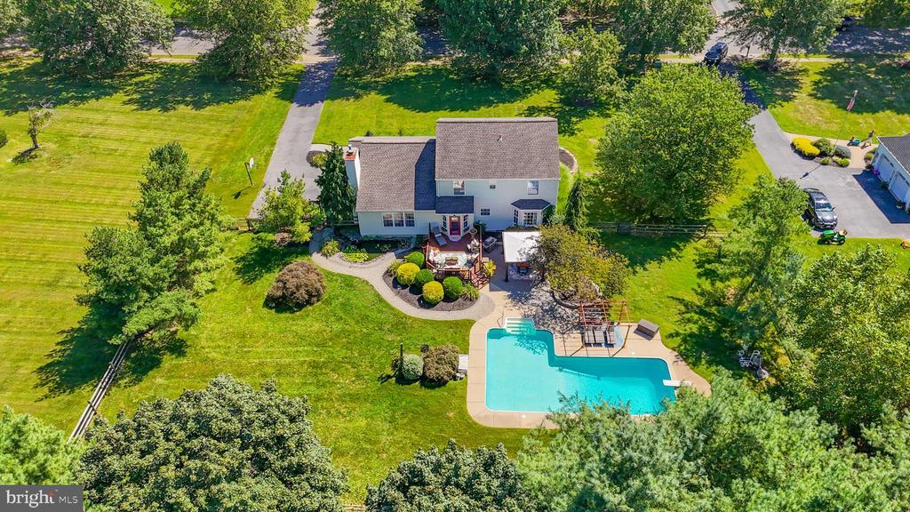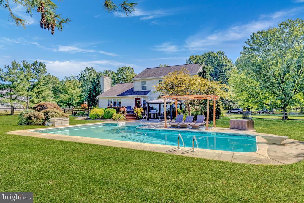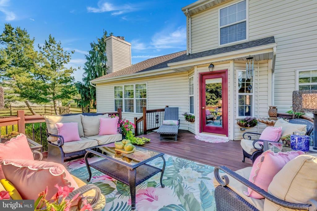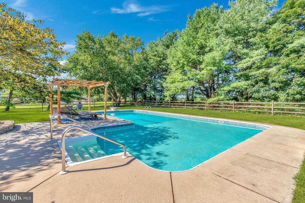Tucked in the peaceful Meadows of North Hanover, this classic Colonial blends timeless charm with modern upgrades. With 4 or 5 spacious bedrooms, 2.5 updated baths, and a bonus room for guests or a home office, there’s space for everyone. The quaint rocking chair front porch opens to a foyer that leads to a large living room and elegant dining room. The kitchen, renovated in 2023 with quartzite countertops, opens beautifully to a vaulted family room—perfect for making memories. Brazilian Cherry wood floors shine on the first level, while the full basement with a bar offers extra room to relax. Step outside to your private, fenced-in oasis with a pool, pergola, koi pond, and roomy deck. A true sanctuary in a quiet neighborhood!
