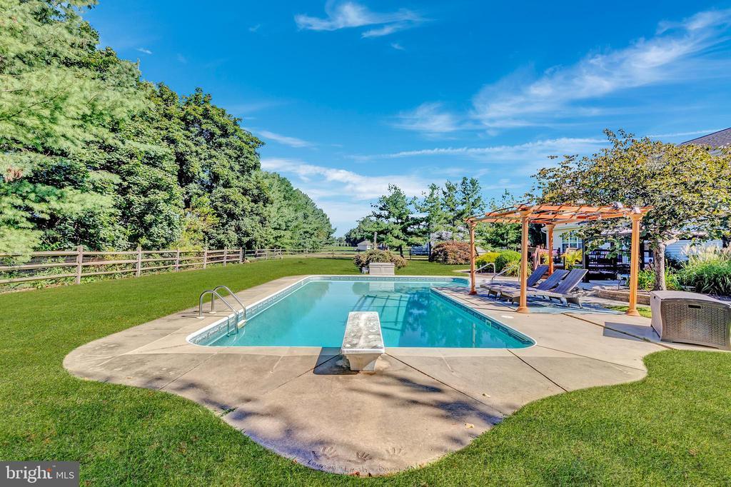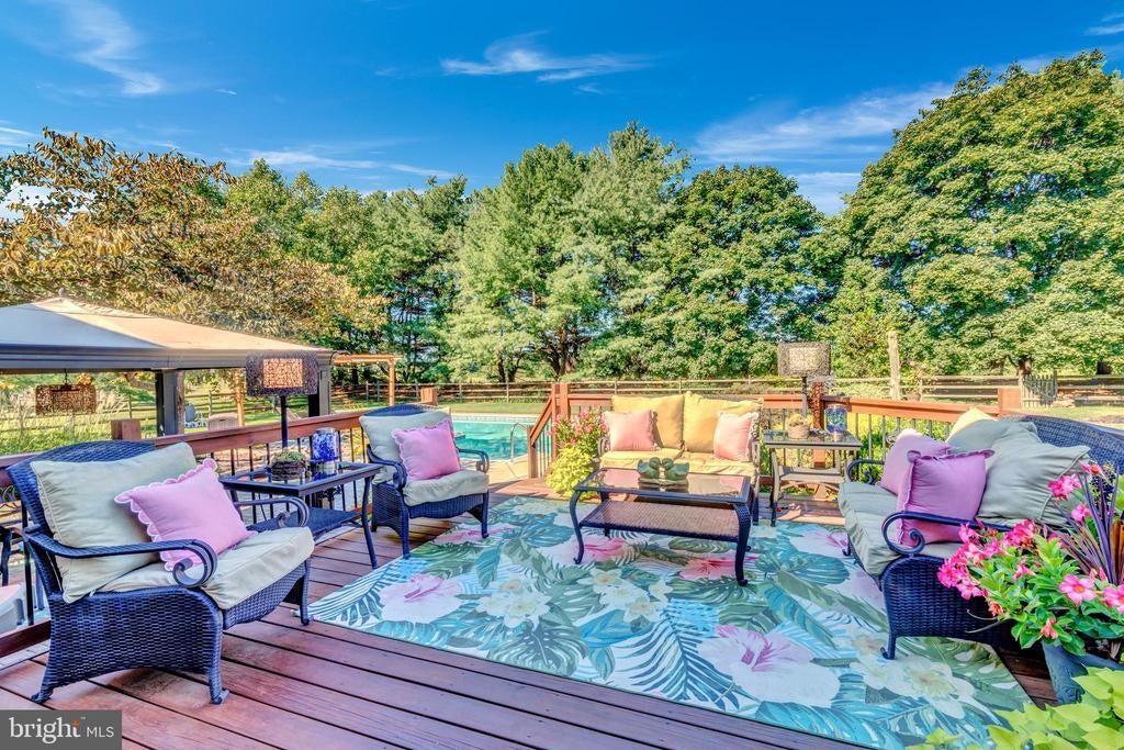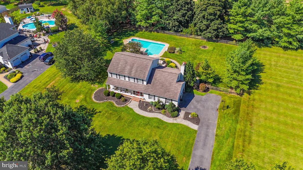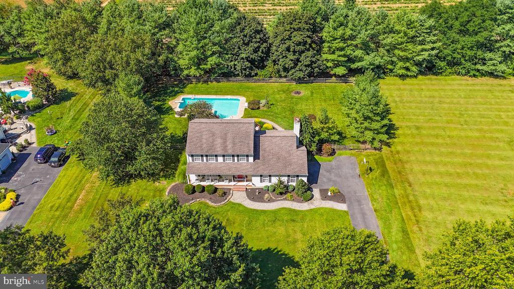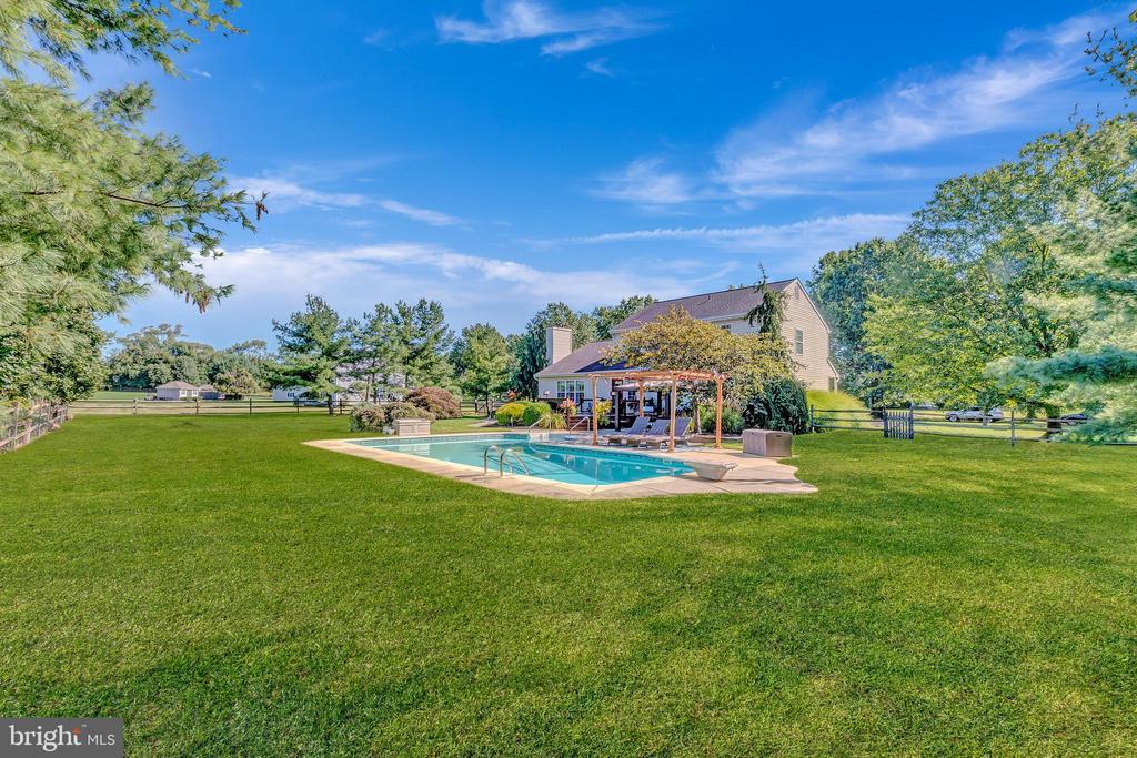 Tucked in the peaceful Meadows of North Hanover, this classic Colonial blends timeless charm with modern upgrades. With 4 or 5 spacious bedrooms, 2.5 updated baths, and a bonus room for guests or a home office, there’s space for everyone. The quaint rocking chair front porch opens to a foyer that leads to a large living room and elegant dining room. The kitchen, renovated in 2023 with quartzite countertops, opens beautifully to a vaulted family room—perfect for making memories. Brazilian Cherry wood floors shine on the first level, while the full basement with a bar offers extra room to relax. Step outside to your private, fenced-in oasis with a pool, pergola, koi pond, and roomy deck. A true sanctuary in a quiet neighborhood!