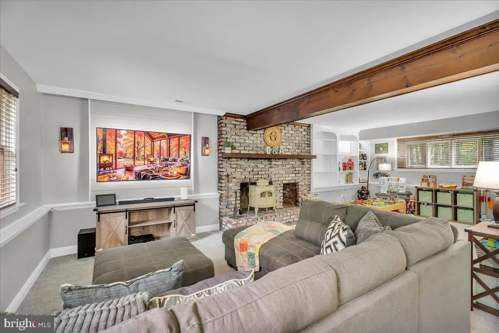 Built-Ins, Carpet, Ceiling Fan(s), Exposed Beams, Upgraded Countertops, Wood Floors