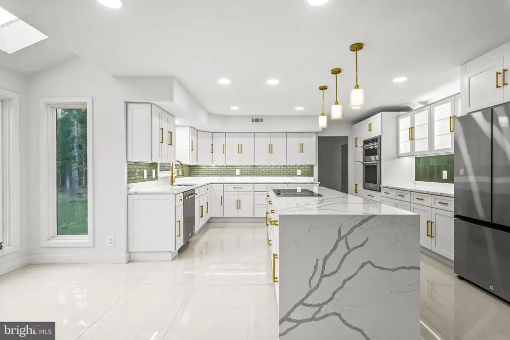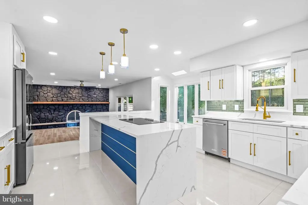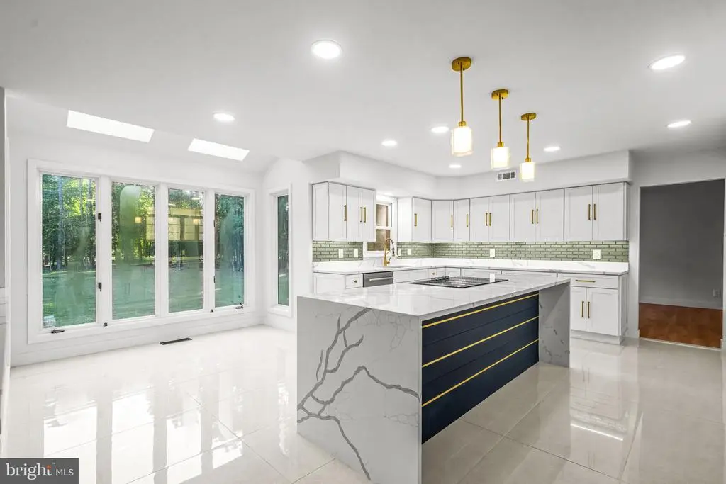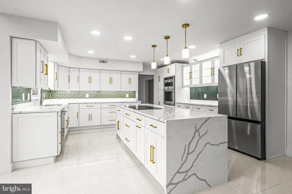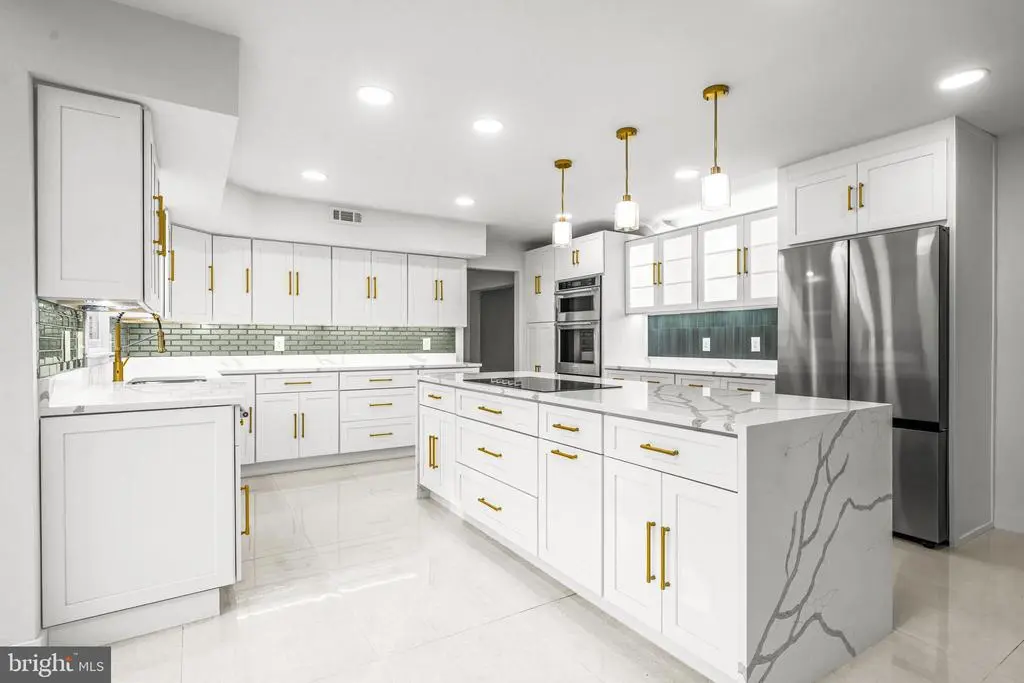 This stunning four-bedroom, 2.5-bath contemporary home in Marlton has been completely renovated with modern elegance throughout. The heart of the home is a white gourmet kitchen with striking gold accents, perfect for both everyday living and entertaining. The luxurious primary suite features a spa-like bathroom with an amazing soaking tub, creating a true retreat. Situated on a one-acre lot backing to a golf course, this property offers both privacy and serene views, blending upscale design with the peacefulness of nature.