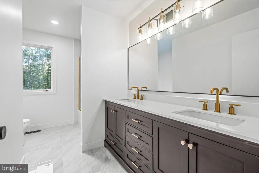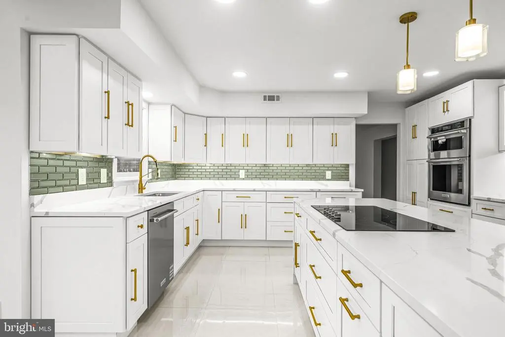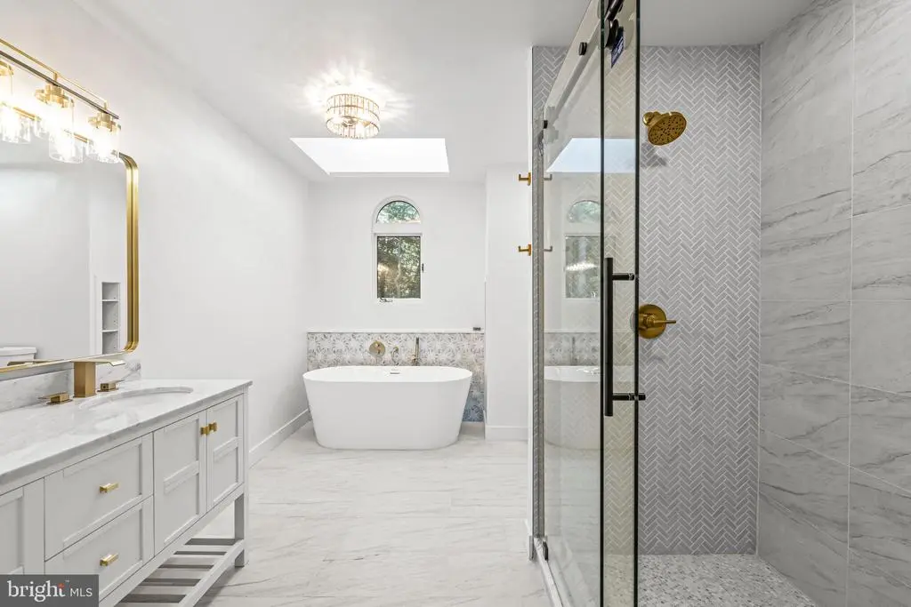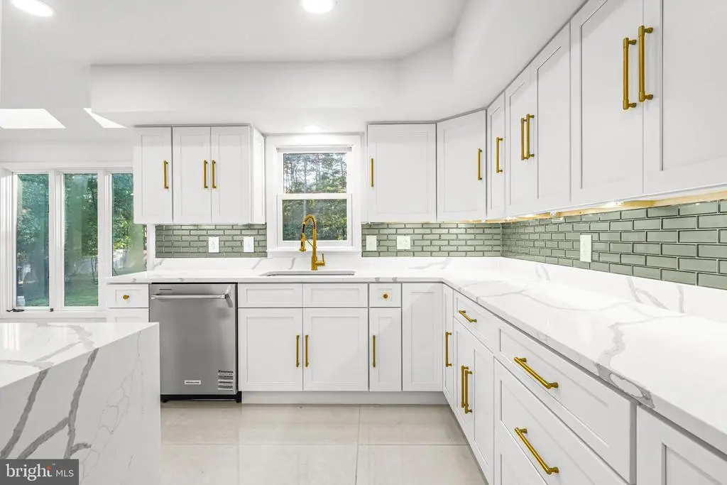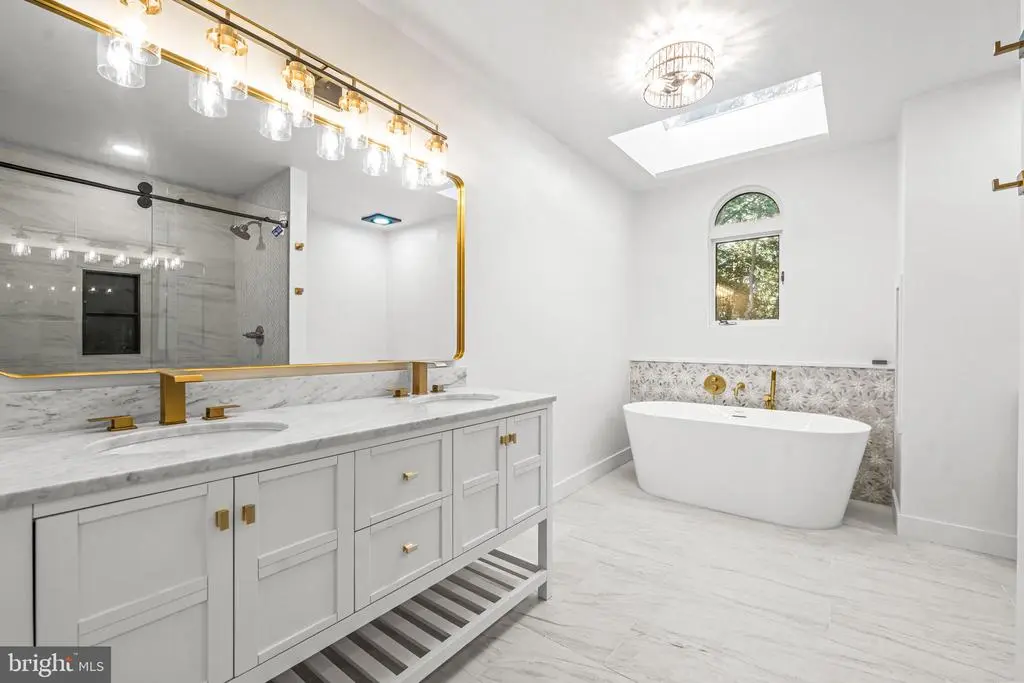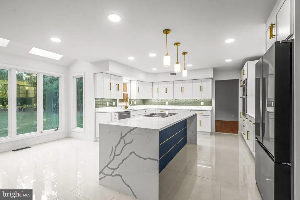This stunning four-bedroom, 2.5-bath contemporary home in Marlton has been completely renovated with modern elegance throughout. The heart of the home is a white gourmet kitchen with striking gold accents, perfect for both everyday living and entertaining. The luxurious primary suite features a spa-like bathroom with an amazing soaking tub, creating a true retreat. Situated on a one-acre lot backing to a golf course, this property offers both privacy and serene views, blending upscale design with the peacefulness of nature.
