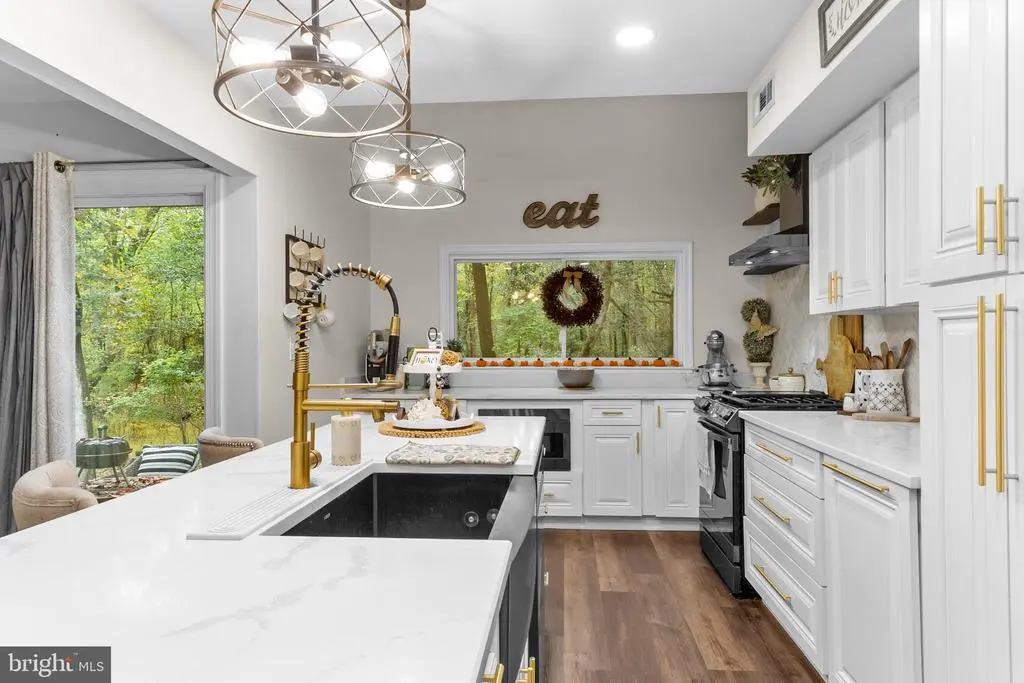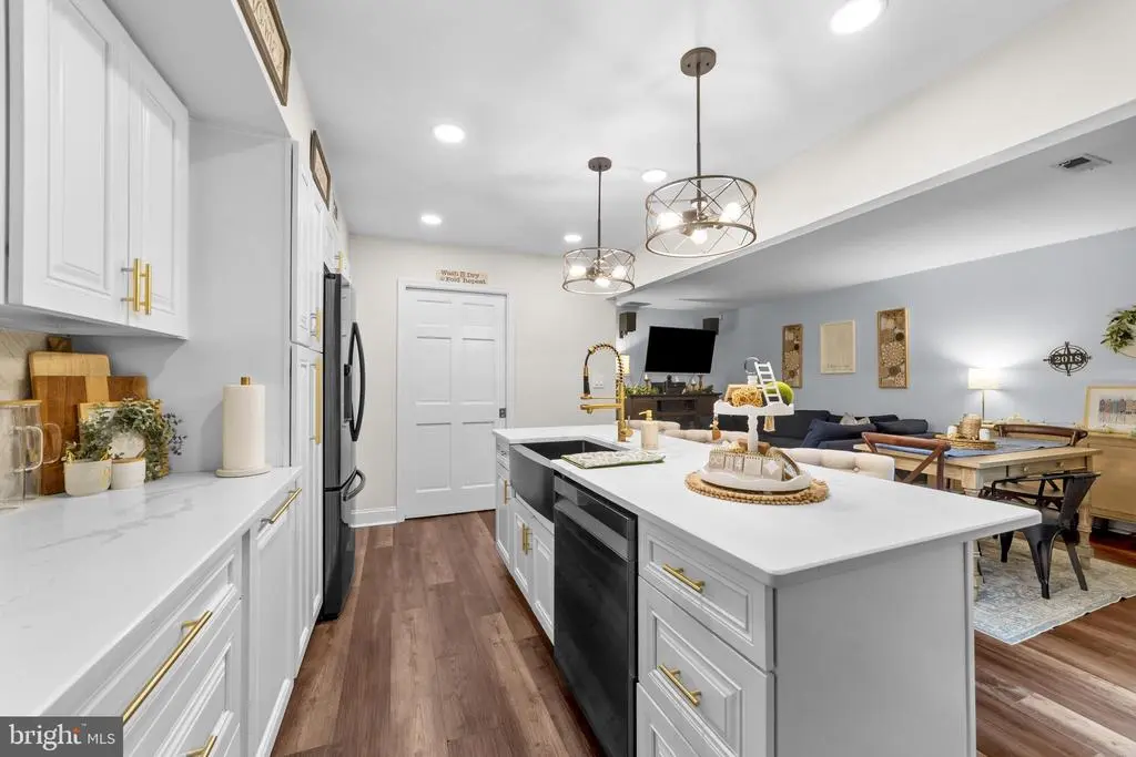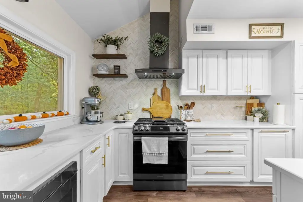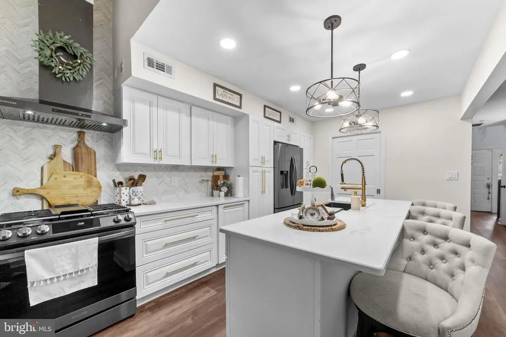 Step into a lifestyle of luxury and convenience at this impeccably updated townhome in the serene Villa Royale section of Kings Grant. Designed for the modern buyer, this home is entirely move-in ready with fresh paint, wood-plank flooring, and updates throughout. The heart of the home is the stunning, expanded gourmet kitchen, a true masterpiece of modern farmhouse design. This culinary haven features sophisticated white, soft-close cabinets with gold hardware, elegant scratch-resistant Quartz countertops, a herringbone tile backsplash, and top-of-the-line black stainless steel appliances—including a smart 5-burner stove and a sleek microwave drawer. The oversized center island offers seating for four, making it a perfect hub for entertaining or everyday dining. The seamless flow continues past the updated kitchen to a convenient first-floor laundry room and an exceptional bonus room. Currently configured as a versatile space (ideal for a home office, gym, or playroom), it can easily be converted back to a 1-car garage if desired. Both the main level half bath (2020) and the full upstairs bath (2025) have been stylishly updated. Upstairs, the spacious Primary Suite boasts two walk-in closets with custom organizers—providing ample storage. The Kings Grant Lifestyle: This secluded, family-oriented community is perfect for those who love the outdoors. Your ownership grants access to resort-style amenities including lake access, beaches, an assortment of recreational courts (volleyball/tennis), walking trails, a playground, and your own Villa Royale community pool. Enjoy a strong community feel with a tranquil, nature-filled backdrop. Don't wait to experience the best of Marlton living. Schedule your private viewing today!
