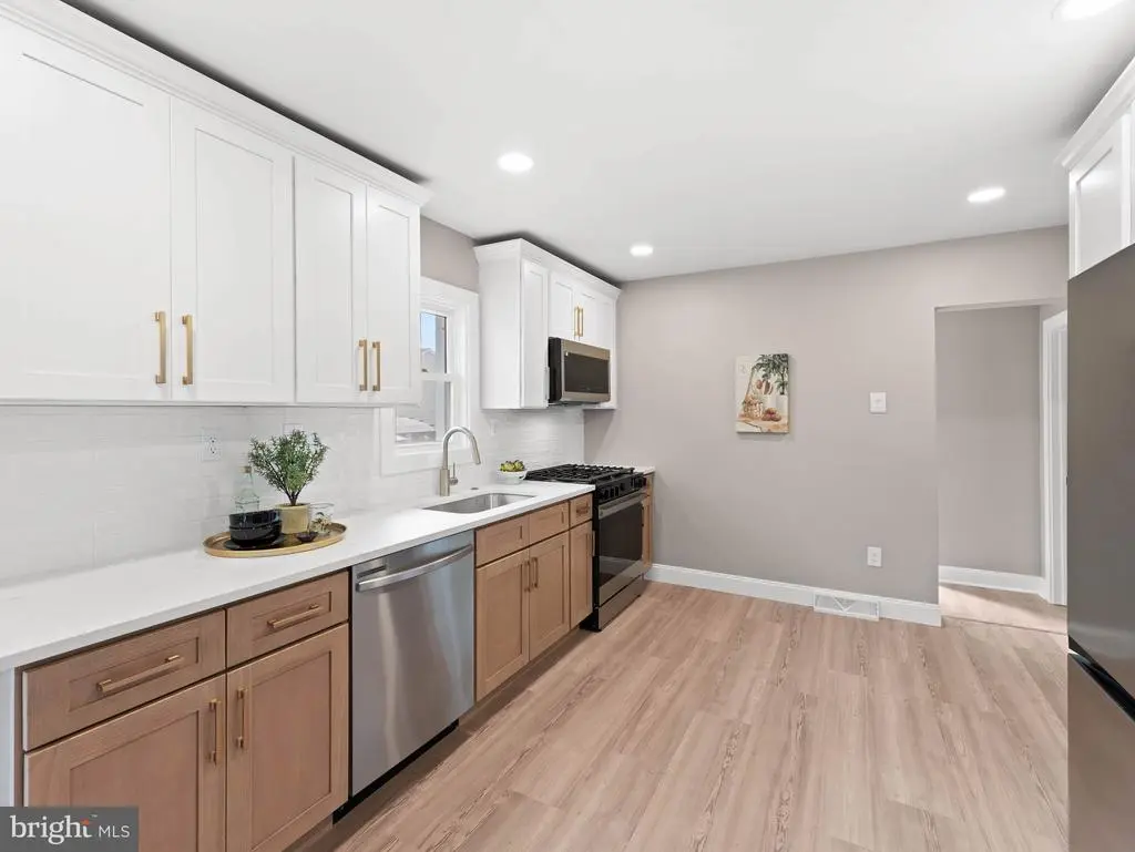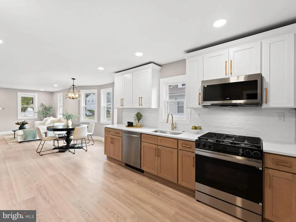 **SHE'S NEW & IMPROVED $$$** Located steps from Main St in Maple Shade, welcome to 48 N Terrace; a modern farmhouse style property with a thoughtful open layout. Every inch has been reimagined to perfection—from the stone stairs and cross-cable porch railing to the warm shiplap-accented porch ceiling and bold-colored front door that welcomes you home. Inside, light pours through the brand new windows across the open-concept living, dining, and kitchen space. The living room centers around a built-in electric fireplace with a rustic wood mantel, while the designer kitchen steals the show with two-tone shaker cabinetry, gold hardware, and brand-new Samsung appliances. All three bedrooms are conveniently located on the main floor, including the primary suite with a walk-in closet. The main bathroom wows with its floor-to-ceiling tilework, fluted vanity, and elegant gold finishes. Toward the rear of the home, a mudroom with sliding doors leads to an expansive backyard—a serene outdoor space shaded by mature trees. Upstairs, a finished attic retreat offers incredible flexibility—ideal as a playroom or hangout—with a full bathroom featuring a boho-patterned accent wall and subway-tiled shower. Downstairs, the freshly sealed basement provides a laundry area, utility sink, and generous storage potential. 48 N Terrace is the epitome of South Jersey living; you’re moments away from local restaurants, boutique shops, and the iconic Tacconelli’s Pizza. Turn key and ready to be unpacked and moved into right in time for the holiday season. Schedule your showing today!