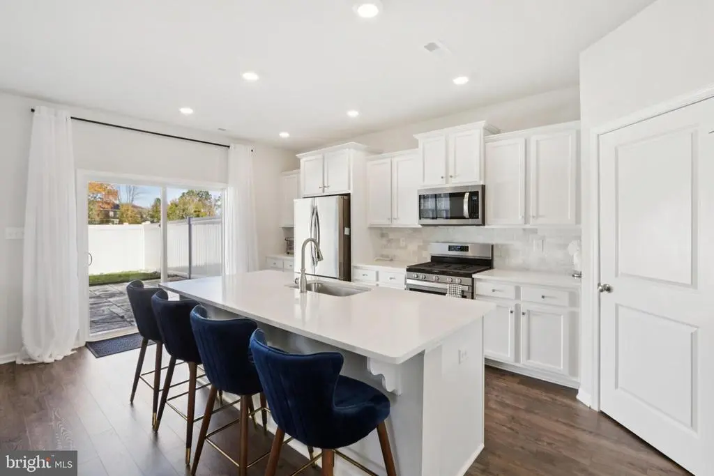 Welcome to 19 Roberta Way – an exquisite end-unit townhouse on a premium lot in the desirable Medford Walk community! Built just four years ago by D.R. Horton, this 4-bedroom, 2.5-bath home perfectly blends modern elegance with everyday comfort. Step inside to discover an open-concept design filled with natural light, stylish finishes, and all the modern conveniences you could ask for. The gourmet kitchen is a true centerpiece—featuring quartz countertops, a large center island with seating, stainless steel appliances, gas cooking, recessed lighting, and a spacious pantry. The kitchen flows seamlessly into the dining area and family room, creating an ideal space for entertaining or relaxing. Upstairs, you’ll find a stunning primary suite with a walk-in closet and a beautifully appointed en-suite bath. Three additional bedrooms, a full hall bath, and a convenient second-floor laundry complete the upper level. Enjoy your morning coffee or evening unwind in the private, fenced backyard overlooking preserved open space—complete with a stamped concrete patio, perfect for outdoor gatherings. The lawn sprinkler system keeps your yard lush and green year-round. Located just minutes from Medford’s charming Main Street shops and restaurants, and with easy access to Route 70, this home offers the best of convenience and community. Experience low-maintenance living in one of Medford’s most sought-after neighborhoods—where style, comfort, and location come together beautifully. Home is South facing