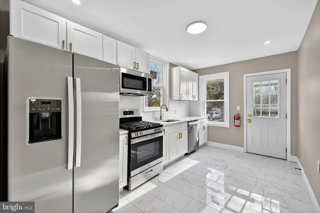 Beautifully Renovated Home in Historic Roebling Village! Welcome to this stunningly rehabbed home located just steps from the Delaware River in charming Roebling Village. This move-in-ready property features new hardwood floors on the main level, brand new carpet in all bedrooms, and fresh paint throughout. Enjoy modern comfort with new central air conditioning, recessed lighting, and new energy-efficient windows that fill the home with natural light. The updated kitchen boasts new cabinets, quartz countertops, and stainless steel appliances, perfect for any home chef. The fully updated bathroom offers stylish, contemporary finishes. The unfinished basement provides ample storage space and includes a washer and dryer for your convenience. Step outside to a fenced-in backyard, ideal for entertaining, gardening, or relaxing outdoors. Located within the Florence Township School District, this home combines small-town charm with modern upgrades—ready for you to move in and enjoy!