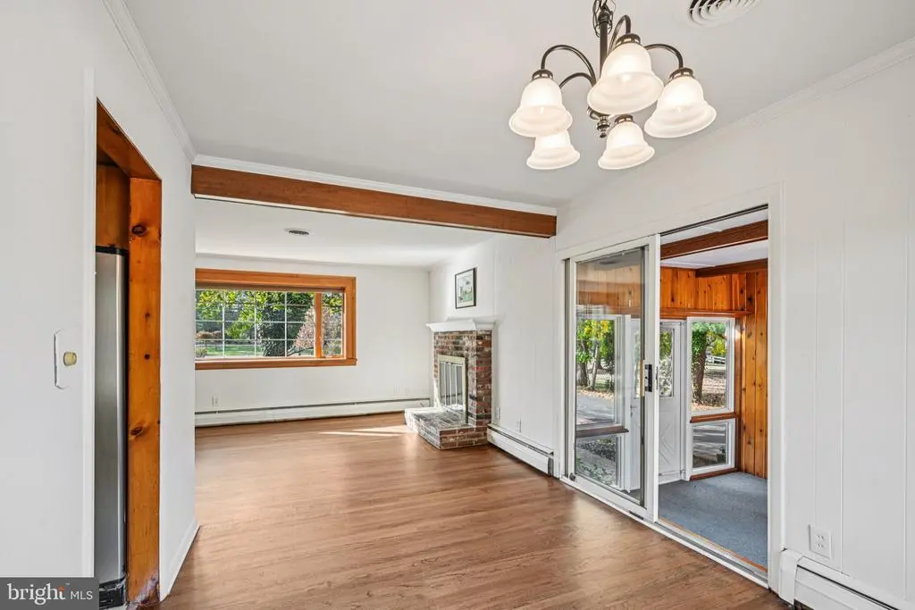 Welcome to 12 Jennings Road in Medford, NJ! This charming 4-bedroom, 2-bath ranch-style home is nestled on nearly 2.5 spectacular acres with an in-ground pool, offering privacy, space, and timeless appeal. Freshly refinished hardwood floors throughout and newly painted walls this home is ready for its next owner. Step inside to find a spacious living room with warming wood flooring, a beautiful bay window, and a cozy wood-burning fireplace. Providing an inviting place to entertain family and friends this space opens nicely to the dining area. The inviting kitchen, just off the dining room, has warm knotty pine paneled walls and a large window framing lovely views of the expansive backyard and in-ground pool. There are 4 sizable bedrooms to the right of the living area. Two of these rooms have the same beautiful hardwood flooring while the other two host brand new light colored carpeting. There are two full size bathrooms and an additional walk-in closet convenient to all of the bedrooms as well as a good sized laundry room creating an easy flowing floor plan. Relax in the three season enclosed sunroom, or enjoy a stroll outdoors on the lush grounds complete with a charming storage shed, and tranquil creek at the edge of the property. There is an oversized 2 car garage with additional storage and attic access. The full unfinished basement provides endless potential for storage or additional living space. With its single-level layout, cozy charm, and picturesque setting, this home is the perfect Medford retreat for comfort, entertaining, and enjoying the beauty of nature. Conveniently located to all that Medford offers with Main Street festivities as well as access to shopping, restaurants and major highways this is one you won't want to miss!