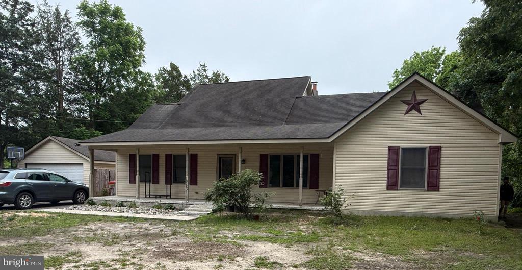 NEWLY PRICED! MOTIVATED SELLERS! Charming Country-Style Cape Cod on just over 3/4 of an acre, updated and move-in ready! As you approach this home, step up to the welcoming concrete front porch for you to relax and enjoy the outdoors. Walk into the spacious living room with natural wood walls and beams to accent that country feel. Living room is open to the large eat-in kitchen with granite countertops, stainless steel appliances, lots of Hickory cabinets for storage, tile floor, and a wood stove. Off the living room you will find 2 nicely-sized bedrooms with ample closet space. On the opposite side of the home, you will find the primary bedroom with rough-in plumbing and space to design your own primary en-suite. Down the hall is a full bath with double sinks, extra deep tub, and tile floor. Head upstairs for another 14x22 extra finished flex space with laundry area and newer electric baseboard heating. This home features insulated Anderson windows, solid wood 6 panel doors, natural ceiling beams, and ceiling fans throughout. Newer water heater 2020, septic 2017, electric and plumbing completely redone in 2004 with remodel of home. Two-car detached 24x55 garage with electric, insulated door, work shop area, separate work room, and extra storage space. Schedule your private showing today! ***Seller is offering a 1-Year Home Warranty!