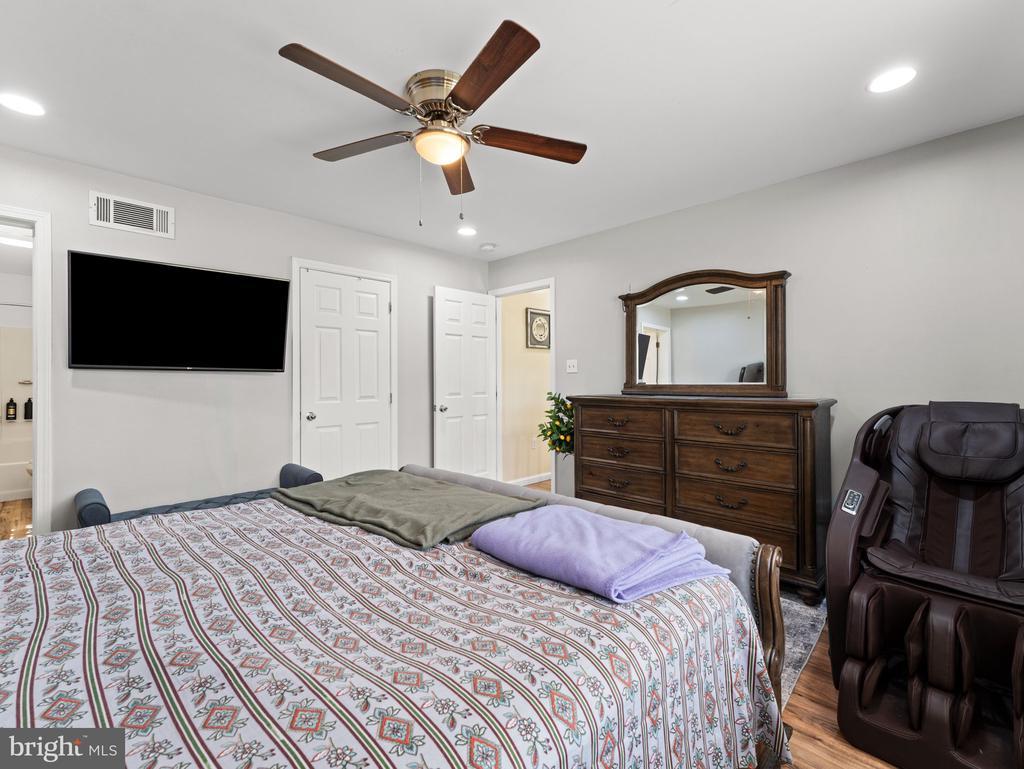 Newly renovated in 2023, this stunning home is fully upgraded with modern finishes inside and out! Featuring 2 master suites, all-new plumbing and electrical systems, and completely remodeled bathrooms. The upgraded kitchen includes new counters, cabinets, flooring, and a large island with breakfast seating. Enjoy the spacious upstairs living room, while the downstairs boasts a very large family room, perfect for gatherings. Step outside to a large second-floor deck with direct access to the backyard, ideal for entertaining or relaxation. Additional highlights include upgraded light fixtures, Bluetooth-enabled bathrooms, and a huge backyard with potential to add more rooms if desired making this home perfect for extended families. Properly licensed and ready for its new owners to move in and enjoy!