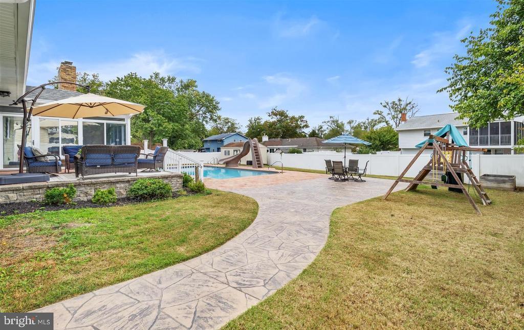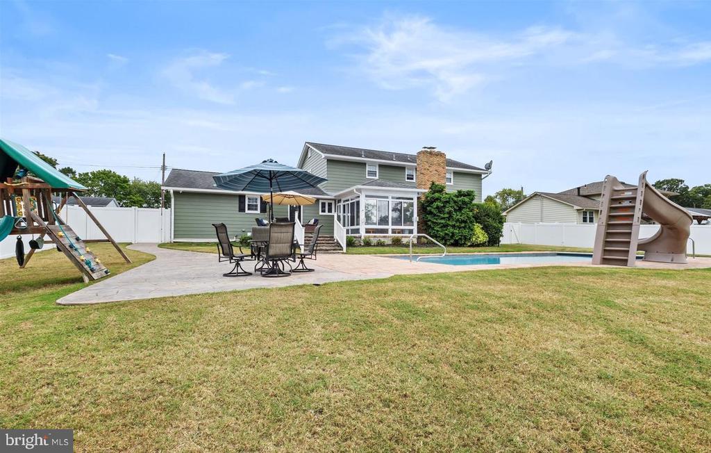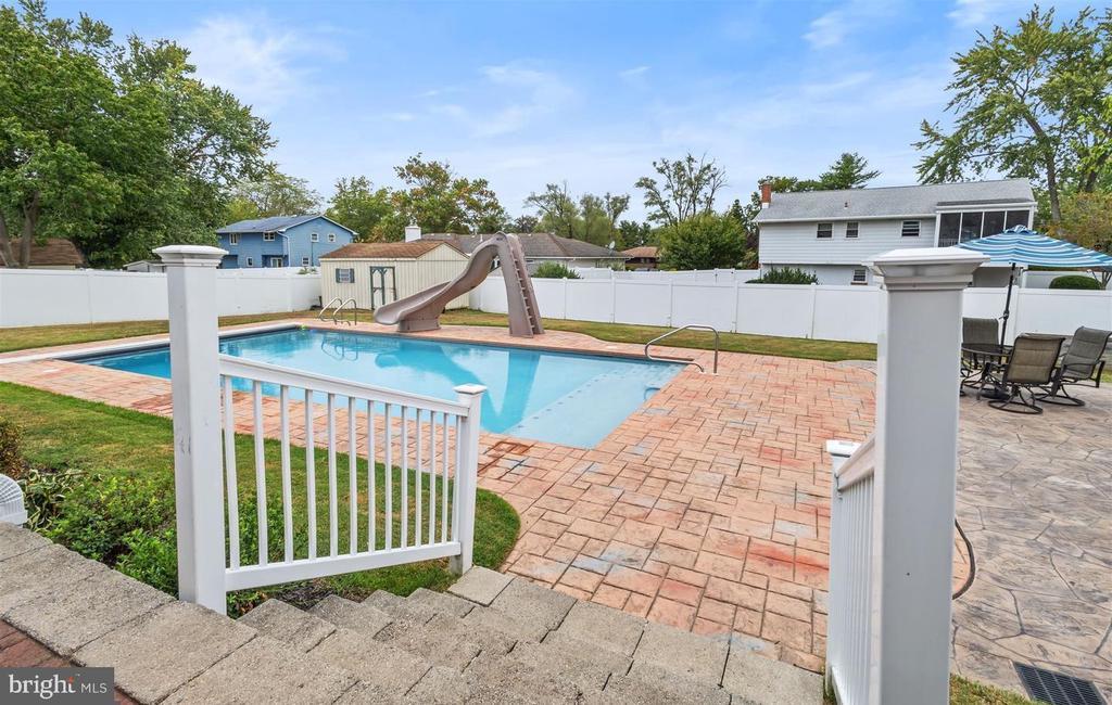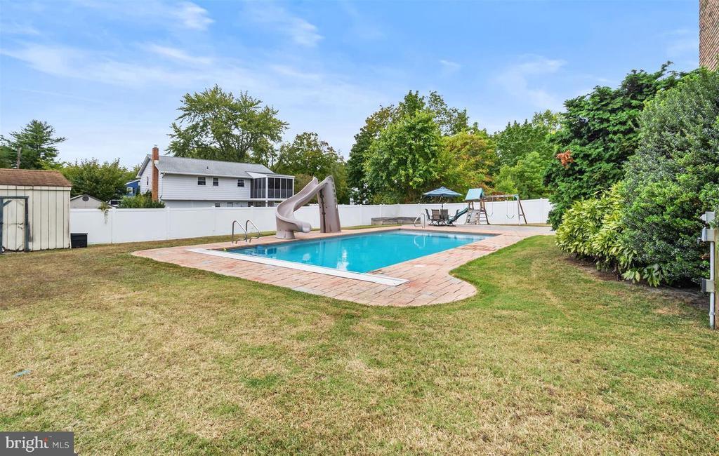 Welcome to this stunning East Vineland property offering 2,821 sq. ft. of living space with timeless charm and thoughtful updates. Featuring 4 spacious bedrooms and 3 full bathrooms, this home blends comfort with style in every corner. Step inside to find a bright family room and a private office, perfect for working from home. Original hardwood floors flow throughout the living room, dining room, office, and bedrooms. The formal dining room showcases a cozy wood-burning fireplace and connects seamlessly to the sunroom and kitchen. The kitchen is a cook’s delight, offering abundant counter space, ample storage, and an inviting layout. The finished basement expands the living area with a large recreational space, ideal for entertaining, game nights, or relaxation. Outdoors, the fenced-in backyard has been transformed into your personal oasis — complete with a heated saltwater in-ground pool, water slide, and plenty of space for gatherings or quiet weekends at home. This home truly combines everyday comfort with resort-style living. Don’t miss your chance to see it — schedule your private showing today!