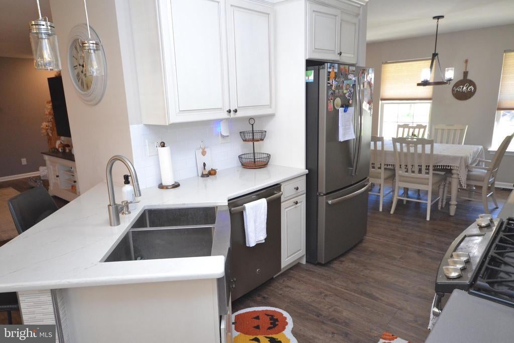 Set in a quiet East Vineland neighborhood, 2270 Gettysburg Dr offers 3 bedrooms, 2.5 baths and 1,656 sq ft with easy indoor–outdoor living. A classic two‑story layout opens to a bright kitchen with quartz countertops, subway‑tile backsplash, gas cooking and included stainless appliances, plus washer and dryer. White cabinetry, a deep sink and pendant lighting keep the workspace fresh and functional. Dining flows to the family room and a finished basement rec space adds flexible square footage for hobbies, fitness, or media. Durable wood‑look flooring runs through the main level for easy care, and a convenient powder room serves guests. Upstairs, the primary bedroom features a walk‑in closet and an ensuite bath with double vanity, separate shower and corner soaking tub; two additional bedrooms share a hall bath. Out back, a 2030 covered concrete patio extends your living area and overlooks a wide vinyl‑fenced lawn. The above‑ground pool (included) and deck set the stage for warm‑weather fun and easy entertaining. Other features include a covered front porch and side‑entry 2‑car garage. Community HOA is just $150/year for common‑area maintenance; shed excluded from sale.