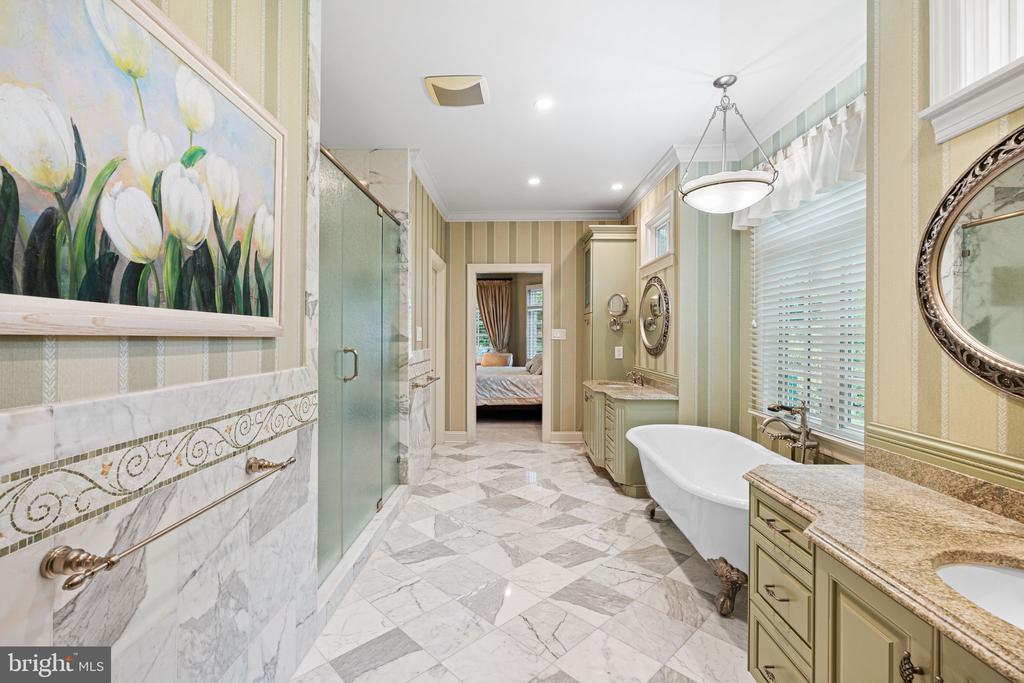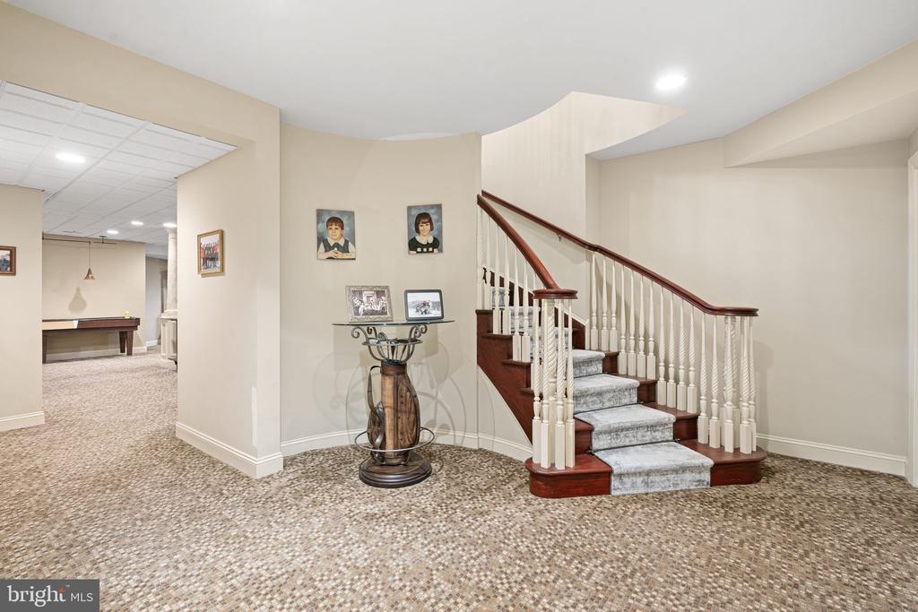 Bar, Built-Ins, Carpet, Cedar Closet(s), Chair Railing, Crown Molding, Curved Staircase, Entry Lvl BR, Master Bath(s), Recessed Lighting, Spiral Staircase, Upgraded Countertops, Walk-in Closet(s), Wet Bar/Bar, Shades/Blinds, Wood Floors