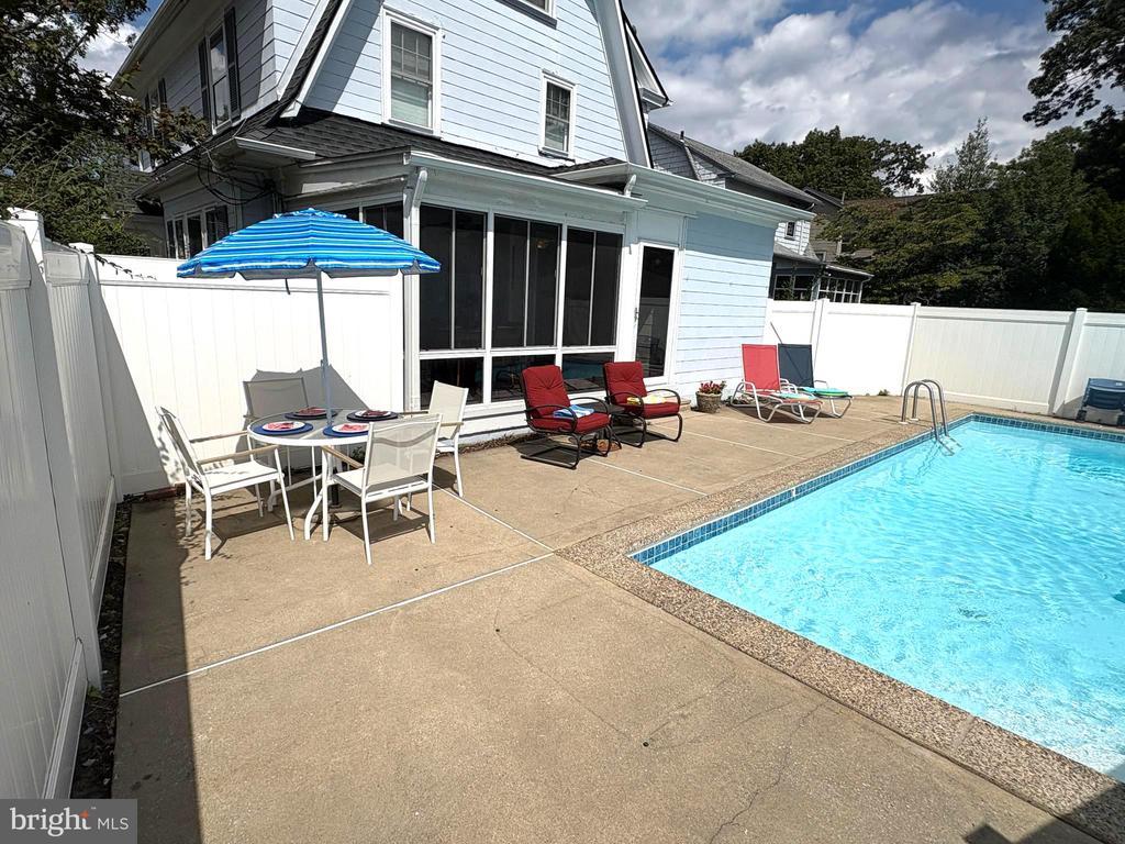 Charming Dutch Colonial style home situated on an attractive corner lot in desirable Estates section of Haddonfield. The home offers the perfect blend of historic charm and modern convenience. Upon entering, you'll immediately notice the care and attention to detail that the homeowners have put into maintaining the home. It features in-laid hardwood flooring throughout firdt floor, adding warmth and character with an interior neutral palette, creating a stylish backdrop that's ready for your personal touch. The living room has a gas-log fireplace, perfect for cozy evenings and leads to a bright den for relaxing, a convenient powder room adds functionality to the main level, formal dining room is ideal for hosting gatherings, an updated eat-in kitchen with access to The bright sunroom overlooking the inviting inground pool provides a welcoming space to enjoy your morning coffee. On the second floor, you'll find three bedrooms and a full bath, providing plenty of space for family or guests. The fourth bedroom on the third floor offers privacy and flexibility with an adjoining large storage room. The house features a gas hot water heating system and a high velocity central air conditioning system. There is an unfinished basement with a door to the exterior and a detached garage with concrete driveway. The yard is professionally landscaped and the exterior is maintenance free. The in-ground pool is maintained by the Budd Pool Company. The home is situated within walking distance to the downtown area and train station, as well as Hopkins Pond, and boasts an ideal location proximity to schools, major transportation routes, and Philadelphia. It truly has it all. Don't miss the opportunity to view this charming home.