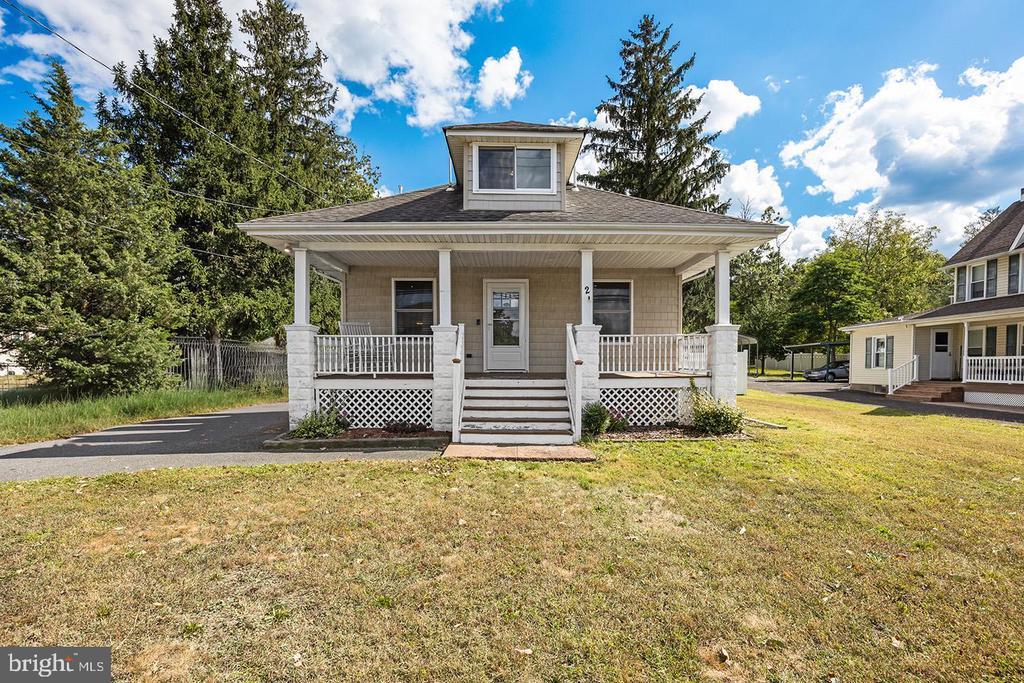 Welcome to 2 Cedar Brook Road, a charming home with a welcoming front porch and an easy, open-concept layout. Step inside to find a bright living room and dining area that flow seamlessly into a spacious peninsula kitchen. The kitchen features stainless steel appliances, a range with hood, dishwasher, refrigerator, pantry, and an eat-in area. From here, head out the back door to a small deck overlooking the expansive, fully fenced backyard — perfect for entertaining, complete with a shed and space for a fire pit. The first floor offers two comfortable bedrooms and a full bath with a tub/shower combo. Upstairs, you’ll find a private retreat: a large bedroom with two walk-in closets and its own ensuite bath. The full, unfinished basement spans the length of the home and provides plenty of storage potential. Additional highlights include: