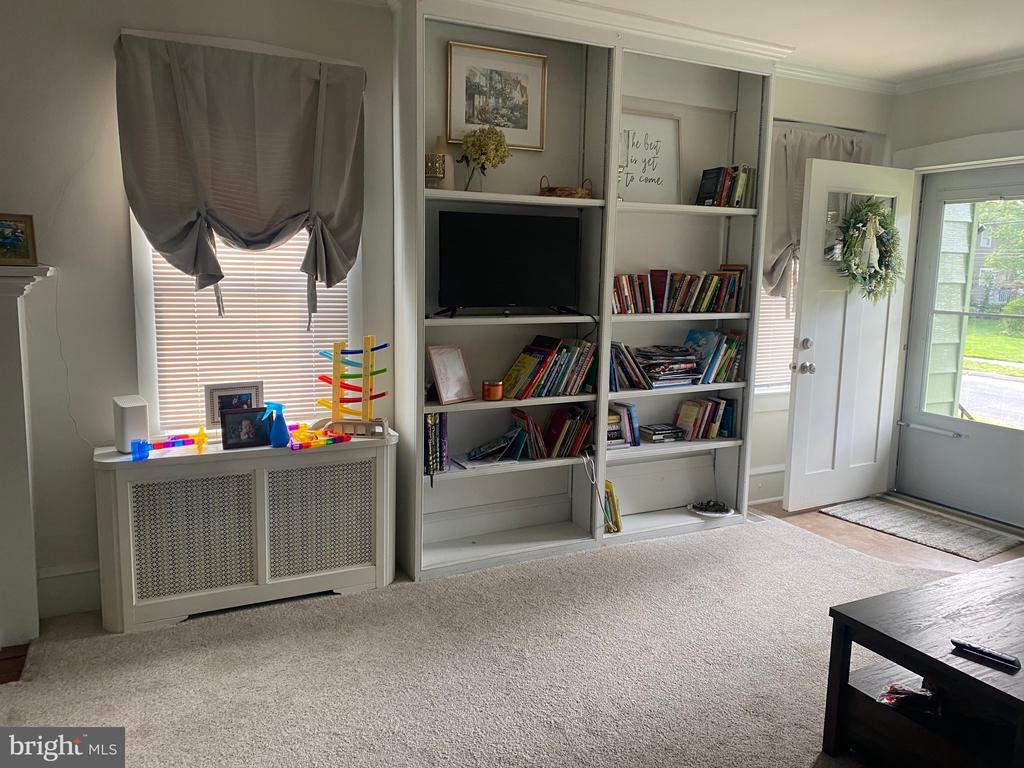 Tub Shower, Built-Ins, Carpet, Chair Railing, Crown Molding