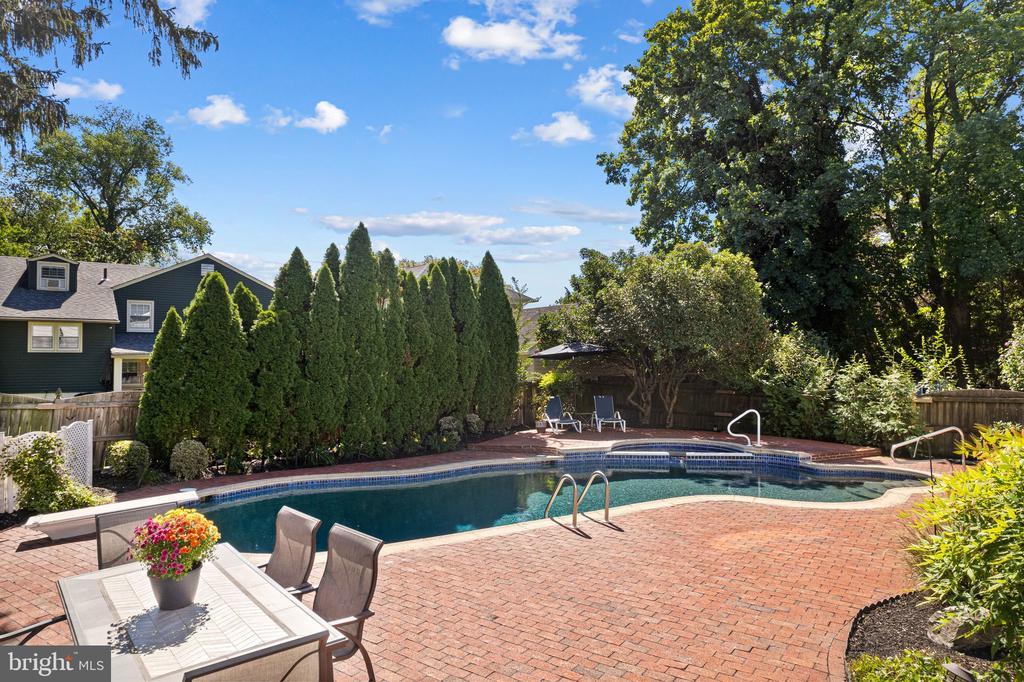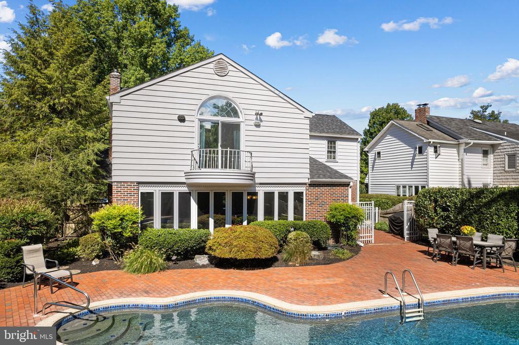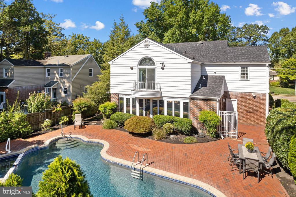 Gorgeous, brick home in the desirable Haddonleigh neighborhood of Haddon Township. Prime location just blocks from downtown Haddon Avenue, restaurants, bars, shops, swimming club, elementary school and the Patco train to Philadelphia! Original charm is maintained while modern updates have been made throughout. Oak hardwood floors, symmetrical bay windows, crown molding and a beautiful fireplace. Spill out onto the covered side porch from the living room- great for outdoor living! Circular flow on the first floor lends itself to easy every day living and great entertaining. Huge family room addition off the kitchen is the perfect great room. Boasting two walls of windows, the family room has incredible natural light, tons of space and access to the backyard and pool! Updated kitchen with white cabinetry, gas stove, granite counters, stainless appliances, double ovens and so much storage. Perfect for the chef! Primary suite is so spacious with room for a sitting area, vaulted ceilings, walk-in closet, a full bath and bonus vanity area, too. Potential to customize this space by combining the bathroom and vanity into a huge primary bathroom or make the vanity another closet. Private balcony for enjoying views of your private pool. Three more spacious bedrooms (one currently an office), all with great closet space and a full, hall bath. Pull down attic stairs and two linen closets for even more storage. The basement is a great bonus- finished as a rec room for game day, kids to play or an exercise area. Complete with a wet bar area, too. Bucolic backyard is hard to find, especially with the appointed brick work, in-ground pool and professional plantings. Roof is new in 2021, water heater 2025 and central air in 2024. Attached garage, brick driveway, excellent Haddon Township school system and all the fun downtown offers. Just minutes to the Patco train to Philadelphia too!