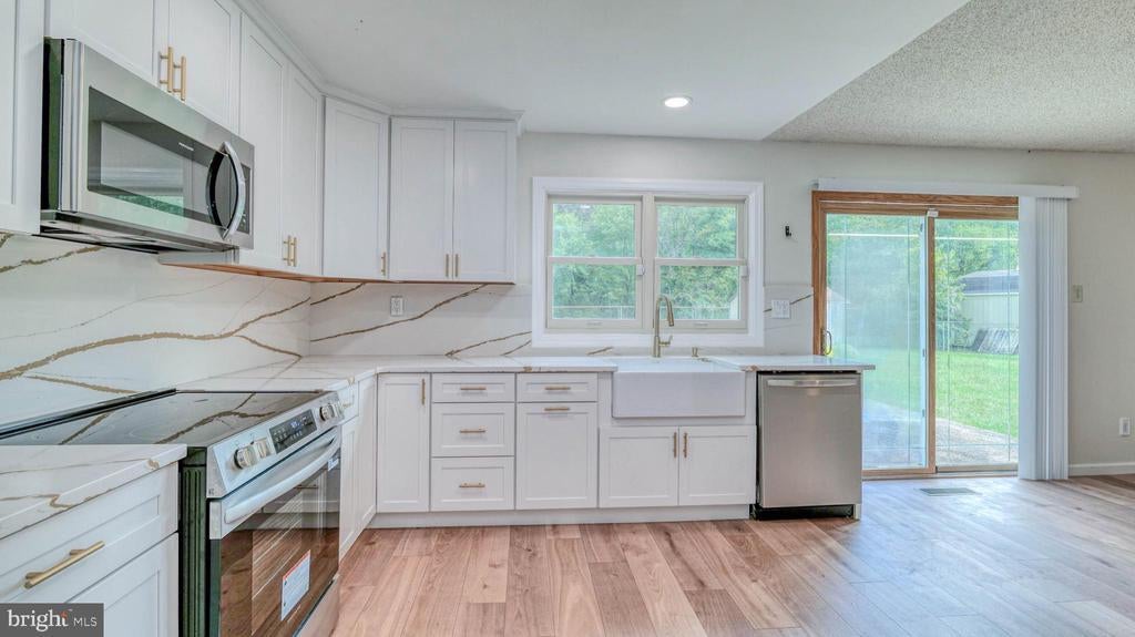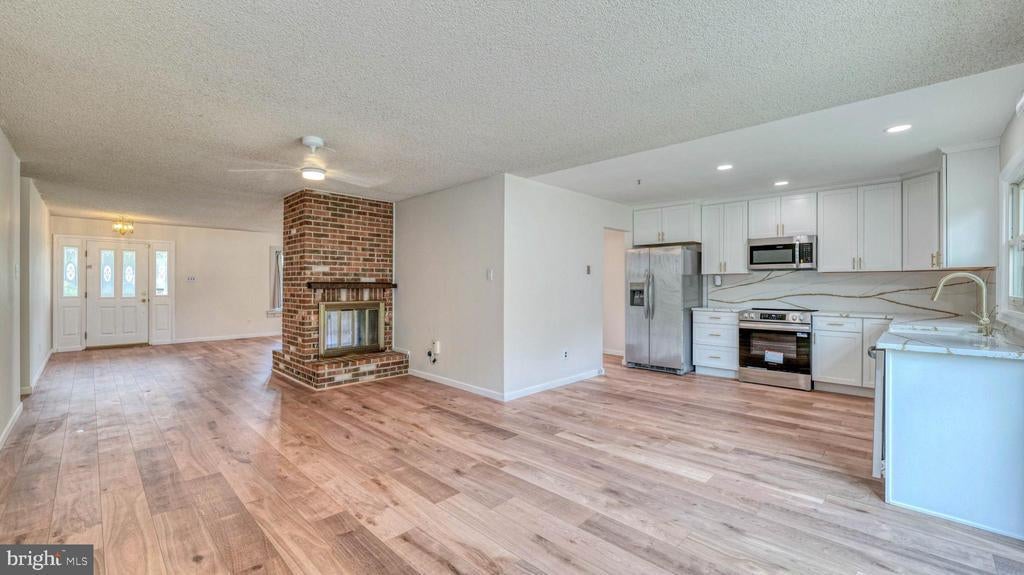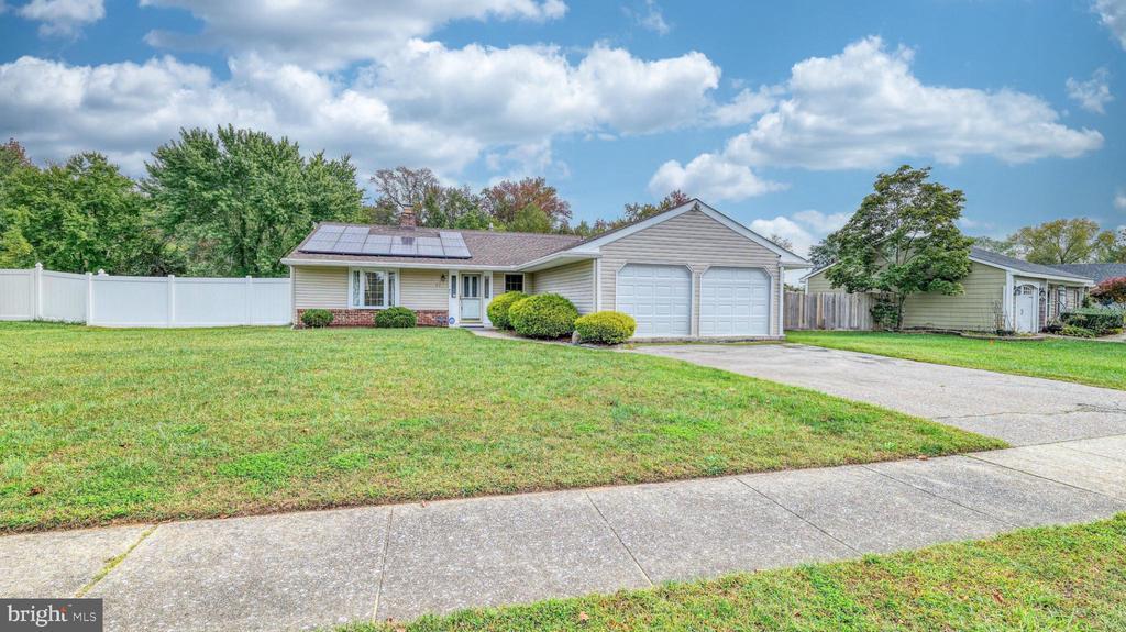 Welcome home to your open floor plan rancher located in a quiet community. Fully renovated this year, including new vinyl plank life proof flooring, quartz countertops and new cabinets, energy star appliances, and designer bathrooms. Double brick fireplace creates a cozy atmosphere. Large back yard backs up to a stream and nature reserve. New garage doors and openers and fence for privacy. Solar panels lowers energy bills. Owner is a realtor. Sold as is easy to show.