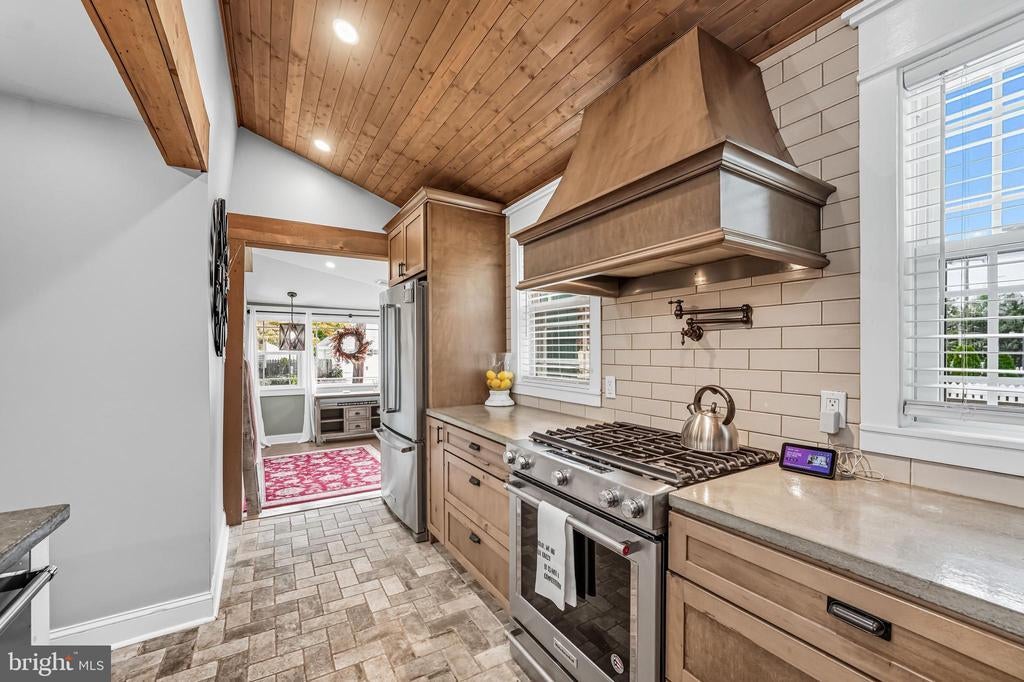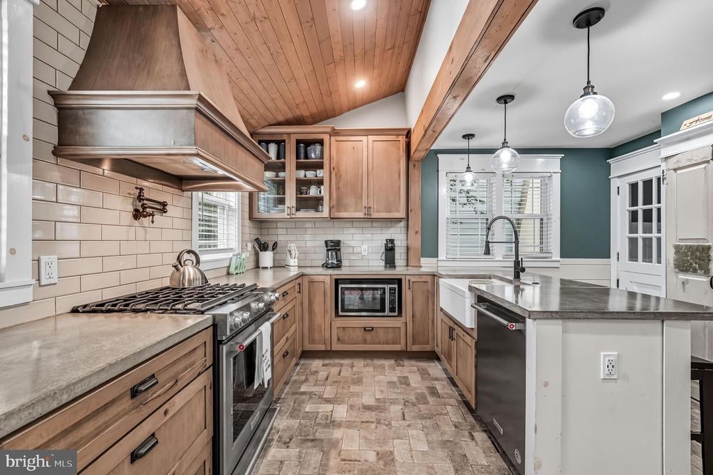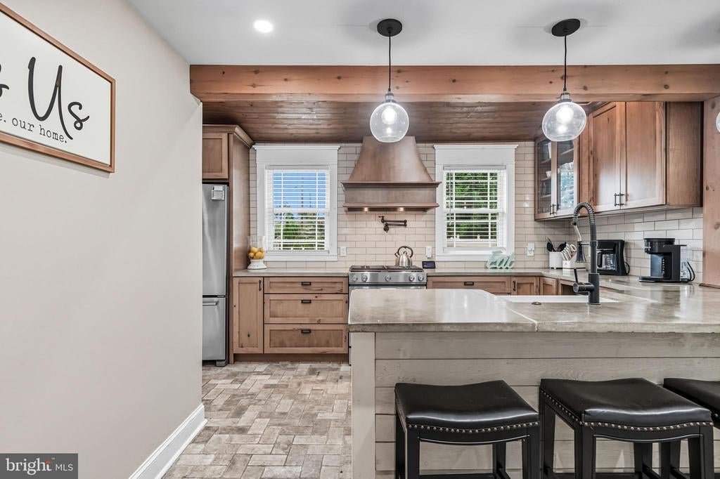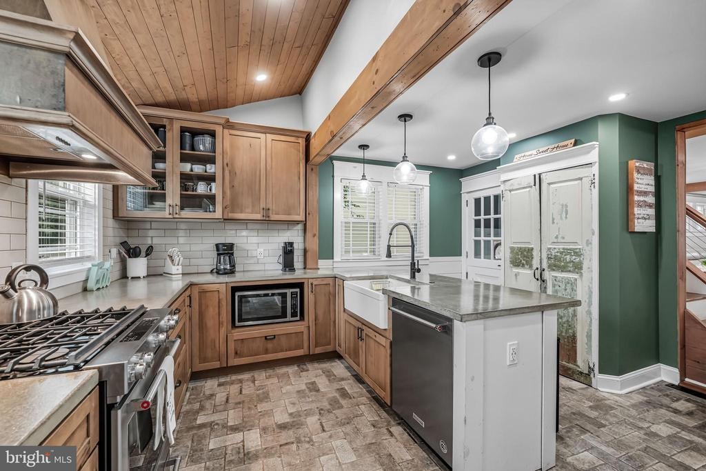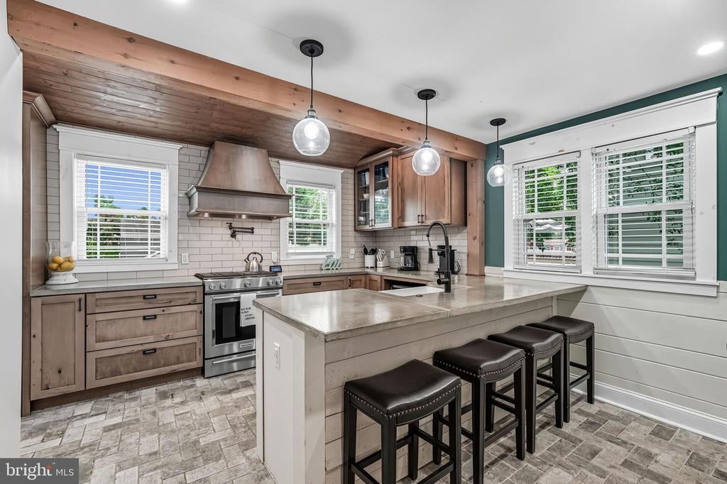 OPEN HOUSE SATURDAY SEPTEMBER 27TH 9:30-11:30am This beautifully redesigned Cape Cod blends timeless charm with thoughtful upgrades, offering the perfect mix of style and comfort. Taken down to the studs and rebuilt in 2019, the home was reimagined with a fresh layout, quality finishes, and standout details throughout. From the moment you arrive, the curb appeal shines with a striking emerald-green exterior, a welcoming front porch with wood pillars, and prairie-style windows. Step inside to find wide-plank pine floors, exposed beams, and a bright open-concept living and dining area. A cozy wood-burning stove adds warmth and character, while recessed lighting highlights the home’s unique craftsmanship. The kitchen is a showstopper with custom pine cabinetry, cement countertops, subway tile backsplash, pot filler, and a gas range with vent hood. Off the kitchen, a sunny den with sliding doors leads to the rear deck and backyard. The main level offers two bedrooms and a stylish full bath, while upstairs you’ll find two additional bedrooms and a second spa-like bathroom with a farmhouse sink and glass-enclosed shower. A sliding barn door provides access to bonus storage space, and the dry basement offers even more room for storage or hobbies. Major system updates from 2019 include: roof, HVAC, hot water heater, plumbing, electrical, windows, and deck — all ensuring peace of mind. This home is truly move-in ready and waiting for its next chapter. Don’t miss your chance to make it yours!