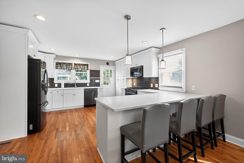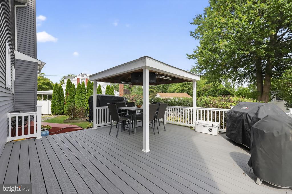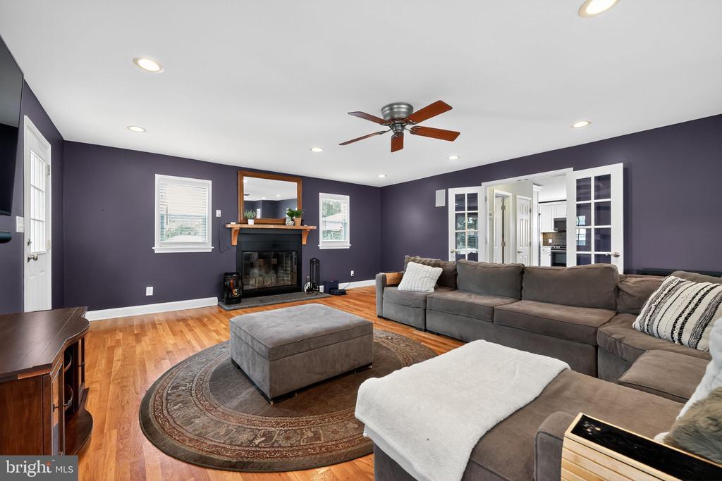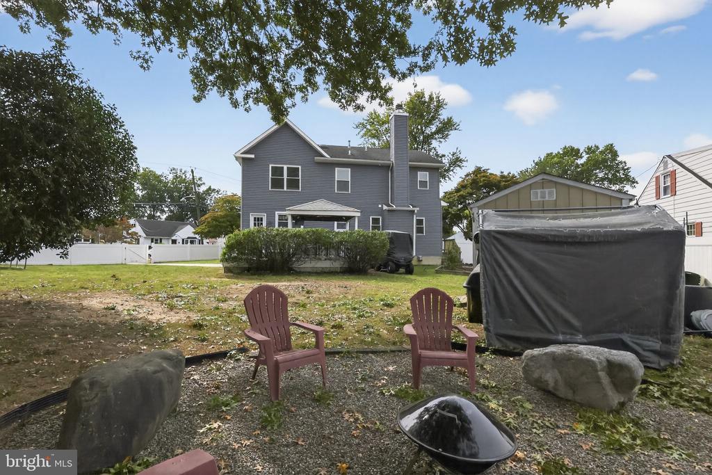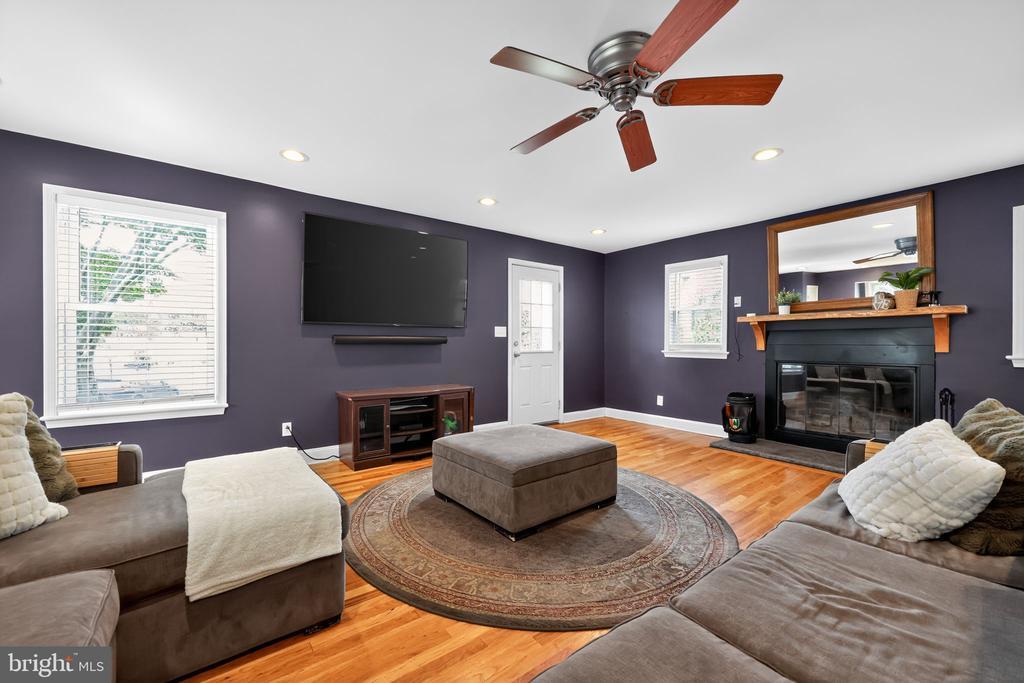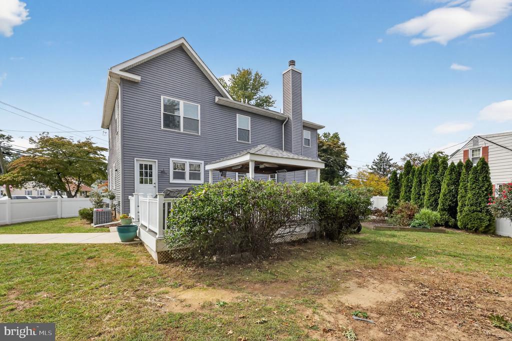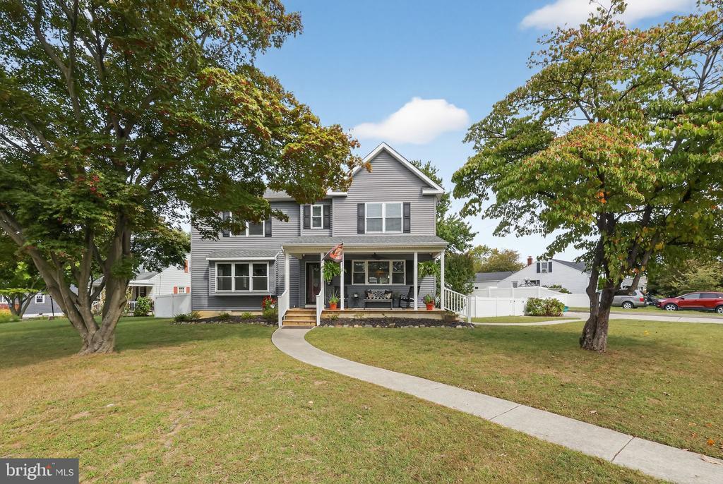This beautifully renovated blue Colonial home offers 4 spacious bedrooms, 3 full bathrooms, and sits proudly on a large corner property with a welcoming stamped concrete covered front porch. Everything including the Roof and HVAC has been updated in 2018. As you enter, you’ll notice the large living room with a front window that brings in an abundance of natural light. The room flows seamlessly into the updated kitchen, which features quartz countertops, a large island with pendant lights, a striking steel tile backsplash, and a spacious pantry. The open layout is perfect for cooking, entertaining, and gathering with family and friends. A full bathroom is located on the main level, along with a grand family room that boasts a wood-burning fireplace and another large front window. The partial finished basement includes a wet bar and a gas stove, providing even more space for relaxation or entertaining. Upstairs, the primary bedroom offers two walk-in closets and a beautifully updated en-suite bathroom complete with tile flooring and a walk-in shower. Three additional generously sized bedrooms provide plenty of closet space, and a second full bathroom with tile flooring and shower ensures comfort for everyone. For added convenience, the laundry room is also located on the second floor. From the kitchen, step outside onto a spacious deck that leads to a fenced backyard. Here, you’ll find a covered pergola with Trex decking, creating a perfect outdoor living space for entertaining or relaxing. The yard is large, private, and fully fenced, offering plenty of room to enjoy year-round. Throughout the home you’ll find hardwood flooring, recessed lighting, and ceiling fans in every room, adding both style and functionality. Conveniently located near parks, schools, shopping, restaurants, and major highways, this home is move-in ready and has everything you've been searching for!