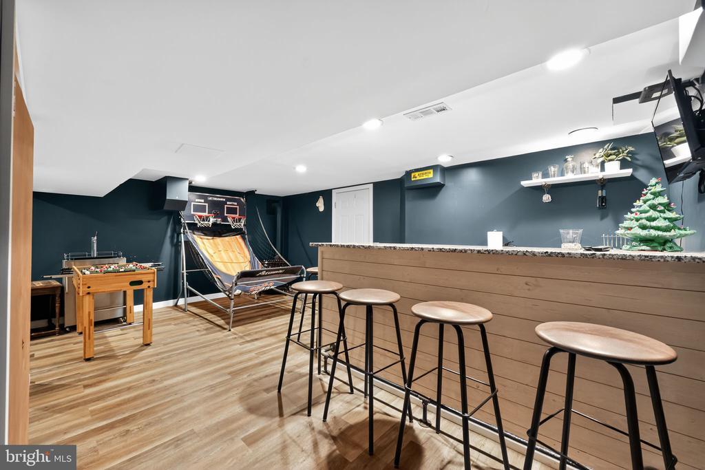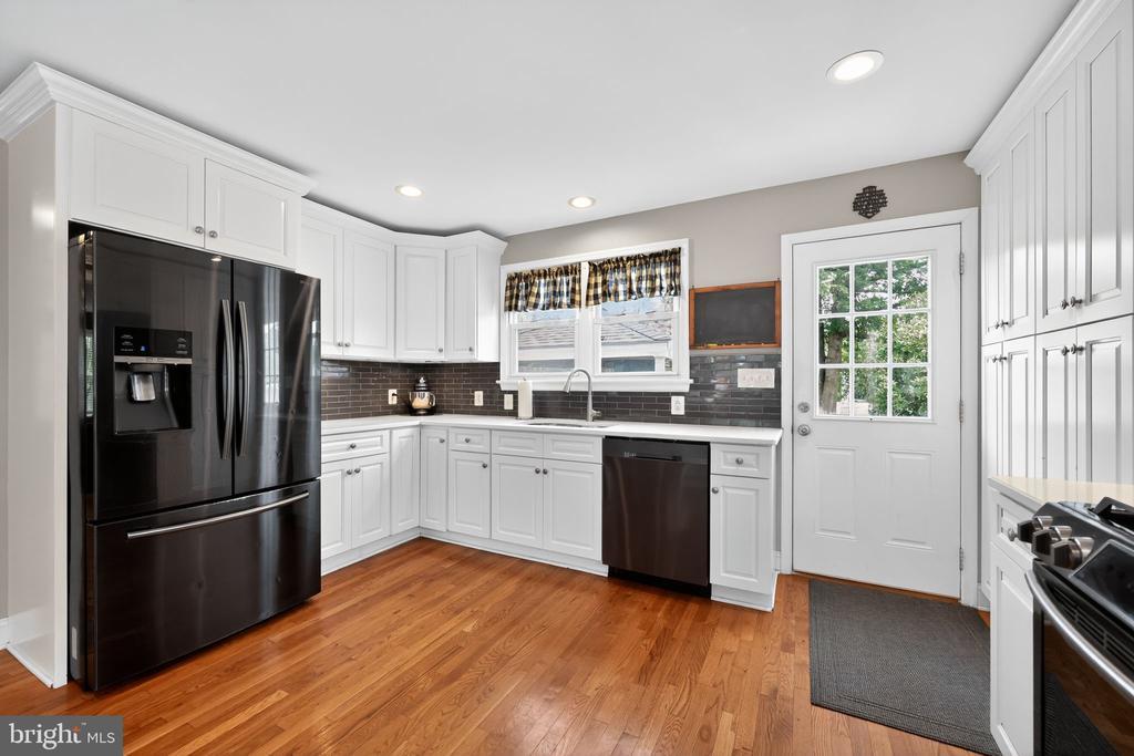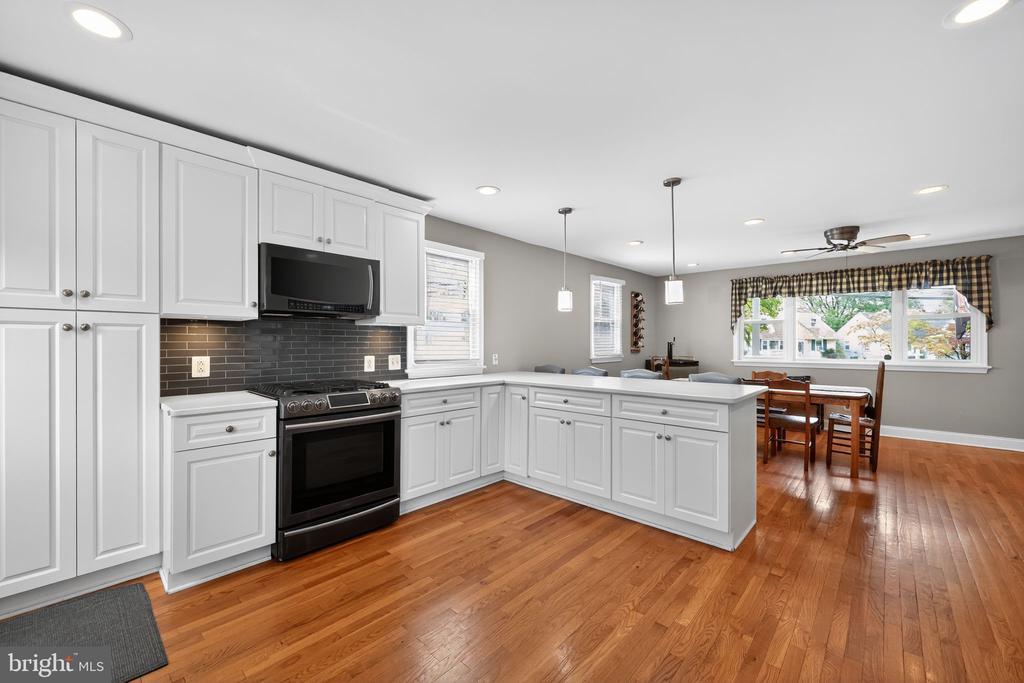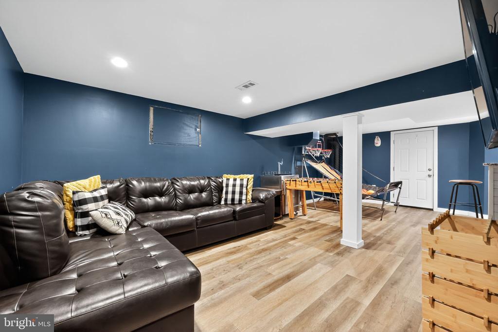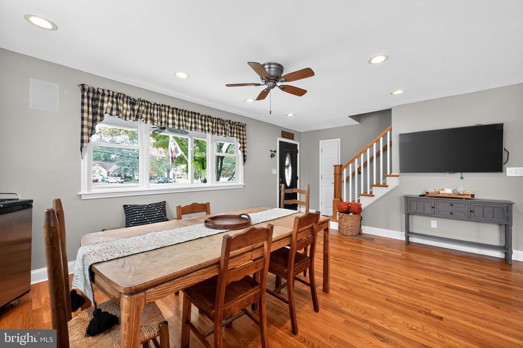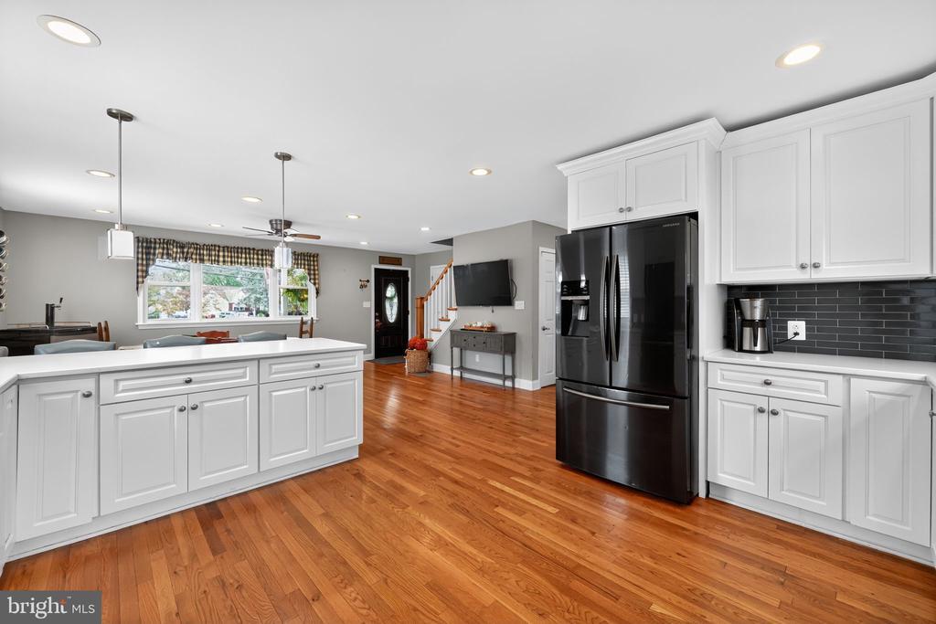 This beautifully renovated blue Colonial home offers 4 spacious bedrooms, 3 full bathrooms, and sits proudly on a large corner property with a welcoming stamped concrete covered front porch. Everything including the Roof and HVAC has been updated in 2018. As you enter, you’ll notice the large living room with a front window that brings in an abundance of natural light. The room flows seamlessly into the updated kitchen, which features quartz countertops, a large island with pendant lights, a striking steel tile backsplash, and a spacious pantry. The open layout is perfect for cooking, entertaining, and gathering with family and friends. A full bathroom is located on the main level, along with a grand family room that boasts a wood-burning fireplace and another large front window. The partial finished basement includes a wet bar and a gas stove, providing even more space for relaxation or entertaining. Upstairs, the primary bedroom offers two walk-in closets and a beautifully updated en-suite bathroom complete with tile flooring and a walk-in shower. Three additional generously sized bedrooms provide plenty of closet space, and a second full bathroom with tile flooring and shower ensures comfort for everyone. For added convenience, the laundry room is also located on the second floor. From the kitchen, step outside onto a spacious deck that leads to a fenced backyard. Here, you’ll find a covered pergola with Trex decking, creating a perfect outdoor living space for entertaining or relaxing. The yard is large, private, and fully fenced, offering plenty of room to enjoy year-round. Throughout the home you’ll find hardwood flooring, recessed lighting, and ceiling fans in every room, adding both style and functionality. Conveniently located near parks, schools, shopping, restaurants, and major highways, this home is move-in ready and has everything you've been searching for!