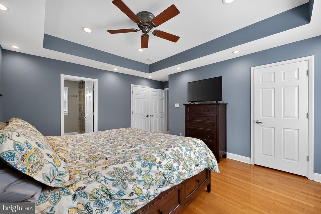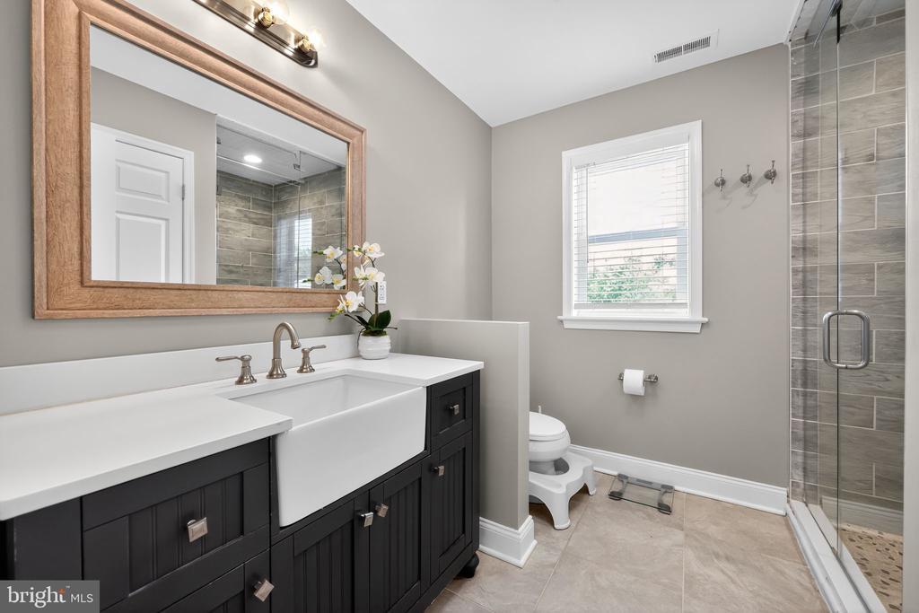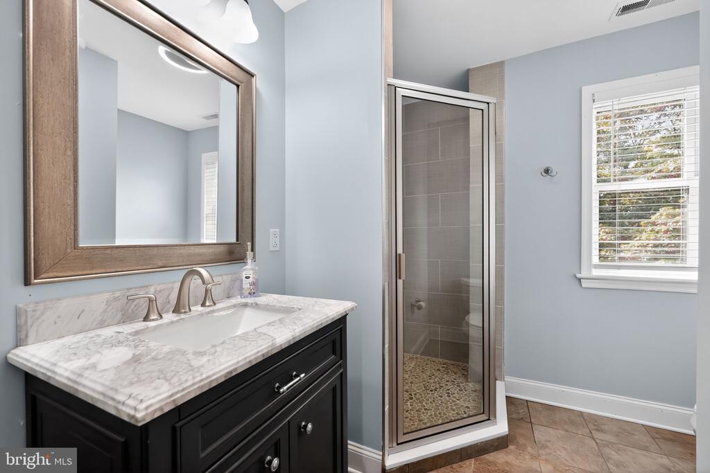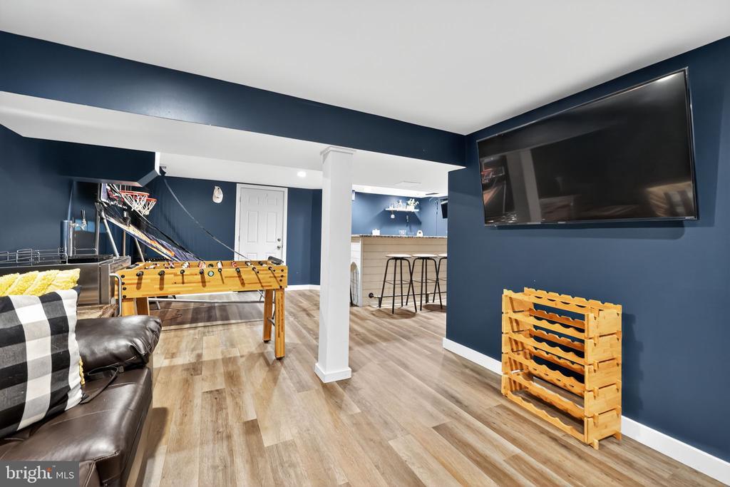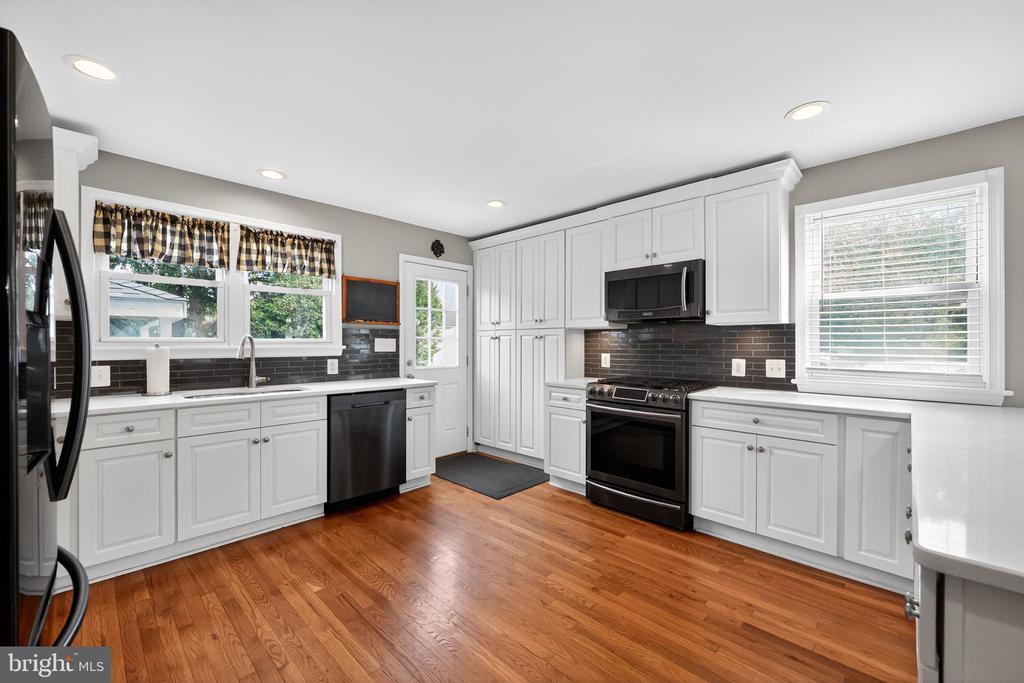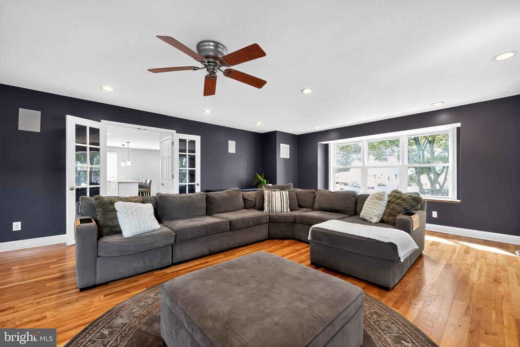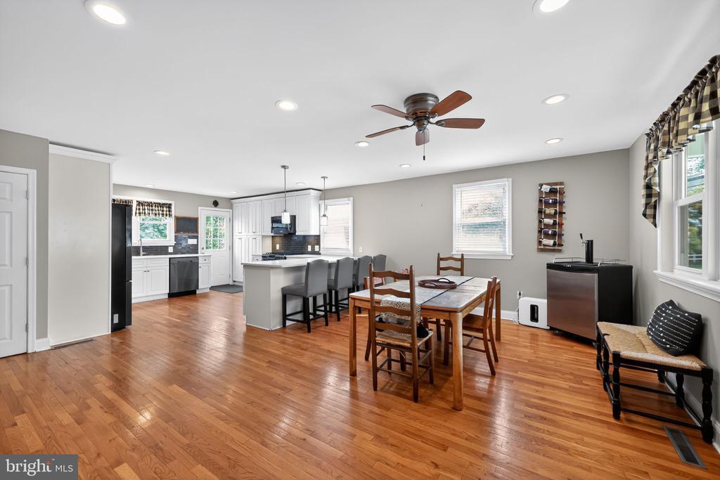 This beautifully renovated blue Colonial home offers 4 spacious bedrooms, 3 full bathrooms, and sits proudly on a large corner property with a welcoming stamped concrete covered front porch. Everything including the Roof and HVAC has been updated in 2018. As you enter, you’ll notice the large living room with a front window that brings in an abundance of natural light. The room flows seamlessly into the updated kitchen, which features quartz countertops, a large island with pendant lights, a striking steel tile backsplash, and a spacious pantry. The open layout is perfect for cooking, entertaining, and gathering with family and friends. A full bathroom is located on the main level, along with a grand family room that boasts a wood-burning fireplace and another large front window. The partial finished basement includes a wet bar and a gas stove, providing even more space for relaxation or entertaining. Upstairs, the primary bedroom offers two walk-in closets and a beautifully updated en-suite bathroom complete with tile flooring and a walk-in shower. Three additional generously sized bedrooms provide plenty of closet space, and a second full bathroom with tile flooring and shower ensures comfort for everyone. For added convenience, the laundry room is also located on the second floor. From the kitchen, step outside onto a spacious deck that leads to a fenced backyard. Here, you’ll find a covered pergola with Trex decking, creating a perfect outdoor living space for entertaining or relaxing. The yard is large, private, and fully fenced, offering plenty of room to enjoy year-round. Throughout the home you’ll find hardwood flooring, recessed lighting, and ceiling fans in every room, adding both style and functionality. Conveniently located near parks, schools, shopping, restaurants, and major highways, this home is move-in ready and has everything you've been searching for!