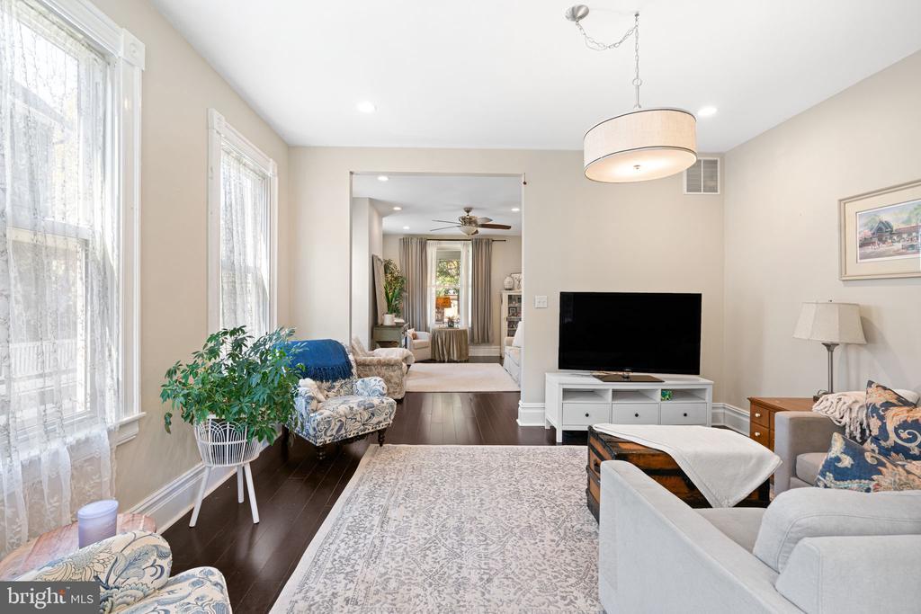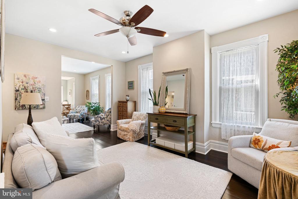 Incredible Location in the Heart of Haddonfield! Spacious home, tons of original character, home office, new kitchen, potential for 6 bedrooms and a huge backyard with in-ground pool. No reason to leave home when you live here! Covered front porch greets you with vaulted ceilings and 190 SF of outdoor living space. Classic Victorian, yet updated for modern living, with high ceilings, original millwork and a great circular flow that's unique for Victorians. Tons of natural light spills into the whole home. Newer kitchen renovated in the last few years includes white tile backsplash, center island with seating, stainless appliances, quartz counters, and a big seating area. Family room just off the kitchen and the living room beyond that is a perfect layout for everyday comfort and flow. Private home office and separate mud/laundry room are bonuses on this floor. Incredible primary suite with 9' ceilings, walk-in closet and a beautiful bath with double vanity, huge shower with white tile and marble. Bonus deck off the primary bedroom, too. Two more bedrooms and an updated hall bath with double vanities and white tile shower/tub. Third floor still has high ceilings, 2 bedrooms and a lounge for teens, nursery, exercise room or 2nd home office. Exterior is great- in addition to the front porch, outdoor living with a back deck, second floor deck off primary suite and a side covered porch too! Fenced, deep backyard and a heated, in-ground pool! Maybe the best part is the proximity to EVERYTHING you love about Haddonfield- Blue Ribbon schools, playgrounds, downtown shopping, and Patco train to Philadelphia are literally a few blocks away. Incredible Opportunity!