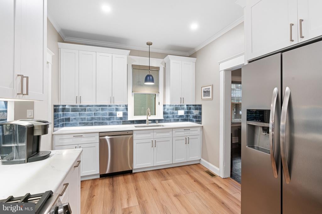 Location, location, location! Right in the Heart of Haddon Heights- just 2 blocks to Seventh Ave. elementary school, playgrounds, baseball fields, shopping on Station Ave, John's Market, downtown shops, restaurants, parades, Farmer's Markets and community block parties! Even just a block from the local breweries! You cannot beat this location for convenience and quality of life. Great curb appeal, covered front porch, brick construction and totally renovated interior- are just the beginning. Beautiful home is meticulously maintained by the owner and boasts the perfect blend of original character and charm with modern updates. Completely open first floor with 9' ceilings, refinished hardwood floors and tons of natural light. Just renovated in 2023, the kitchen has white cabinets, granite counters, imported navy blue tile backsplash, and stainless appliances. Kitchen is both functional and beautiful for the chef with so much storage and counterspace! Renovated mud room, new powder room and coat closet (or pantry) just completed in 2023. Upstairs, the primary bedroom has a custom millwork accent wall, two closets (with room for a third), ceiling fan and hardwood floors beneath the carpet. Two more bedrooms with great natural light and spacious wardrobes. Large, hall bath, new in 2019, showcases white tile floors with subtle gray accents, custom wood vanity and white tiled shower/tub. Fourth bedroom or home office has its own ductless mini-split, cedar closet and plenty of space for seating too. All bedrooms boast new high-efficiency Carrier mini-split systems (2024)- excellent for comfort & efficiency. Incredible bonus is the finished basement featuring storage closets, a built-in bar, ping pong table (included!) and so much space for hosting parties, exercise or a playroom. Garage is wonderful with an extra storage system. Back deck and yard are perfect for an outdoor living retreat. Central air new in 2024 and a 45-year architectural shingle roof is new in 2020. Checking every box- impeccable condition, unbeatable location and exceptional value- 227 7th Avenue is a true gem!