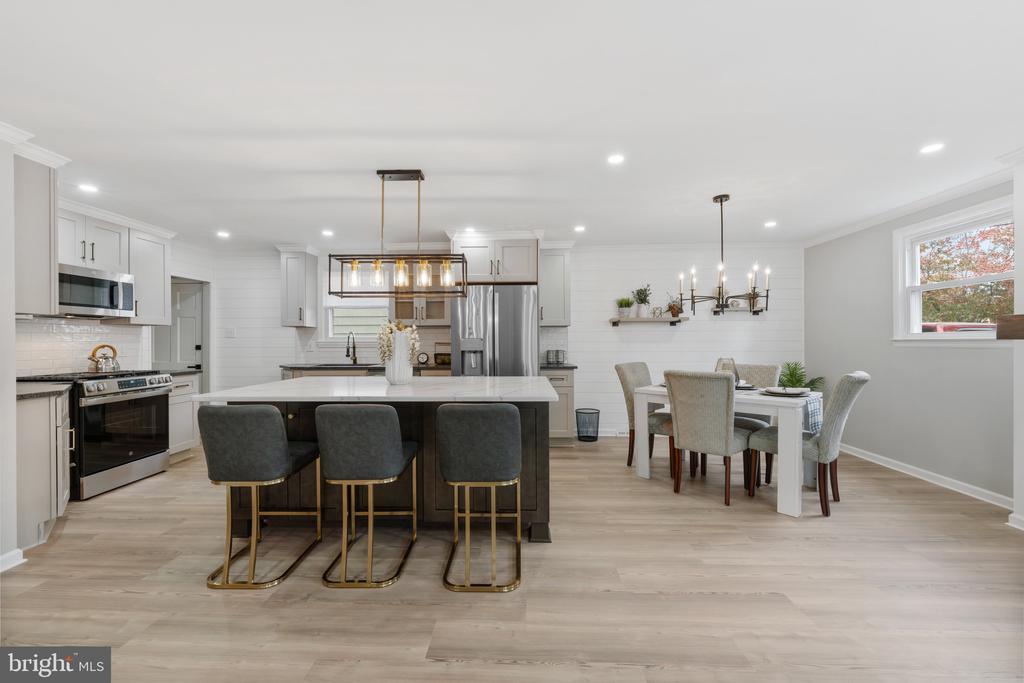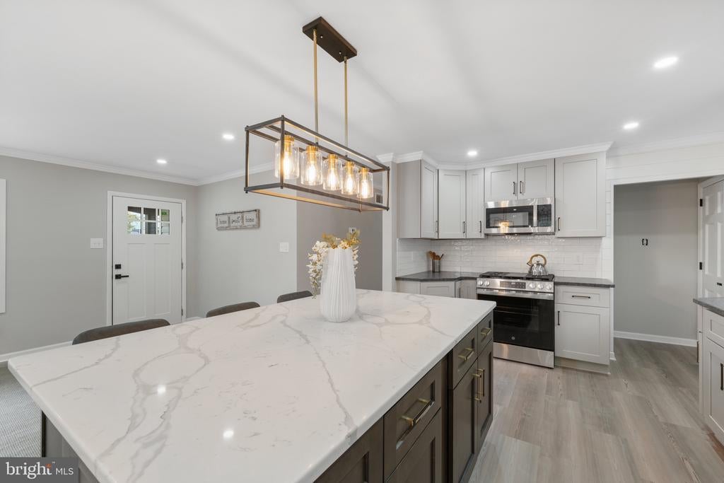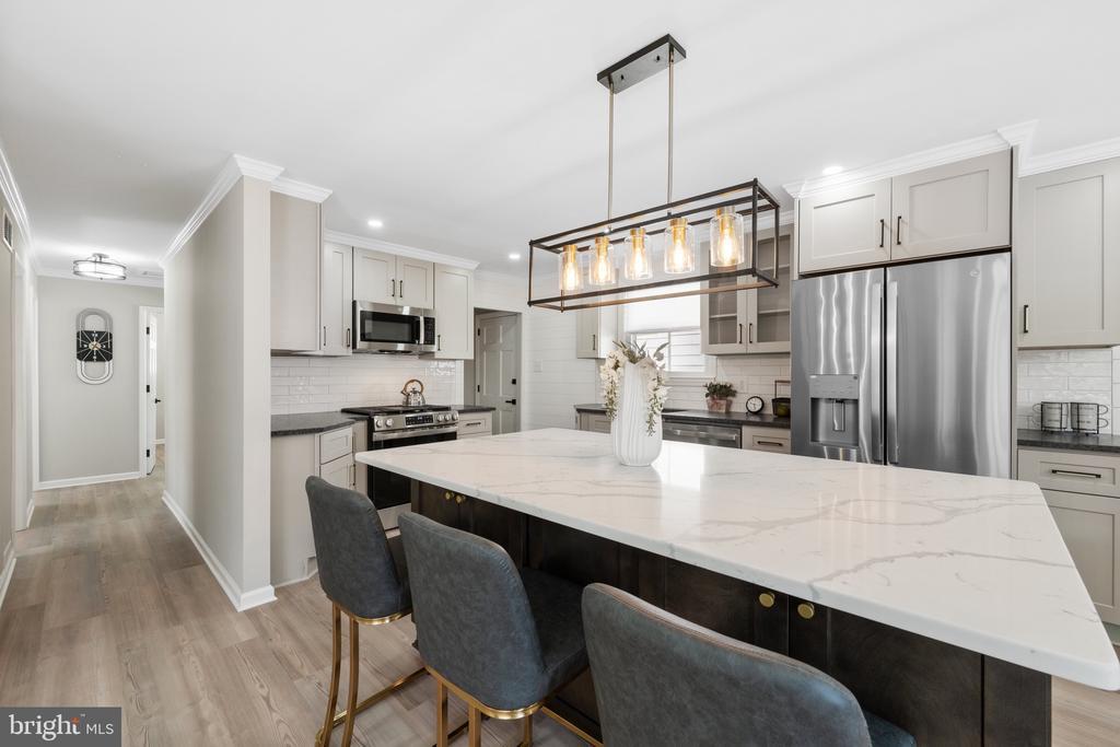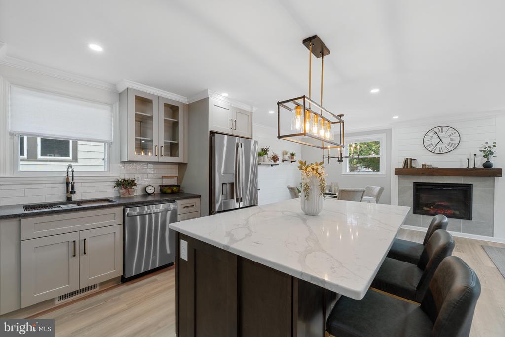 WELCOME TO 321 Edgewood! Step into this beautifully renovated rancher in the heart of Audubon, where modern design meets timeless charm. From the moment you arrive, you’ll fall in love with the curb appeal. Enjoy peaceful evenings on the charming front porch with its cedar plank ceiling, surrounded by lush landscaping, charcoal retaining walls, wrought iron fencing, and accent landscape lighting that make this home shine both day and night. Inside, the open floor plan offers effortless flow between the living, dining, and kitchen areas, perfect for entertaining or relaxing. The brand-new kitchen is the heart of the home, featuring a massive quartz island with seating, stainless steel GE appliances, granite countertops and recessed lighting. Beautiful LPV flooring flows throughout the home, complemented by shiplap accents that add warmth and character. Gather in the spacious living area around the cozy gas fireplace for memorable evenings with family and friends. The primary suite is a peaceful retreat with a private ensuite bath, featuring a custom tile stall shower, barn door entry, and modern backlit mirror. The additional bedrooms are bright and comfortable, perfect for family, guests, or a home office. The basement offers added living or storage space and includes a dedicated laundry room with a new GE washer and dryer. Also included is a whole-house water filtration system for added comfort and convenience. Every detail has been thoughtfully updated — including a new roof, new siding, new shutters, gutters, and downspouts — providing peace of mind for years to come. Located just minutes from shopping, dining, major highways and PATCO this move-in ready home offers the best of suburban living in one of Audubon’s most desirable neighborhoods. Don’t miss your chance to own this stunning rancher at 321 Edgewood — where style, comfort, and quality come together beautifully!