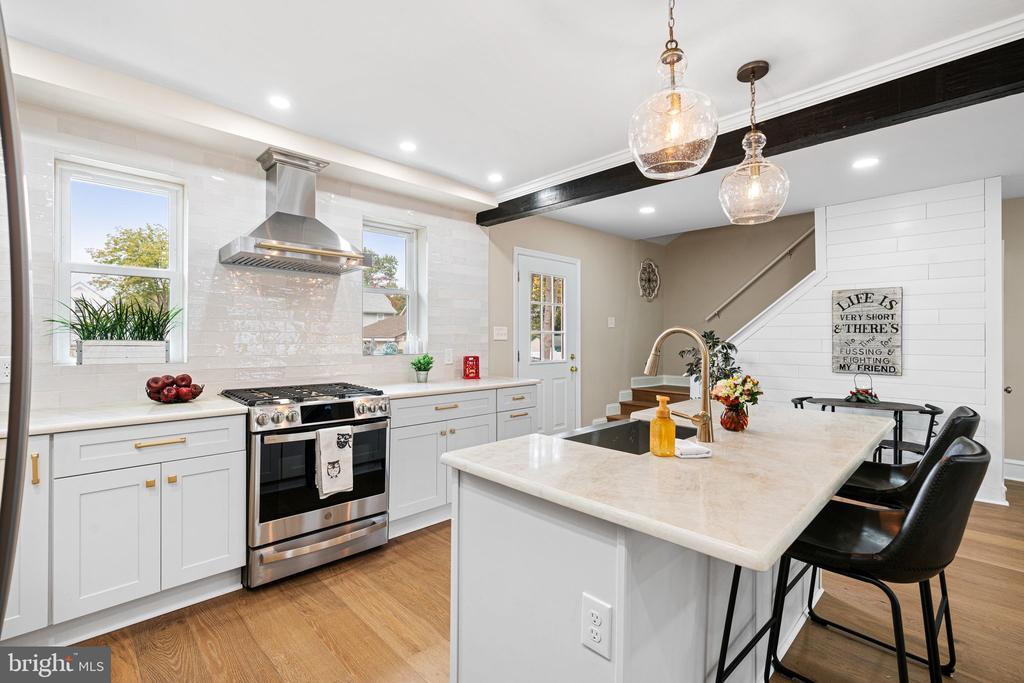 WINNING COMBINATION - Downtown with a tranquil suburban feel. TAXES for 2025 have been LOWERED TO $8,705.83!!!!! Your new 3 bedroom 2 full bath home has a HARVEST of features buyers are searching for. This beautifully remodeled home is equipped with NEW Two-Zone HVAC system, NEW 200 AMP Electric, NEW Tankless Hot Water Heater, combining comfort, efficiency and LOW TAXES TOO! The main level has an inviting, peaceful open floor plan featuring elegant wood flooring throughout, recessed lighting, a beautiful kitchen with tons of cabinets & counter space, full bath, natural sunlight and privacy. The first floor also boasts a versatile space that can serve as a home office or as an additional bedroom, complete with its own separate entrance and glass pocket doors. Entering through a side entrance or off kitchen, is the full basement with great head height and laundry area, plenty of opportunity to finish off if you wish. The upper level is where you will find 3 bedrooms, full bath and access to the attic. The upper level is as nice as the main level! You will LOVE your new oversized lot with large shed (garage door and electric). The backyard is a blank canvas with a unique opportunity for customization if you ever want to do an expansion and still have plenty of yard space to add a garage or even a pool. This beautiful home is just a very short walk to all of the popular shops, dining, pubs in Haddon Township, Collingswood and Haddonfield, the PATCO Speed line, Crystal Lake Pool, farmers markets and more. Excellent schools, location and value! Become a part of Haddon Township's friendly community. Close to major highways, bridges, Philly and shore points!