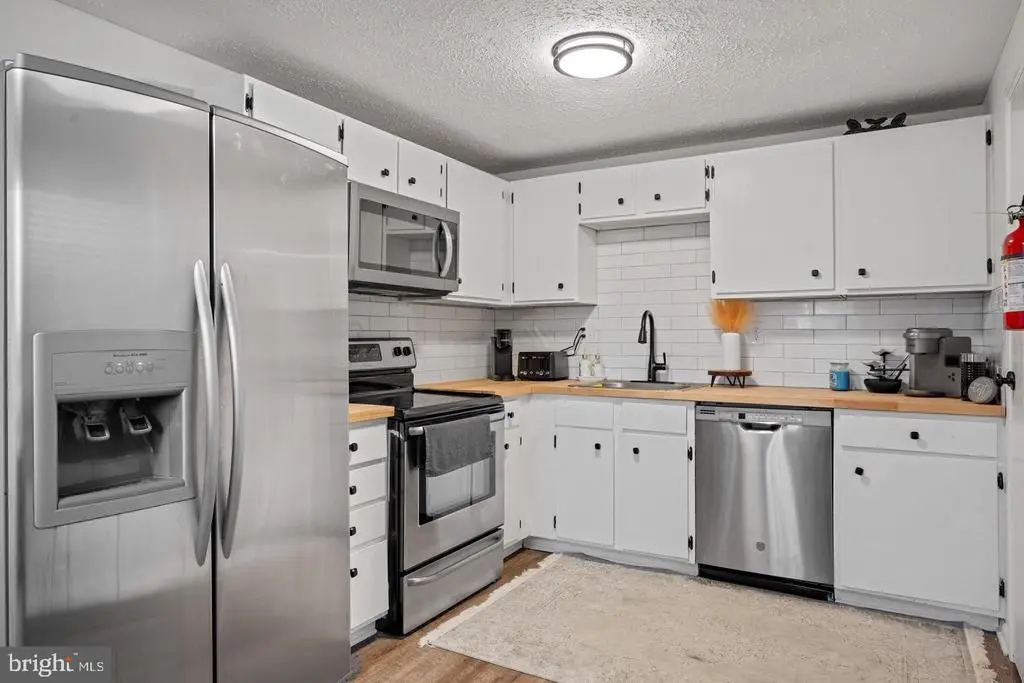 Charming 2-Bedroom End-Unit Townhome in Timber Creek! Step into this beautifully updated 2-bedroom, 1.5-bath, two-story end-unit townhome in the highly sought-after Timber Creek community! Freshly painted throughout, this home features new carpeting, vinyl plank flooring, and updated light fixtures that create a modern and welcoming ambiance. The spacious living room seamlessly flows into the stunning updated kitchen, complete with white painted cabinetry, chic black hardware and faucet, butcher block countertops, a subway tile backsplash, and sleek stainless steel appliances. A cozy dining area and a convenient powder room complete the main floor. Upstairs, you’ll find two generously sized bedrooms. The primary bedroom boasts two large closets, while the second bedroom includes a walk-in closet. A full bath and a stackable washer/dryer are located on this level for your convenience. This home is ideally located near shopping, dining, and major highways, making it perfect for modern living. Easy to show—schedule your tour today! Listing Office