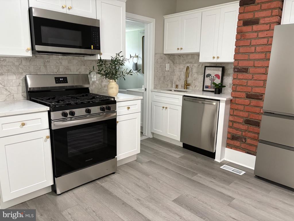 Step into this rehabbed end-unit Rowhome in Gloucester City. It has been updated and move-in ready. There is an nicely appointed updated kitchen, two spacious bedrooms and a modern bathroom. Furthermore, there is central air, natural gas forced air heating and ceiling fans. For your added wants and needs, there is a basement for added storage and a fenced backyard for whatever your desires, gardening, playing or barbecuing. Come see for yourself, you won't be disappointed.